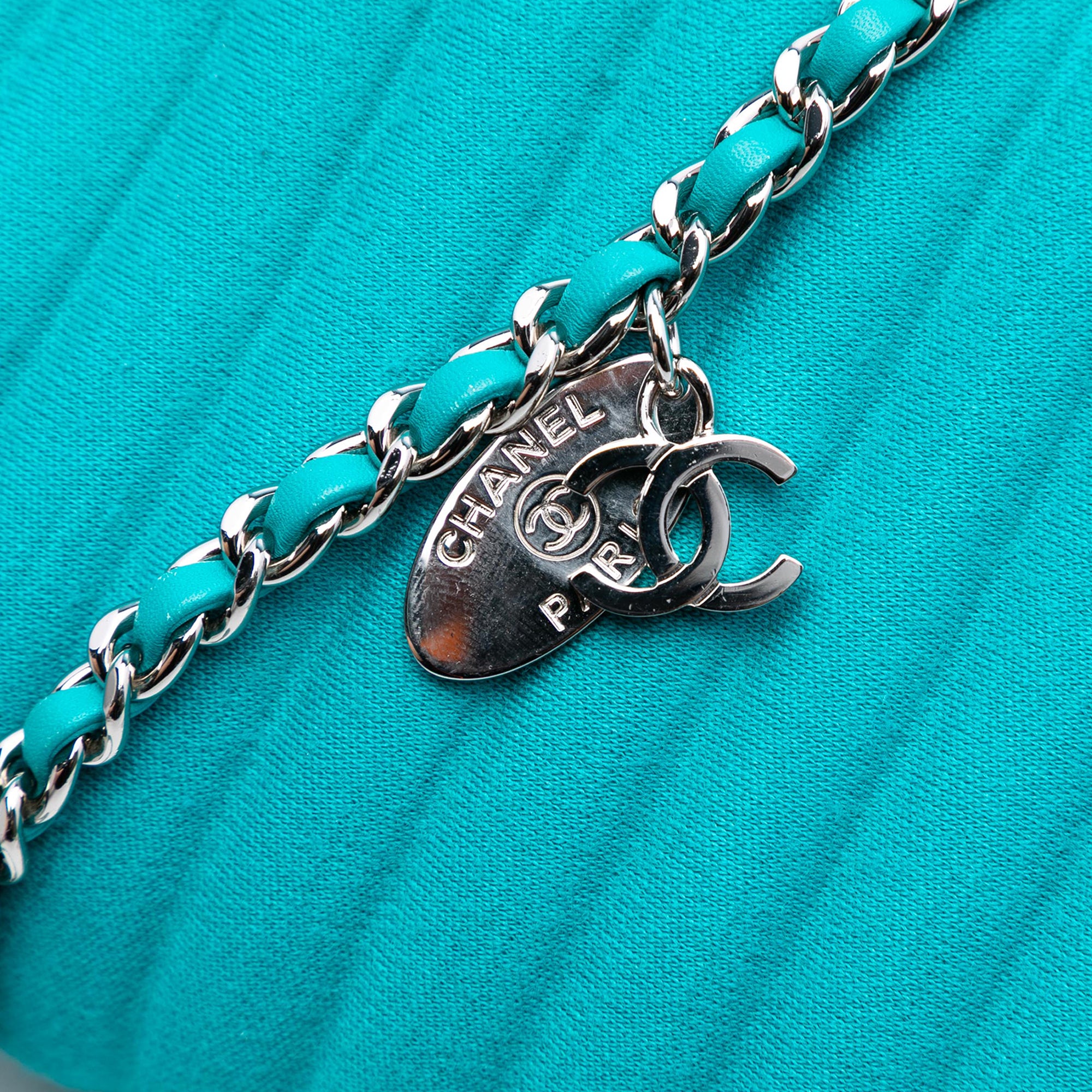 Product Details: Blue Chanel Mini Vertical Quilted Jersey Single Flap Crossbody Bag. This crossbody bag features a quilted jersey body, a leather woven chain-link shoulder strap with leather guard, a front flap with interlocking Cs and a twist lock closure, and an interior zip pocket. 5.1" L x 8.3" W x 2" D. Serial number 22315529.