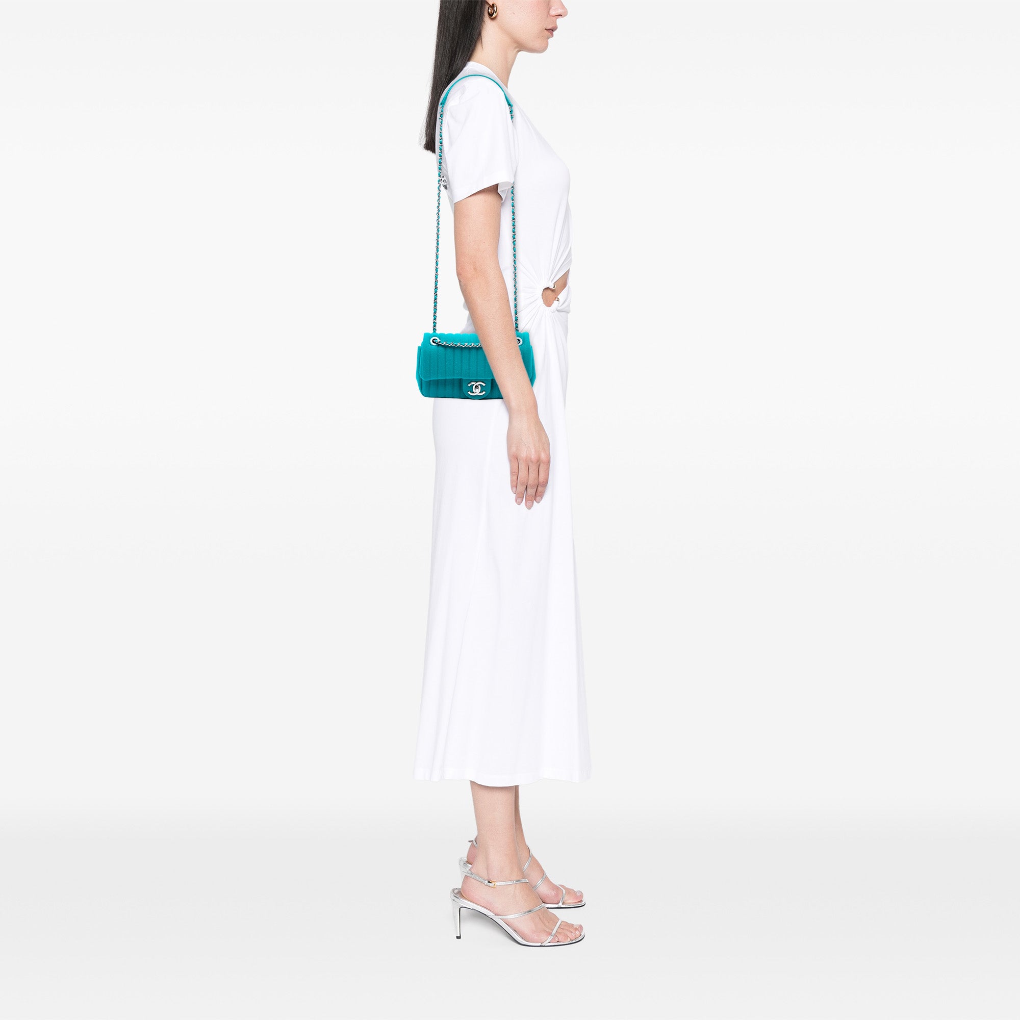 Blue Chanel Mini Vertical Quilted Jersey Single Flap Crossbody Bag