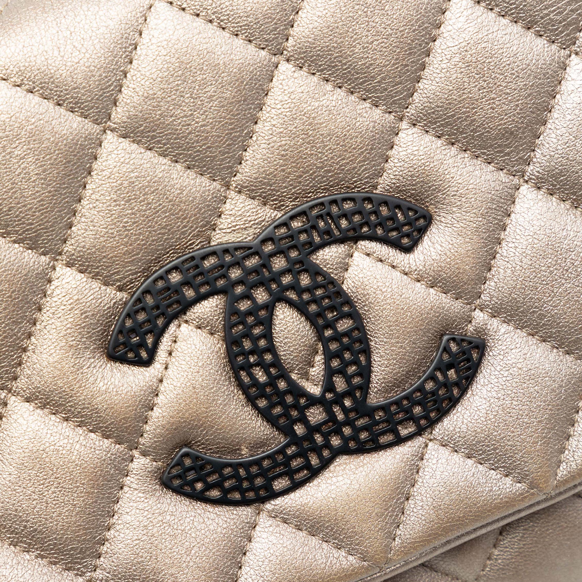 Gold Chanel CC Quilted Metallic Lambskin Butterfly Chain Clutch Shoulder Bag