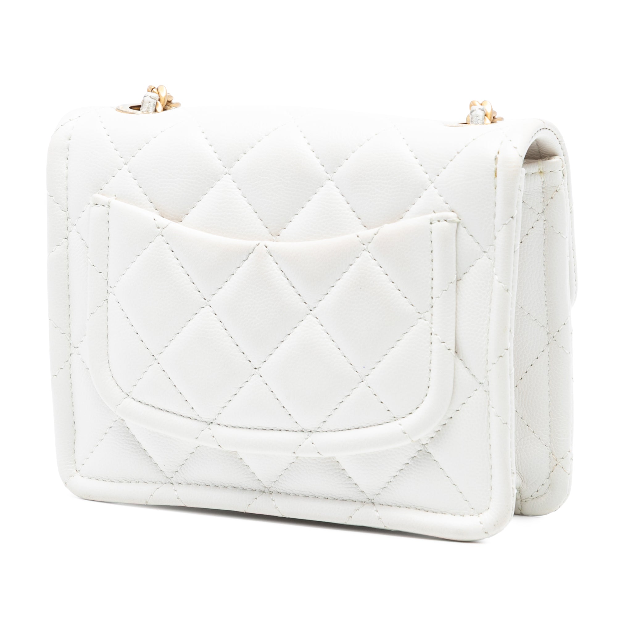 White Chanel Mini Quilted Caviar Sweet Classic Flap Crossbody Bag
