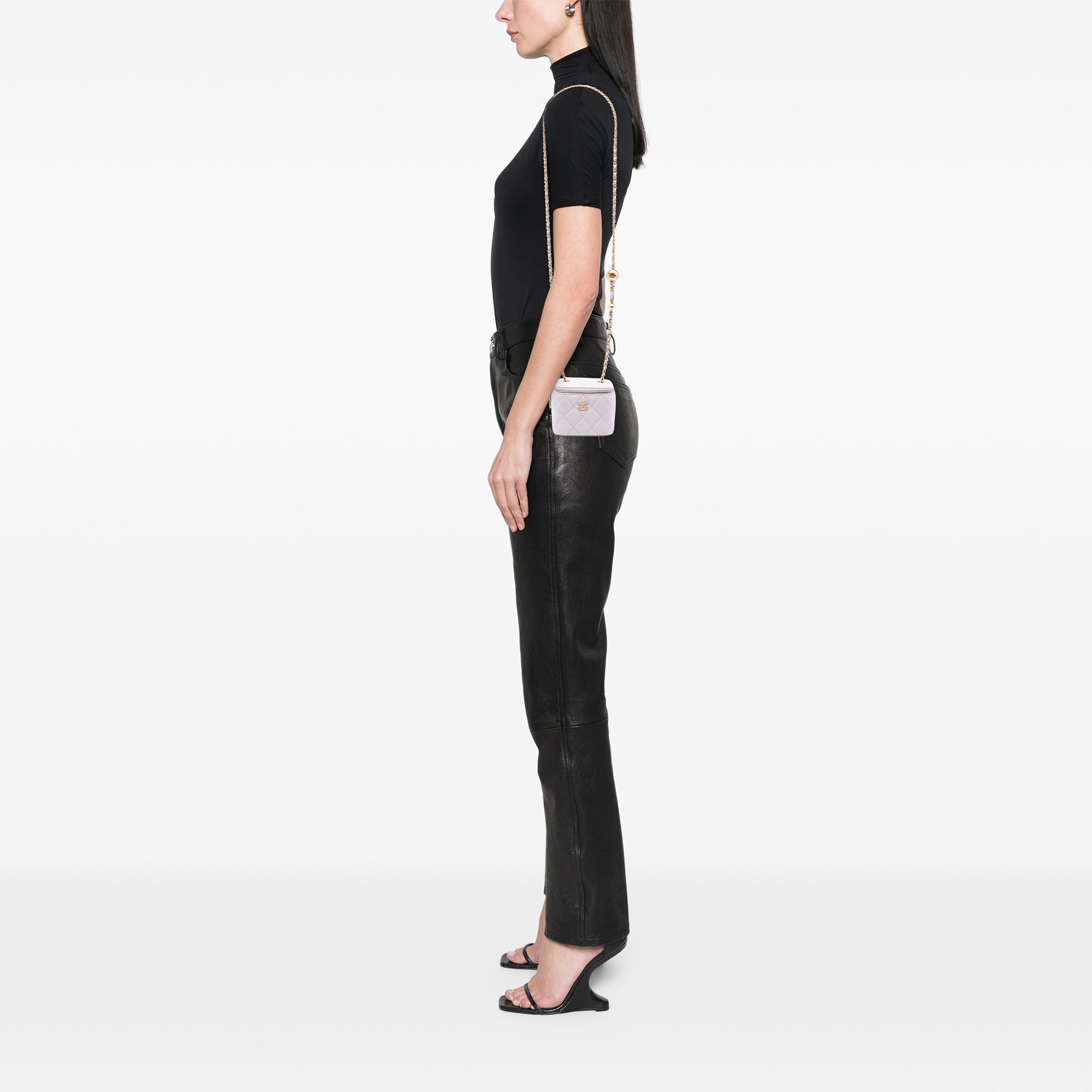Purple Chanel Mini Quilted Lambskin Pearl Crush Vanity Case With Chain Crossbody Bag
