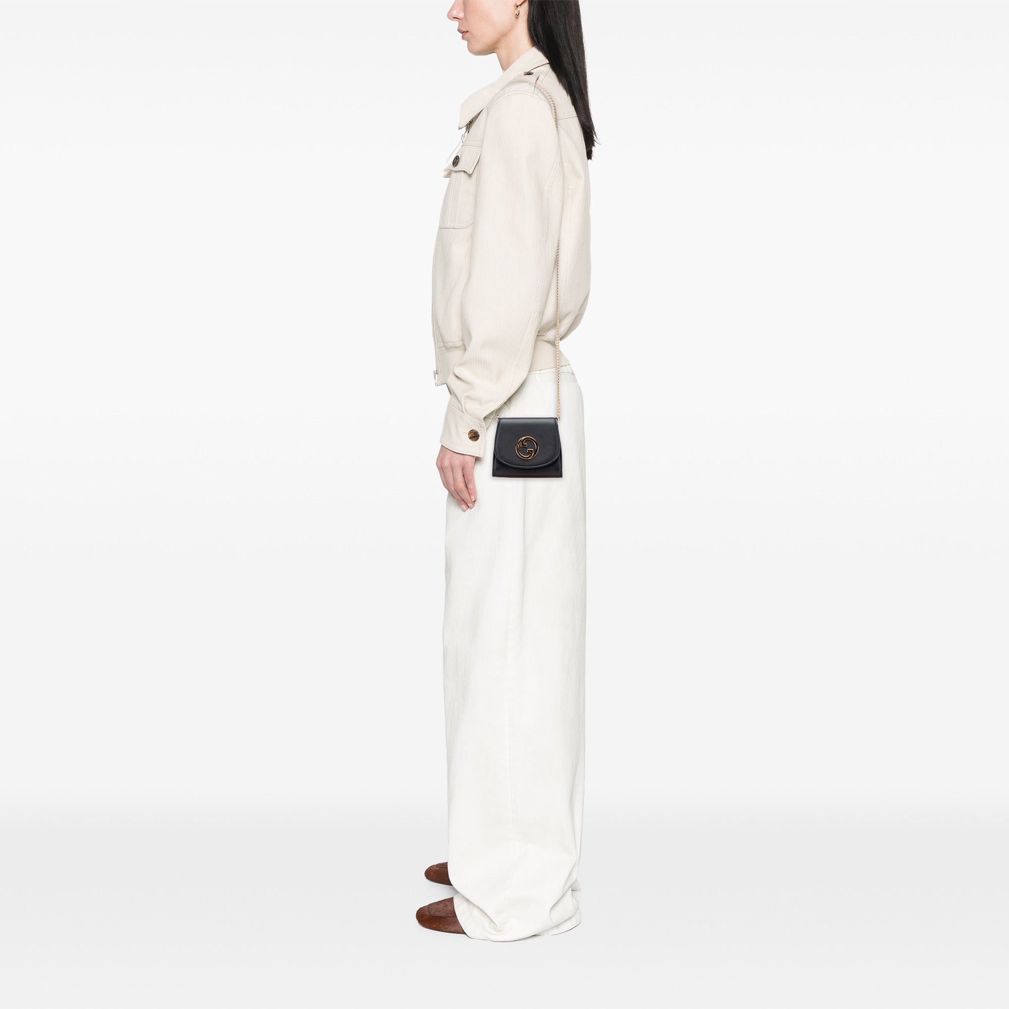 Black Gucci Medium Calfskin Blondie Wallet on Chain Crossbody Bag