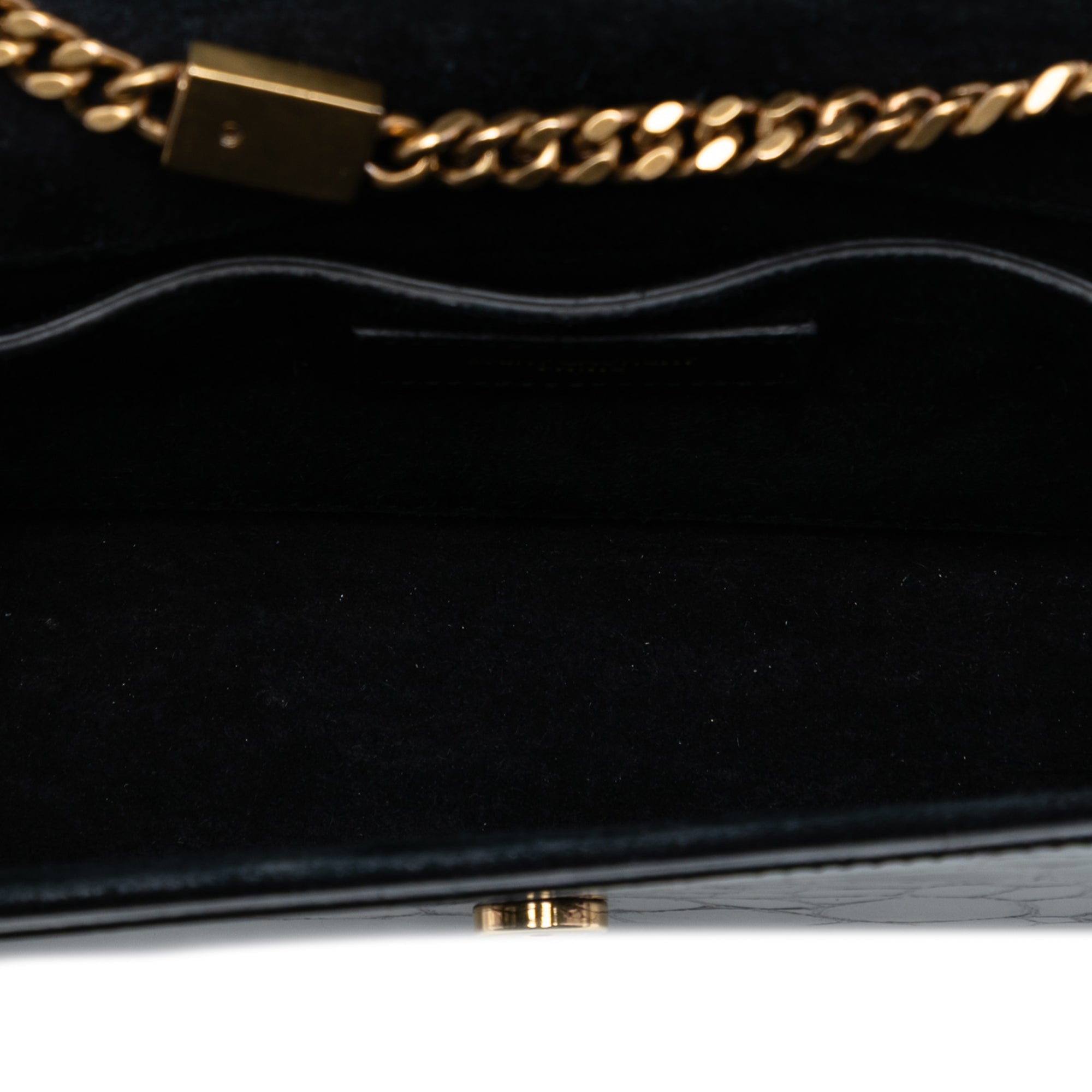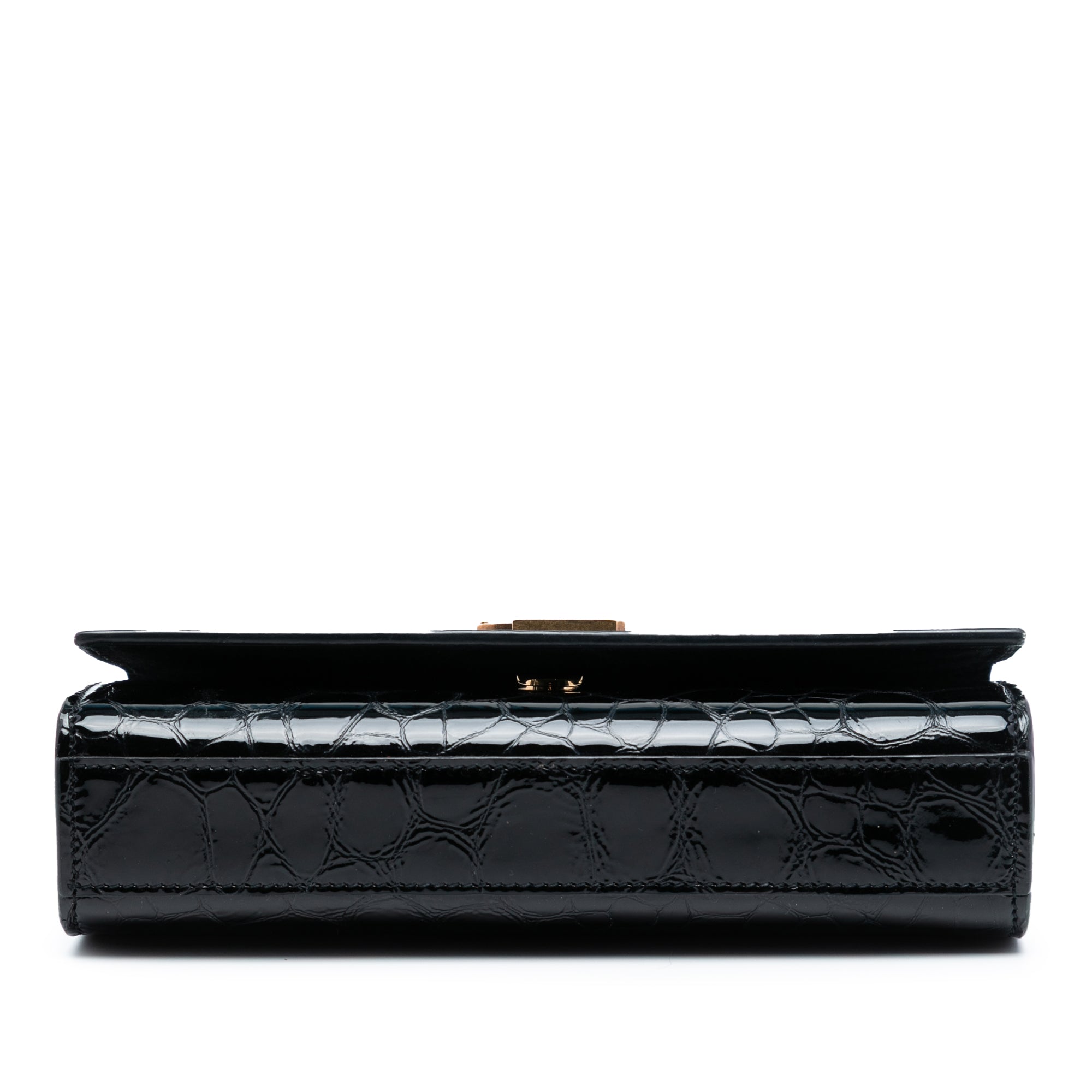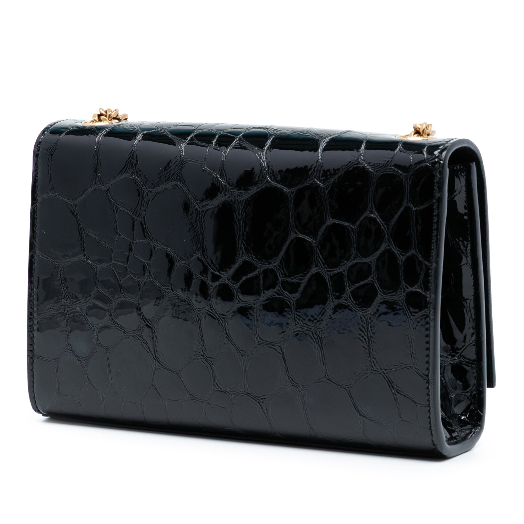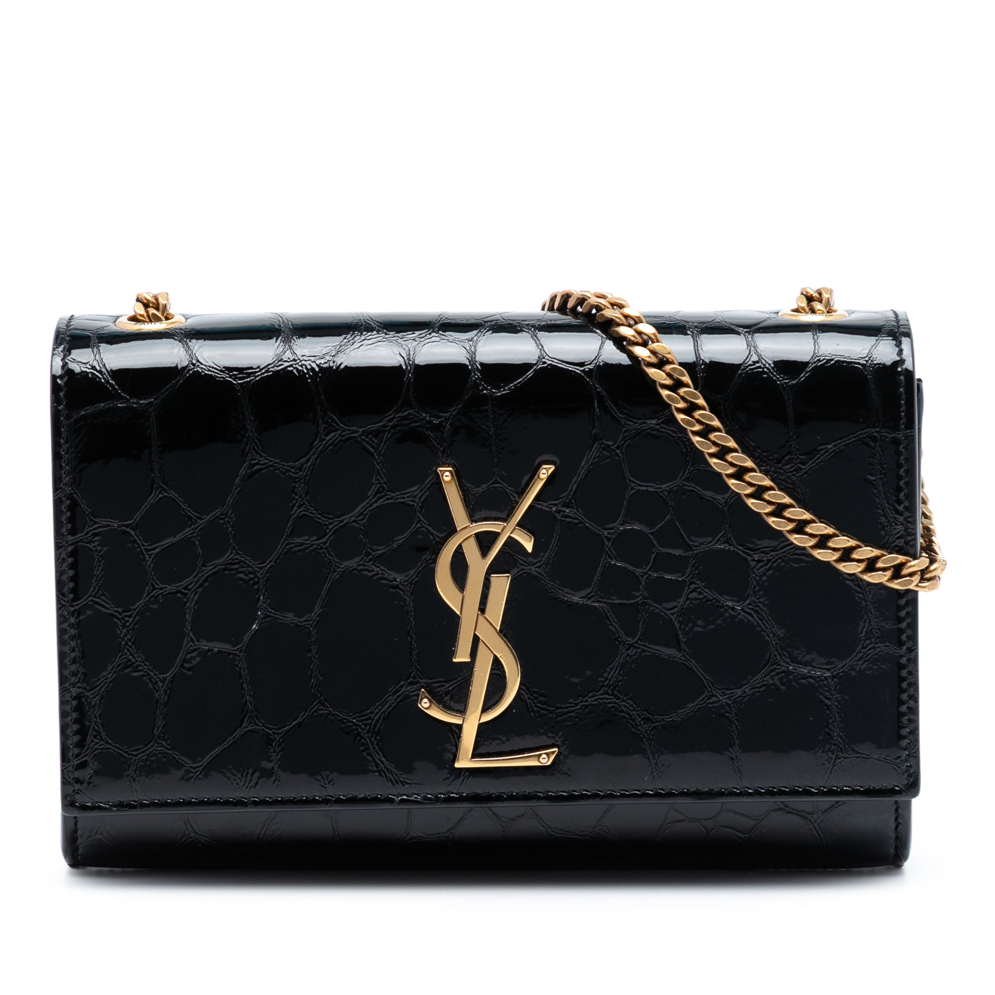 Black Saint Laurent Small Croc Embossed Patent Monogram Kate Crossbody