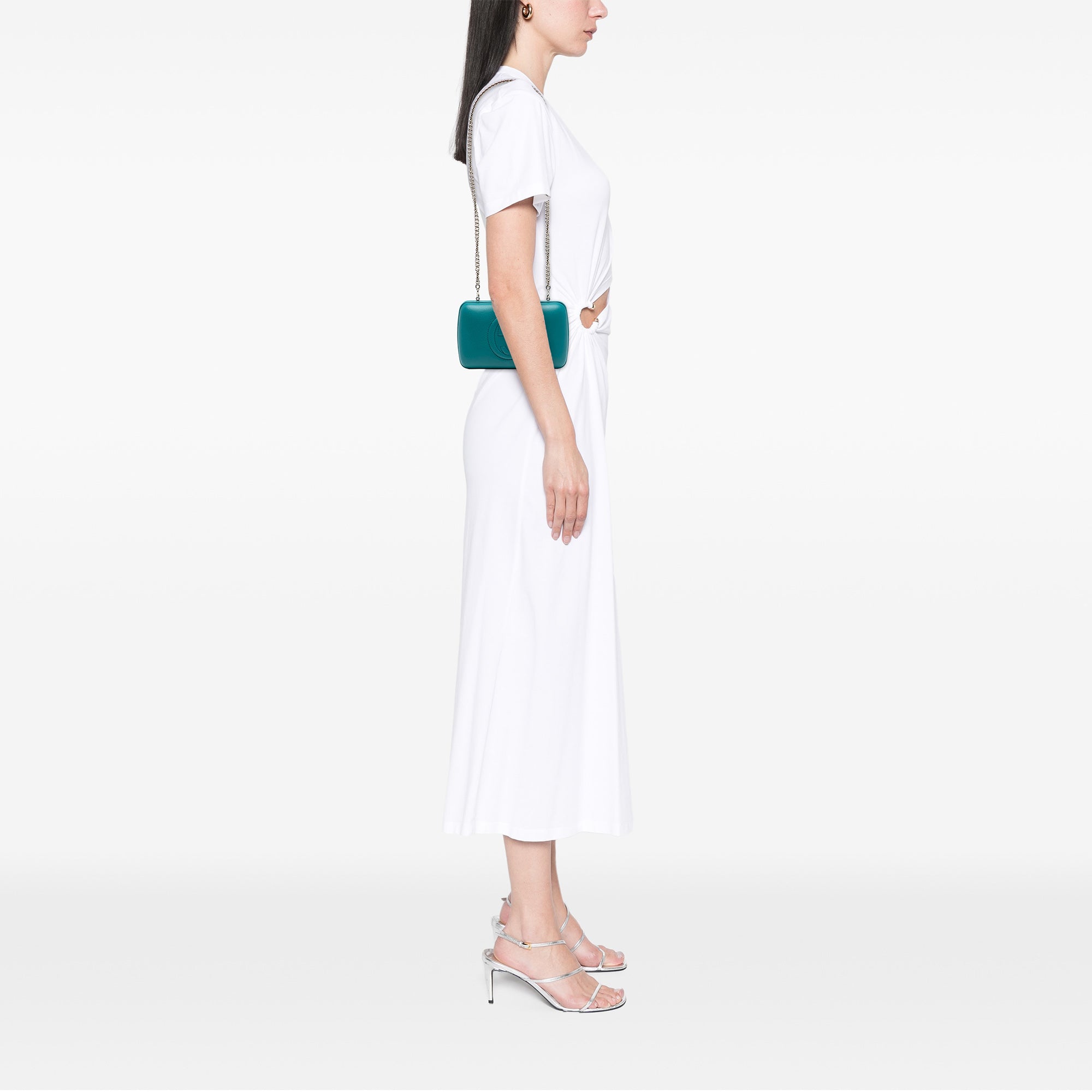 Blue Gucci Leather Soho Clutch on Chain Crossbody Bag