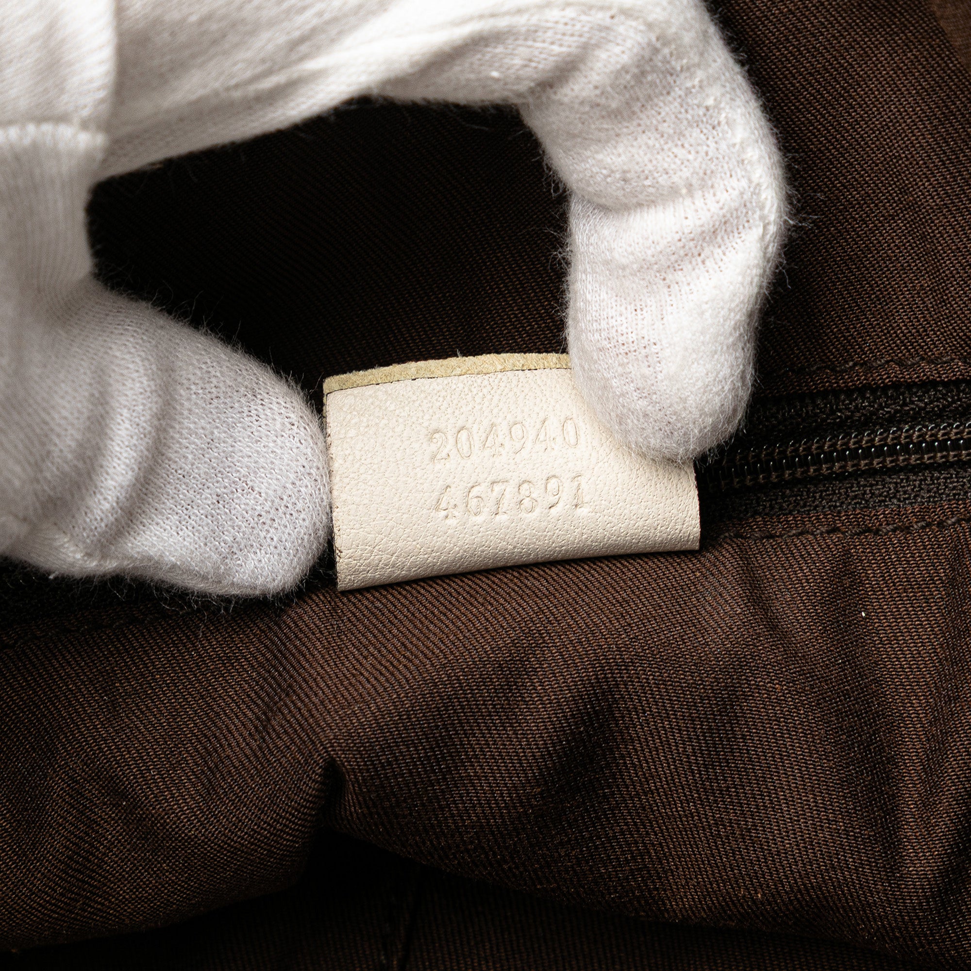 Product Details: Brown Gucci GG Canvas Abbey D Ring Crossbody. This crossbody bag features a canvas body with leather trim, a flat leather strap, a top zip closure, and interior zip and slip pockets. 11.8" L x 12.2" W x 1.2" D. Serial number 204940 467891.