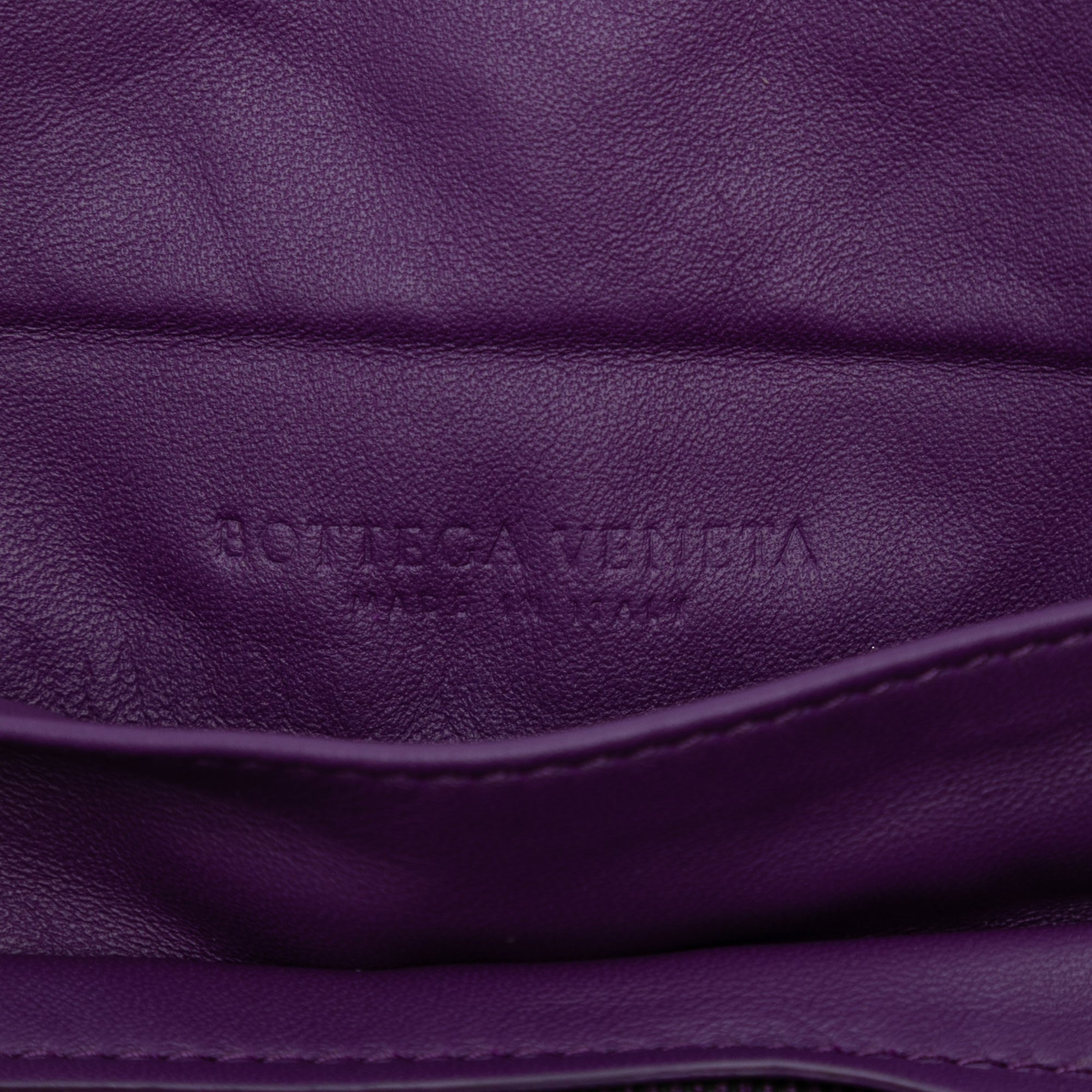 Please note this is a pre-owned item that may display signs of wear consistent with the condition listed above and shown in photos. Designer Revival guarantees this is an authentic Purple Bottega Veneta Mini Nappa Intrecciato Expandable Chain Flap Crossbody or 100% of your money back. Learn more about our authentication process.