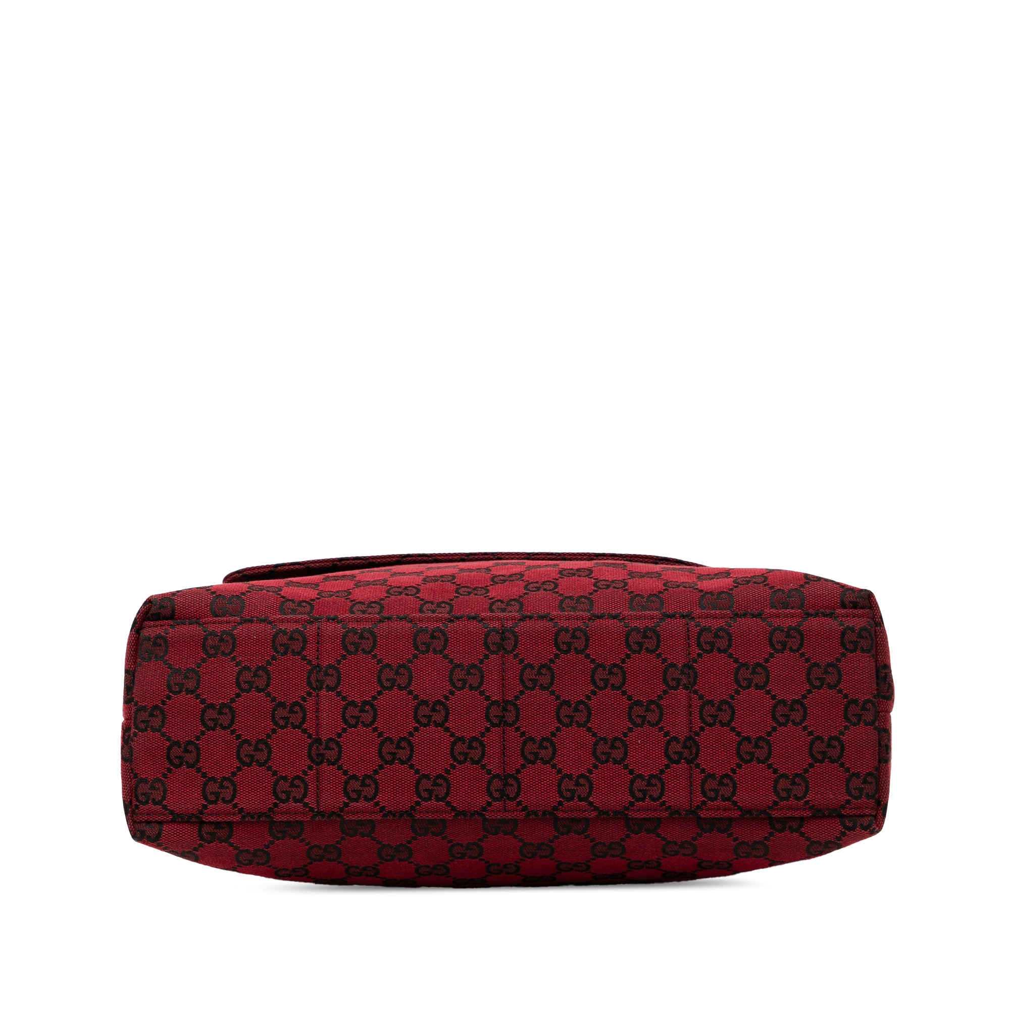 Product Details: Red Gucci GG Canvas Messenger Bag. This crossbody features a canvas body, an adjustable leather shoulder strap, a front flap with magnetic snap closure, and interior zip and slip pockets. 9.8" L x 12.6" W x 4.1" D. Serial number 272351 521753 08.