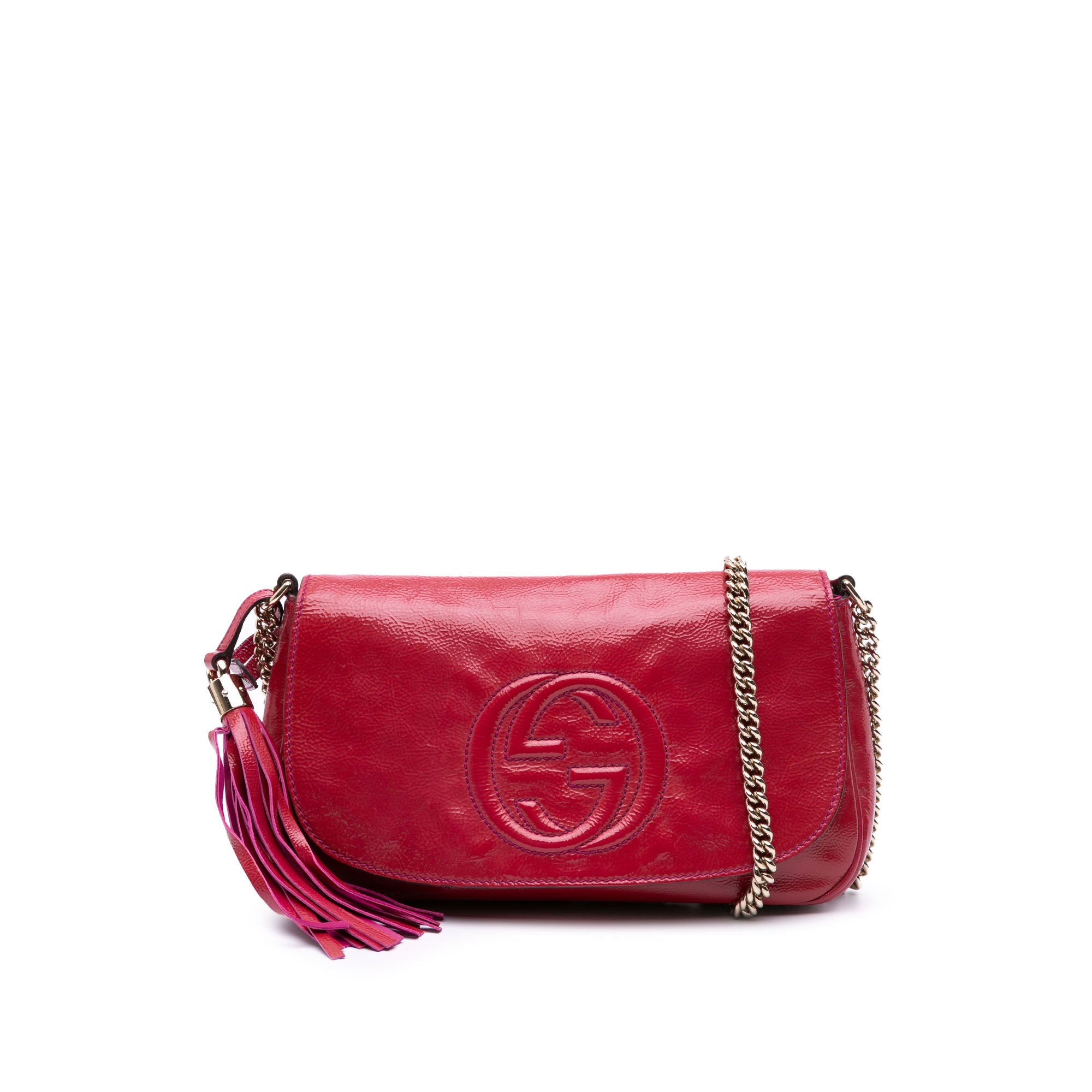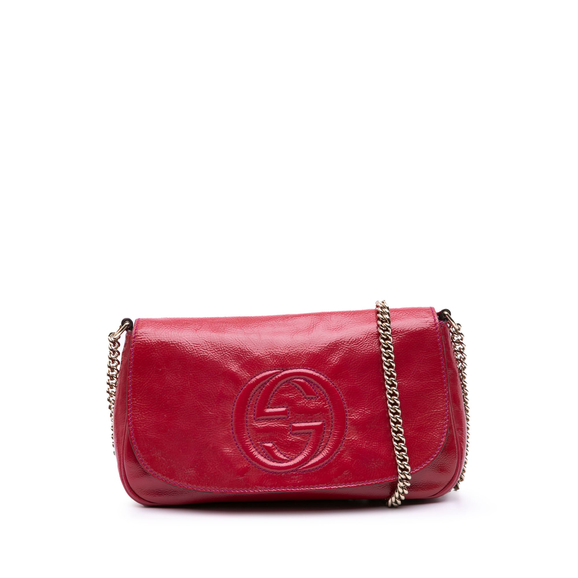 Red Gucci Medium Patent Soho Chain Flap Crossbody