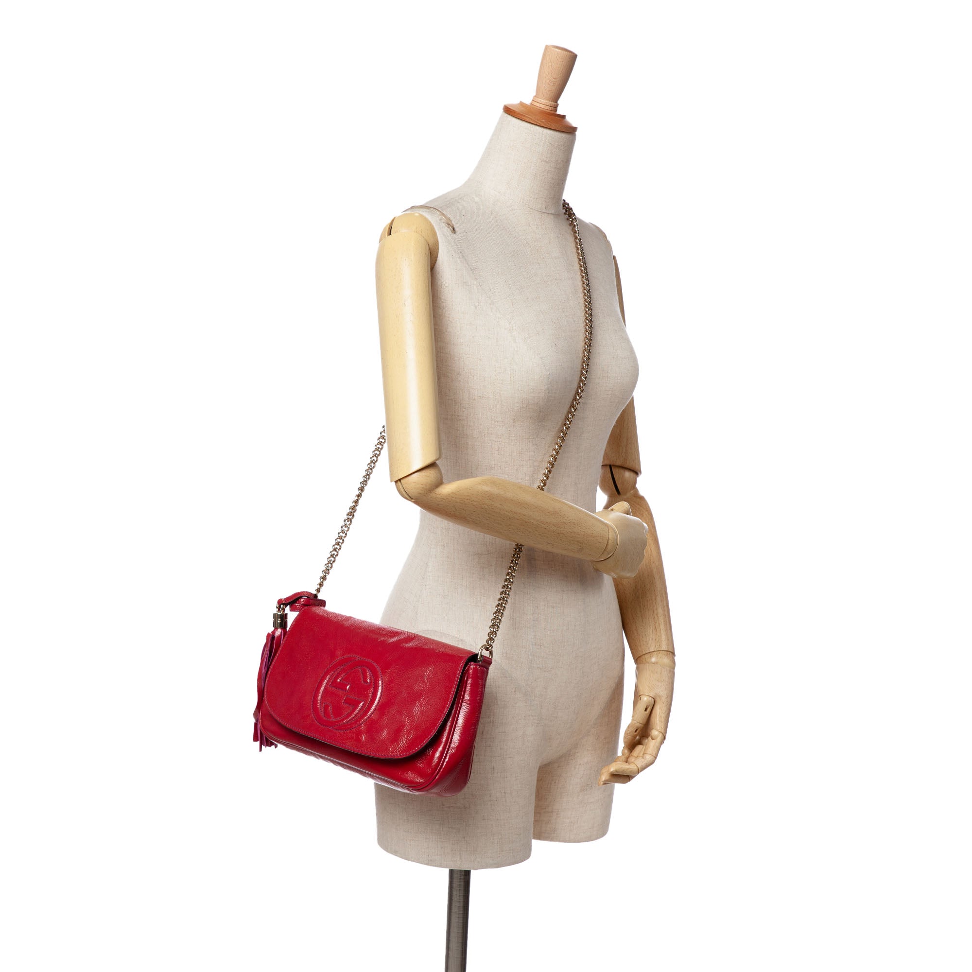 Please note this is a pre-owned item that may display signs of wear consistent with the condition listed above and shown in photos. Designer Revival guarantees this is an authentic Red Gucci Medium Patent Soho Chain Flap Crossbody or 100% of your money back. Learn more about our authentication process.