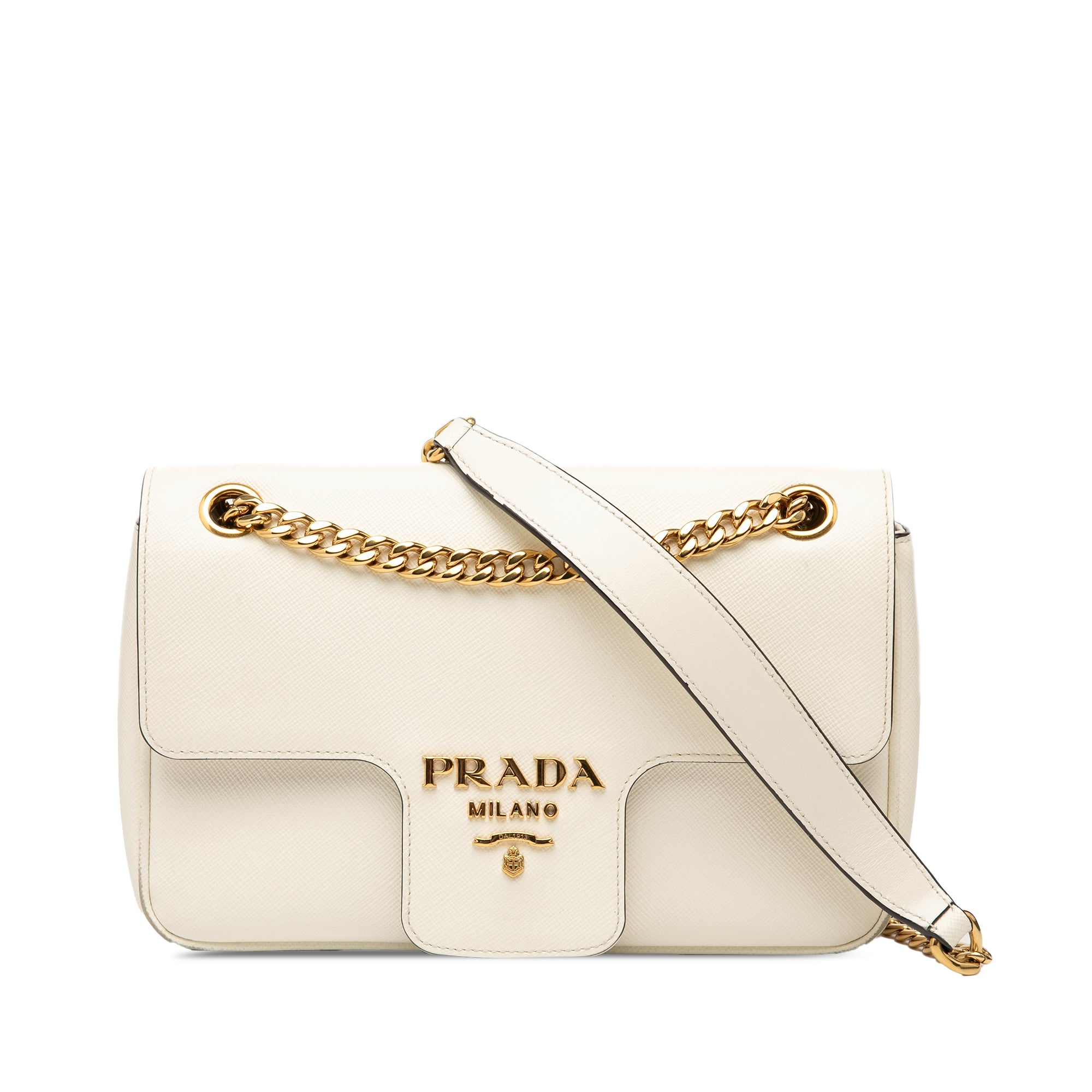 Please note this is a pre-owned item that may display signs of wear consistent with the condition listed above and shown in photos. Designer Revival guarantees this is an authentic White Prada Saffiano Pattina Chain Crossbody or 100% of your money back. Learn more about our authentication process.