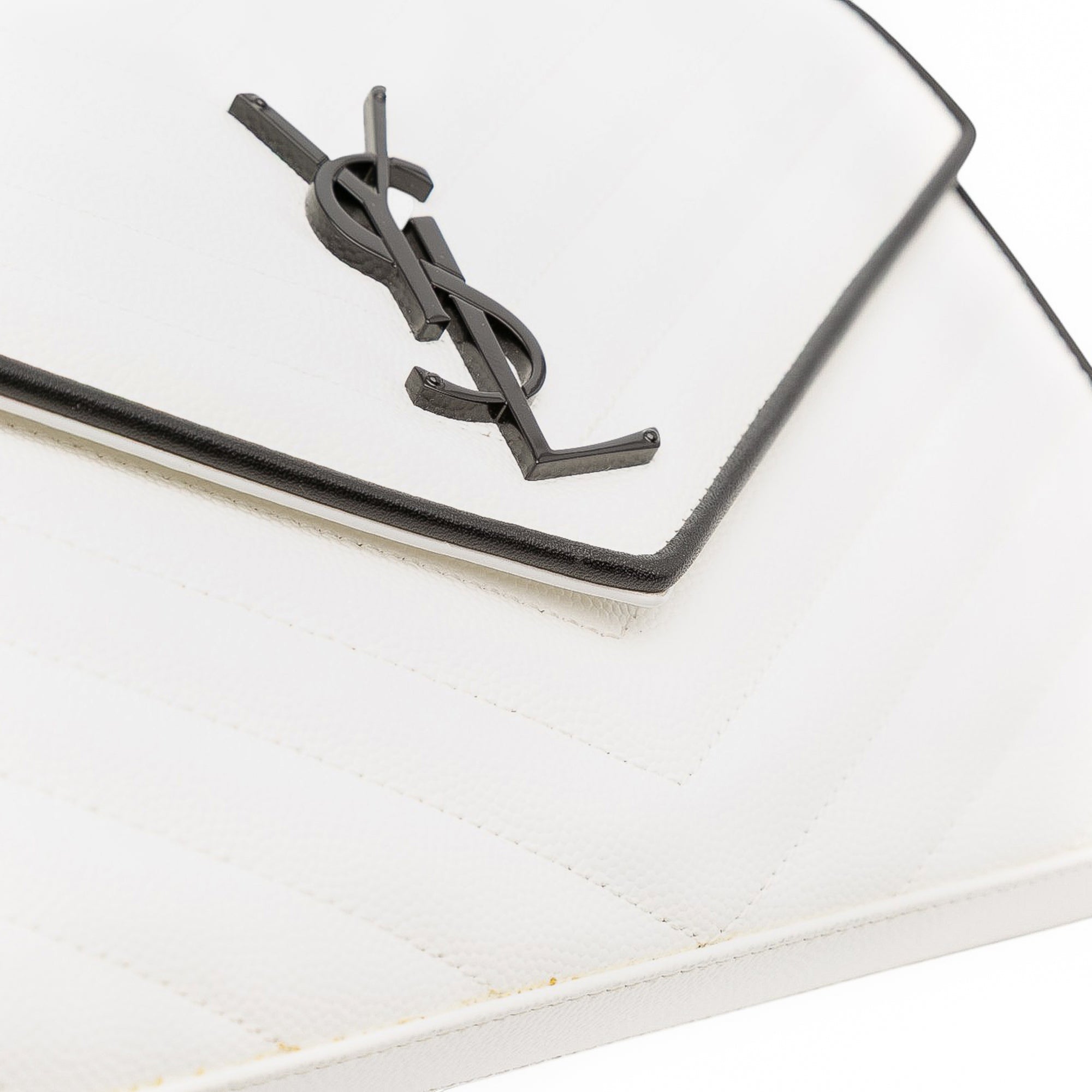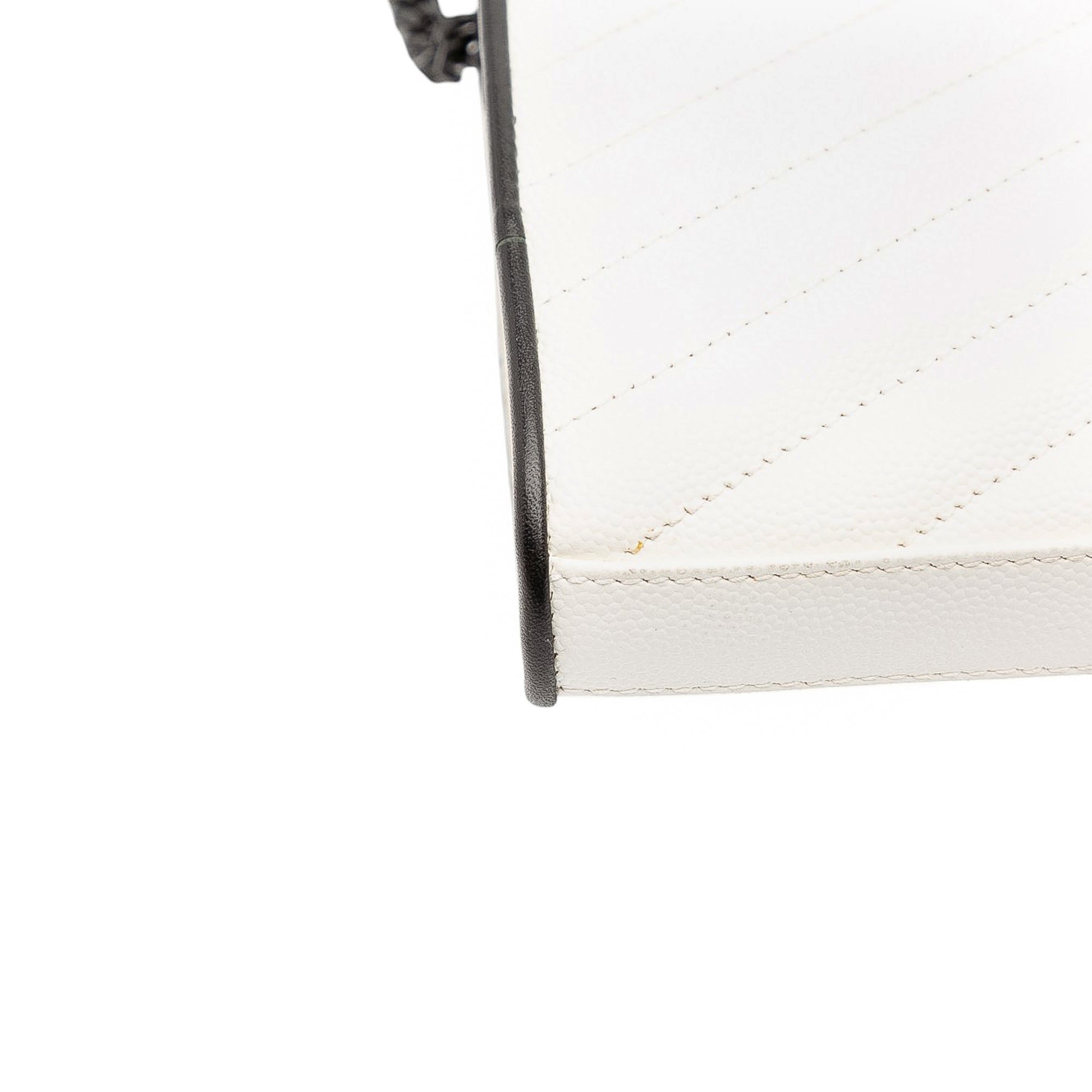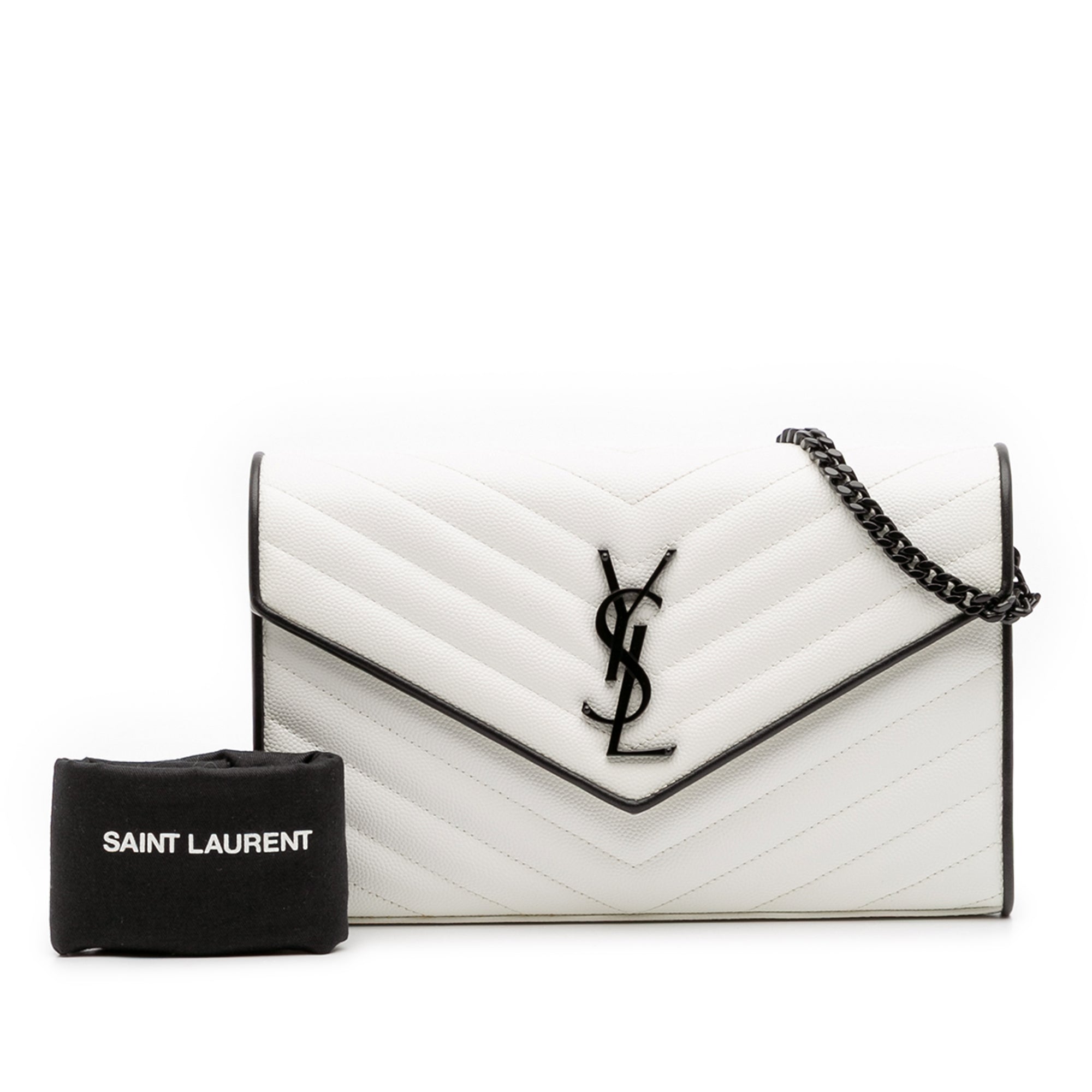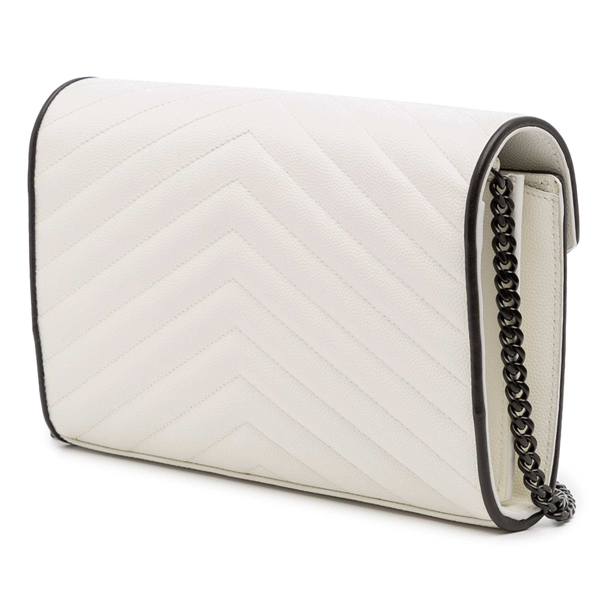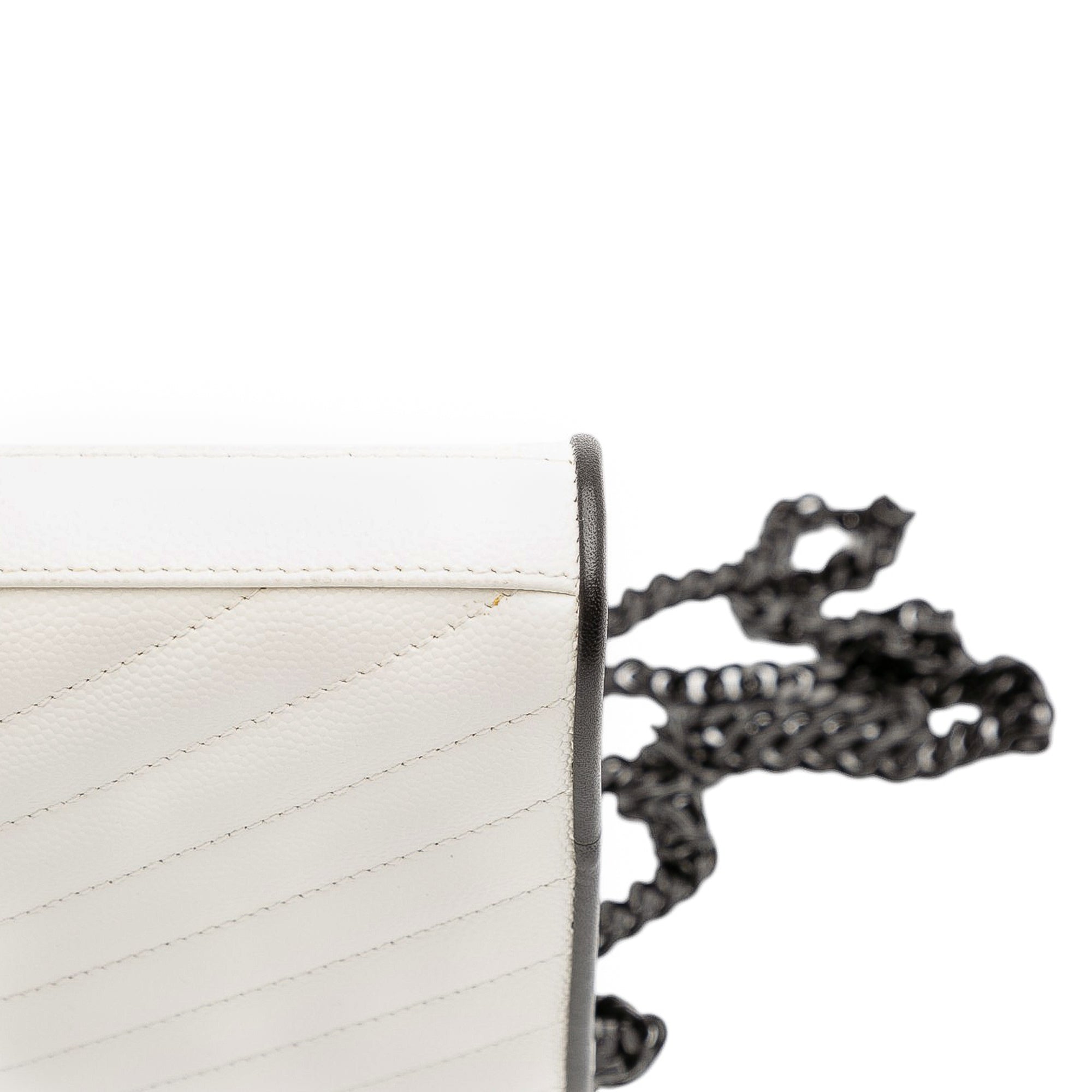 White Saint Laurent Grain De Poudre Matelasse Chevron Monogram Chain Wallet Crossbody Bag