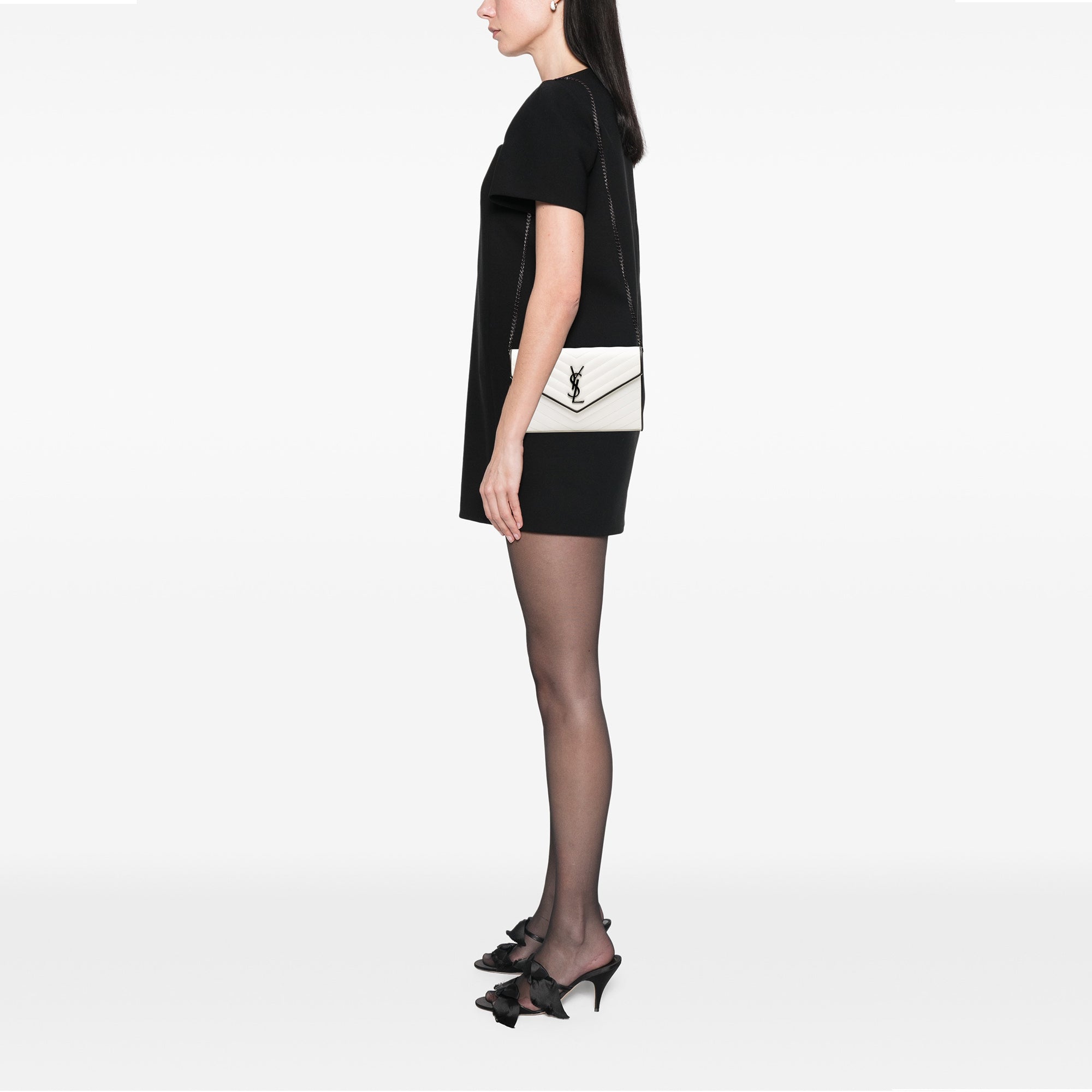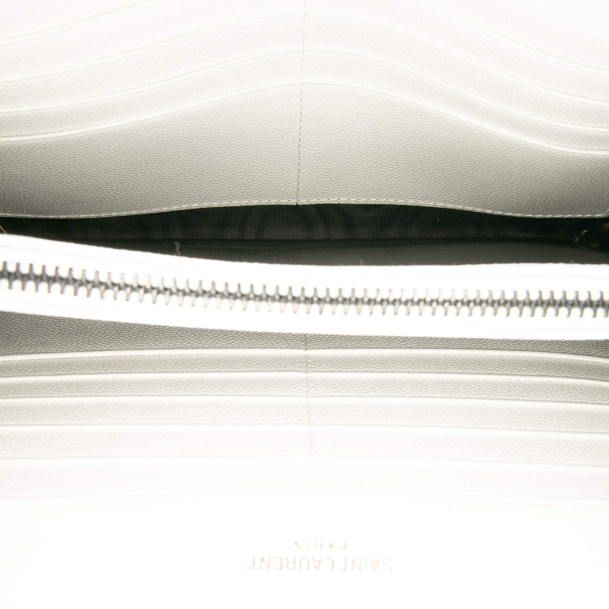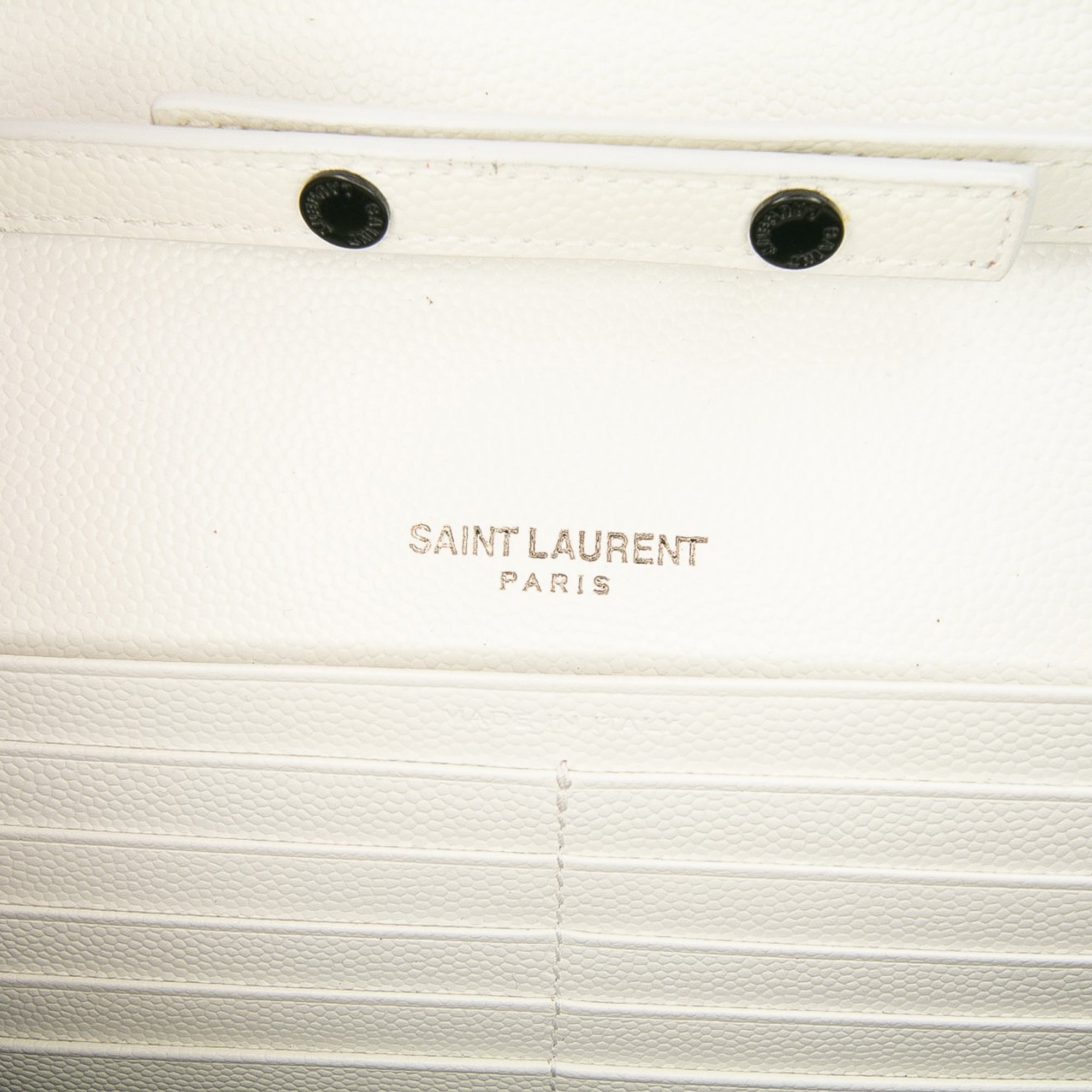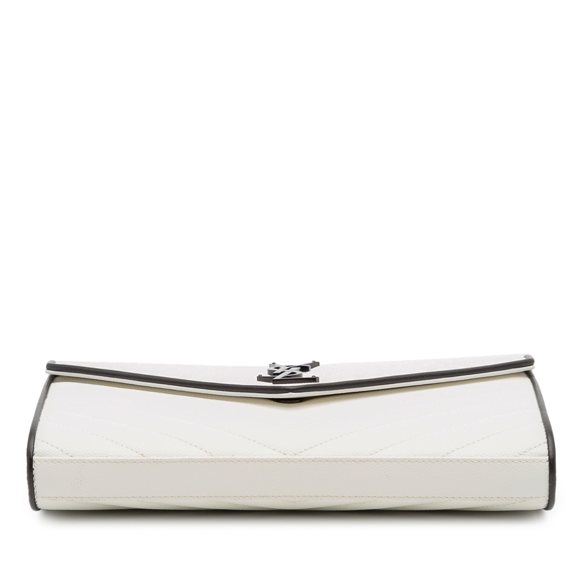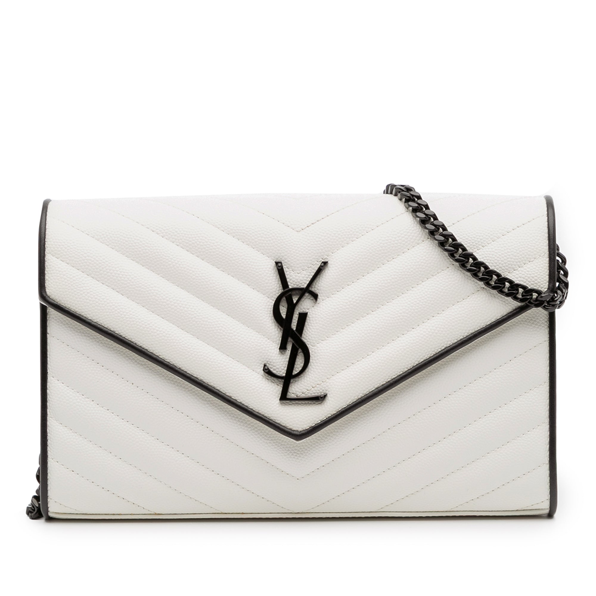 White Saint Laurent Grain De Poudre Matelasse Chevron Monogram Chain Wallet Crossbody Bag