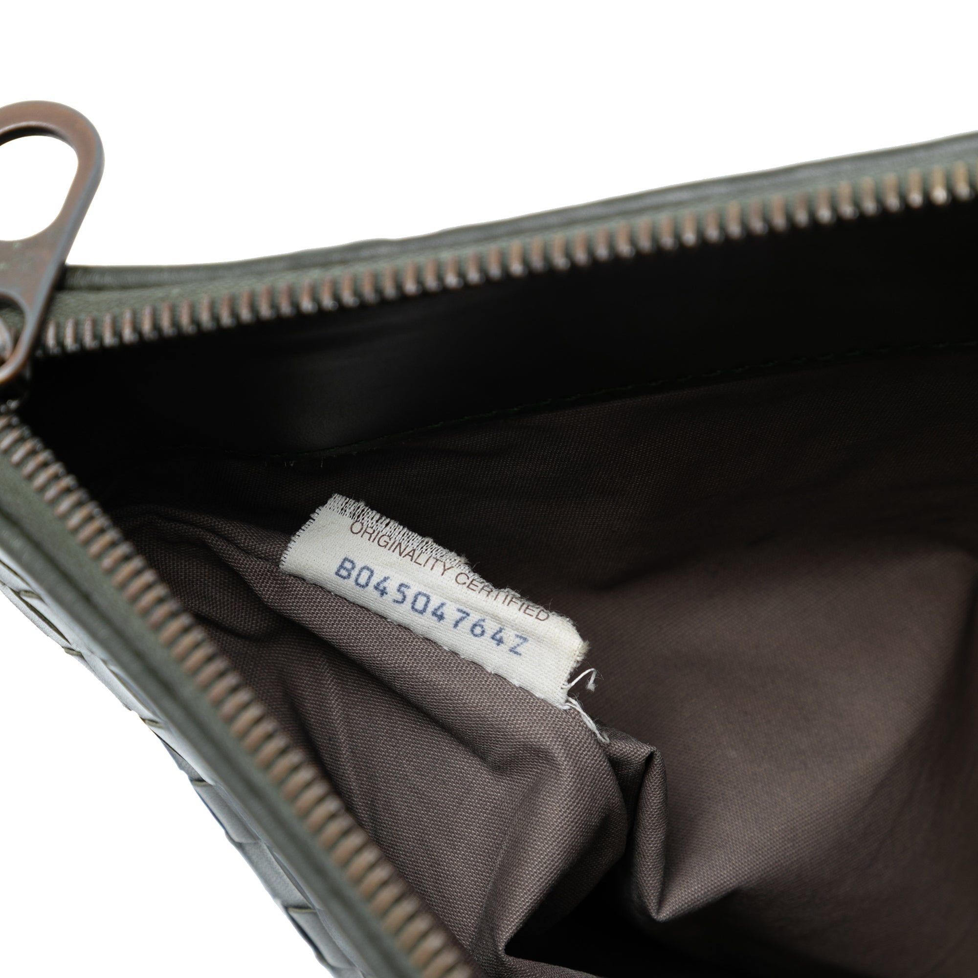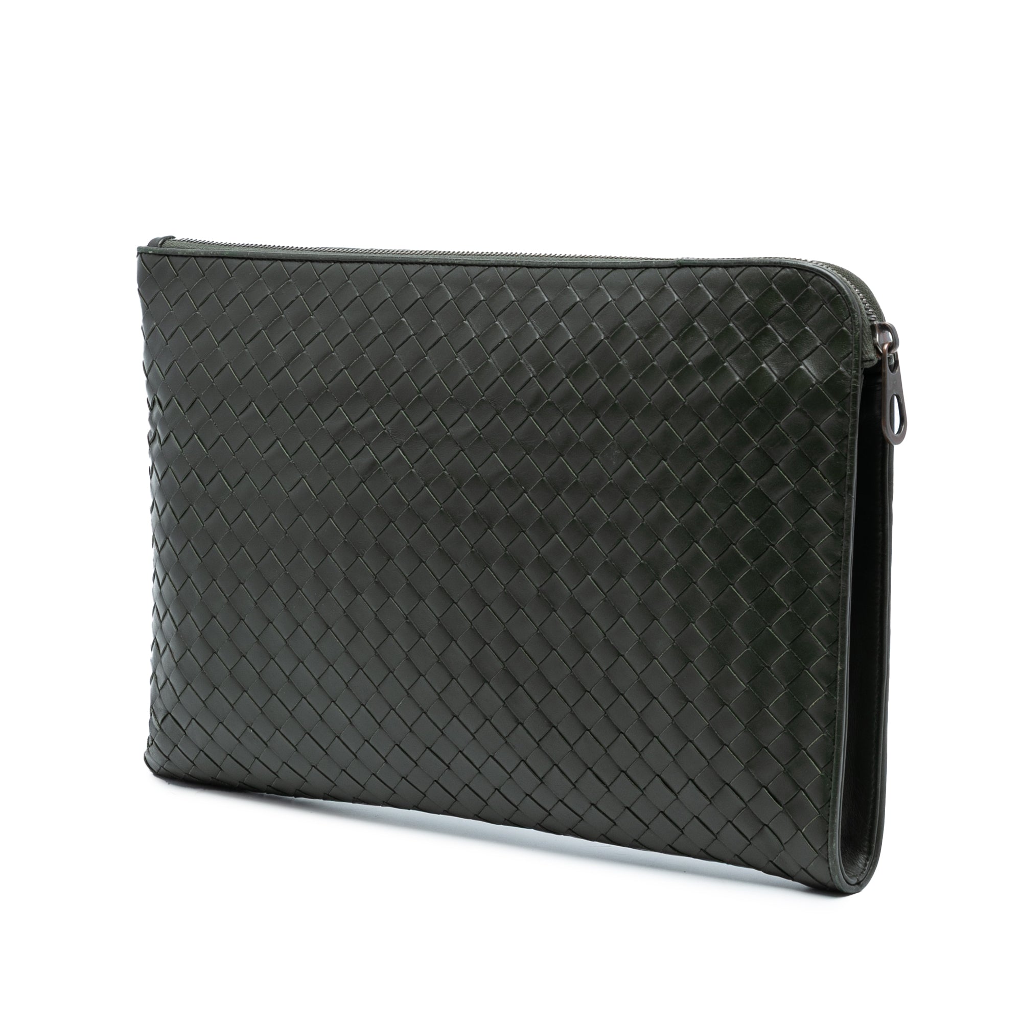 Product Details: Black Bottega Veneta Large Nappa Intrecciato Document Case Clutch Bag. This clutch bag features a woven nappa leather body and a top zip closure. 9.3" L x 13.8" W x 0.8" D. Serial number B04504764Z.