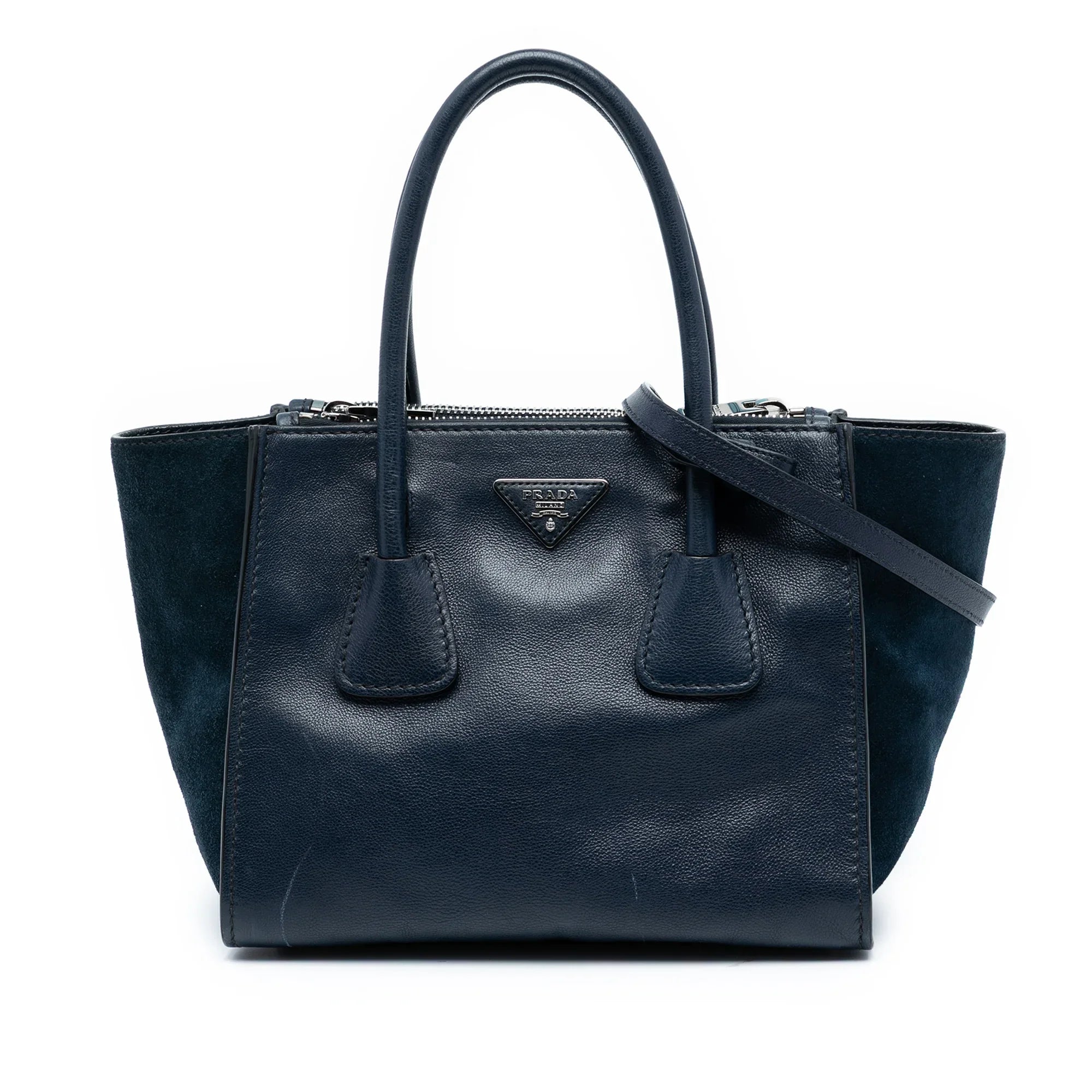 Please note this is a pre-owned item that may display signs of wear consistent with the condition listed above and shown in photos. Designer Revival guarantees this is an authentic Blue Prada Glace Calf Twin Pocket Satchel or 100% of your money back. Learn more about our authentication process.