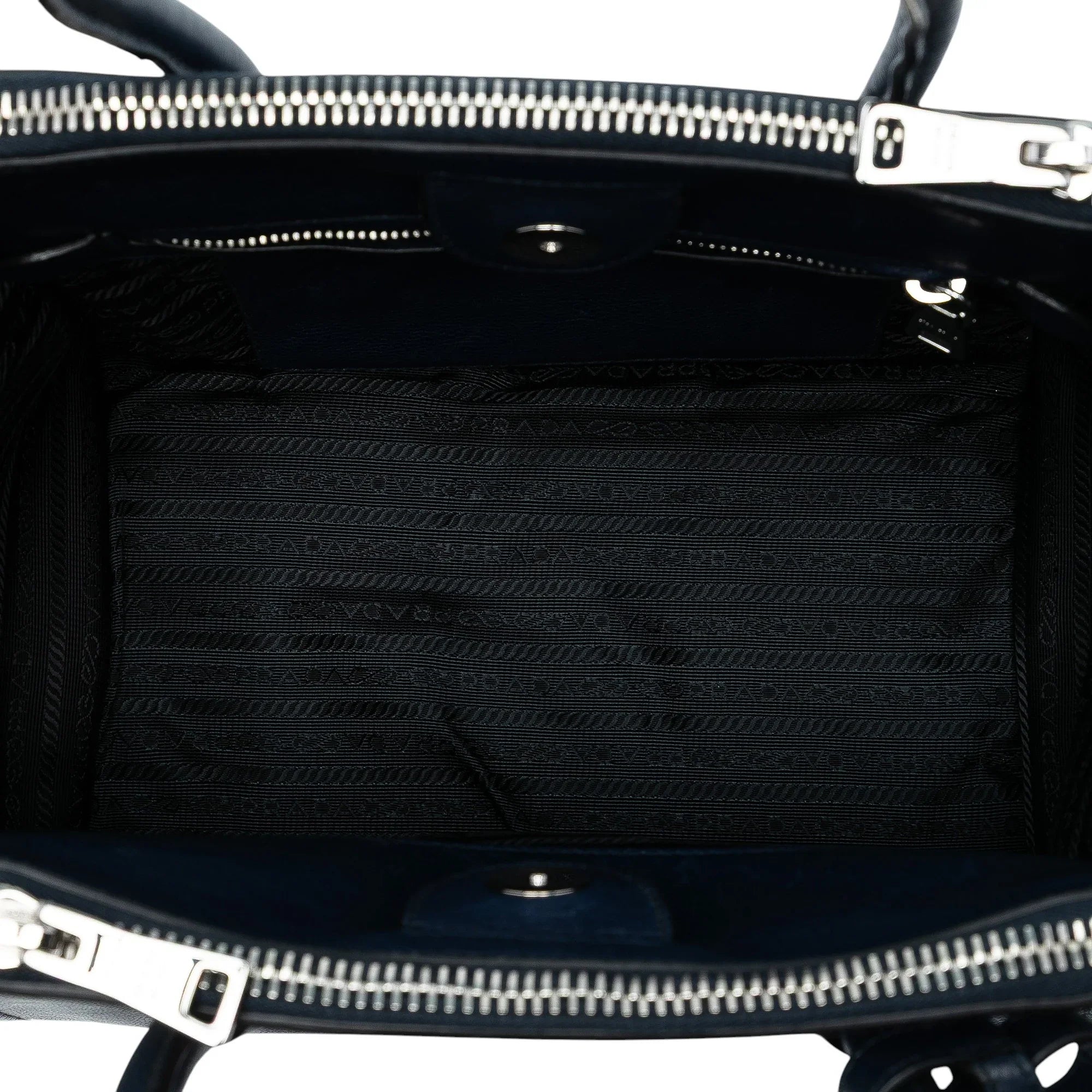 Blue Prada Glace Calf Twin Pocket Satchel