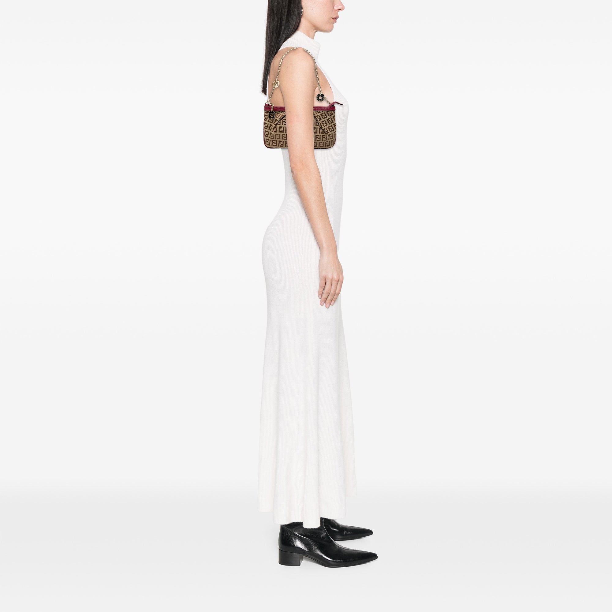 Brown Fendi Zucchino Canvas Chain Pochette Shoulder Bag