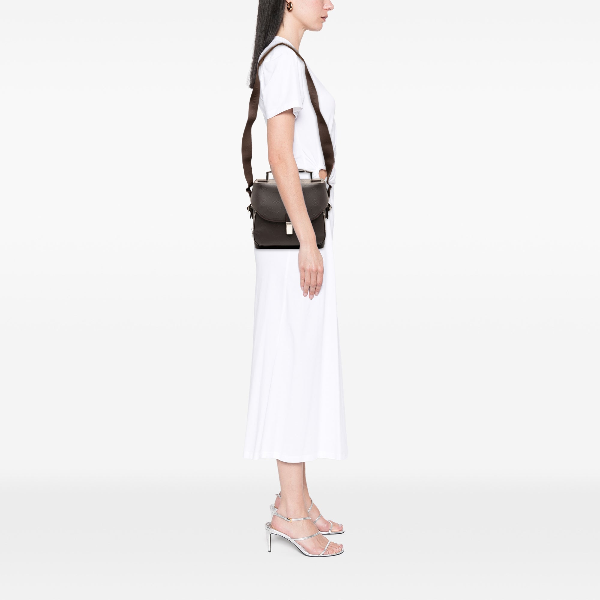 Product Details: Brown Louis Vuitton Monogram Glace Charly Satchel. The Charly features a calf leather body, a leather top handle, a flat strap, a front flap with push lock closure, and a front exterior zip pocket. 8.3" L x 8.7" W x 5.1" D, 1.6" drop. Serial number AS0061.