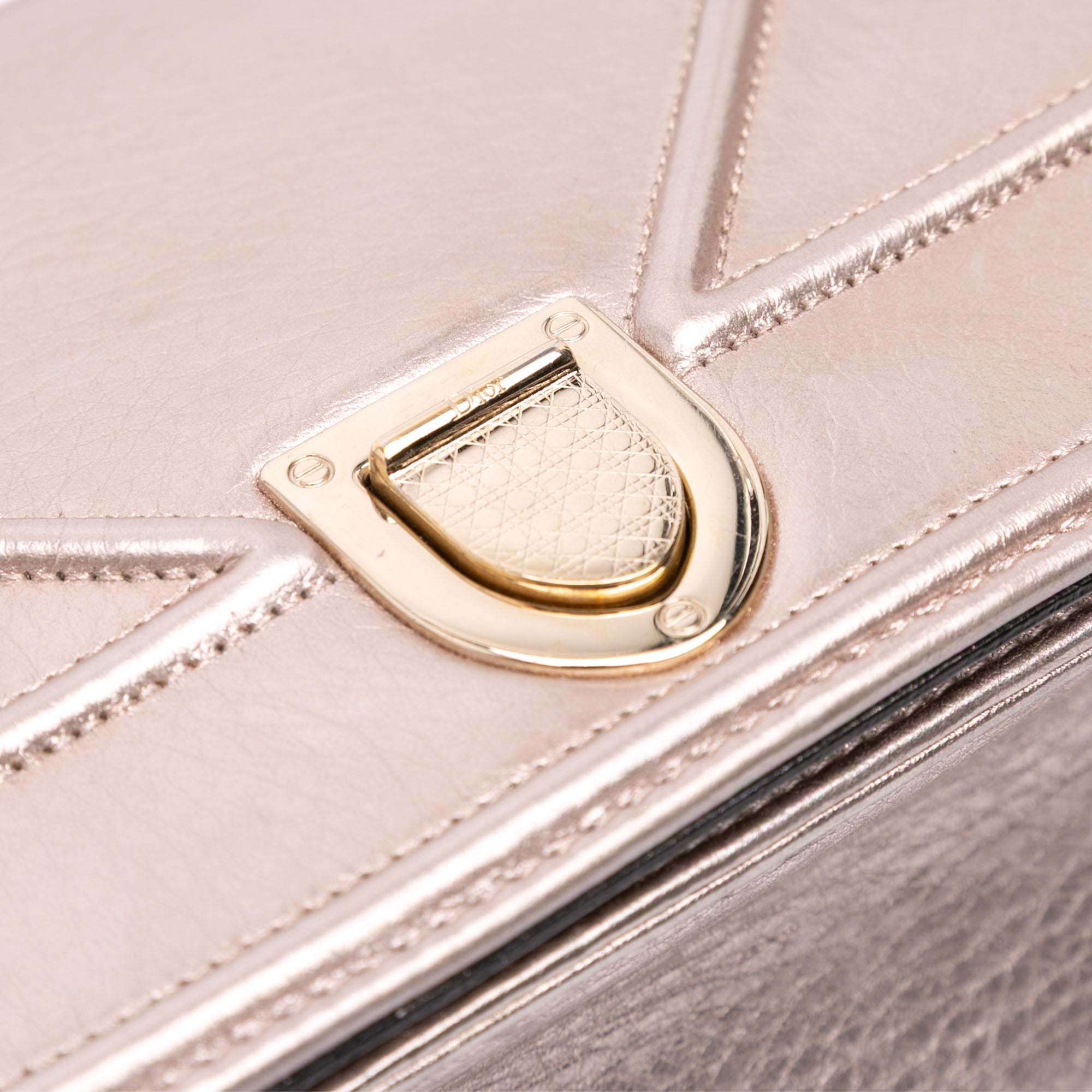 Gold Dior Small Metallic Grained Calfskin Diorama Flap Crossbody Bag