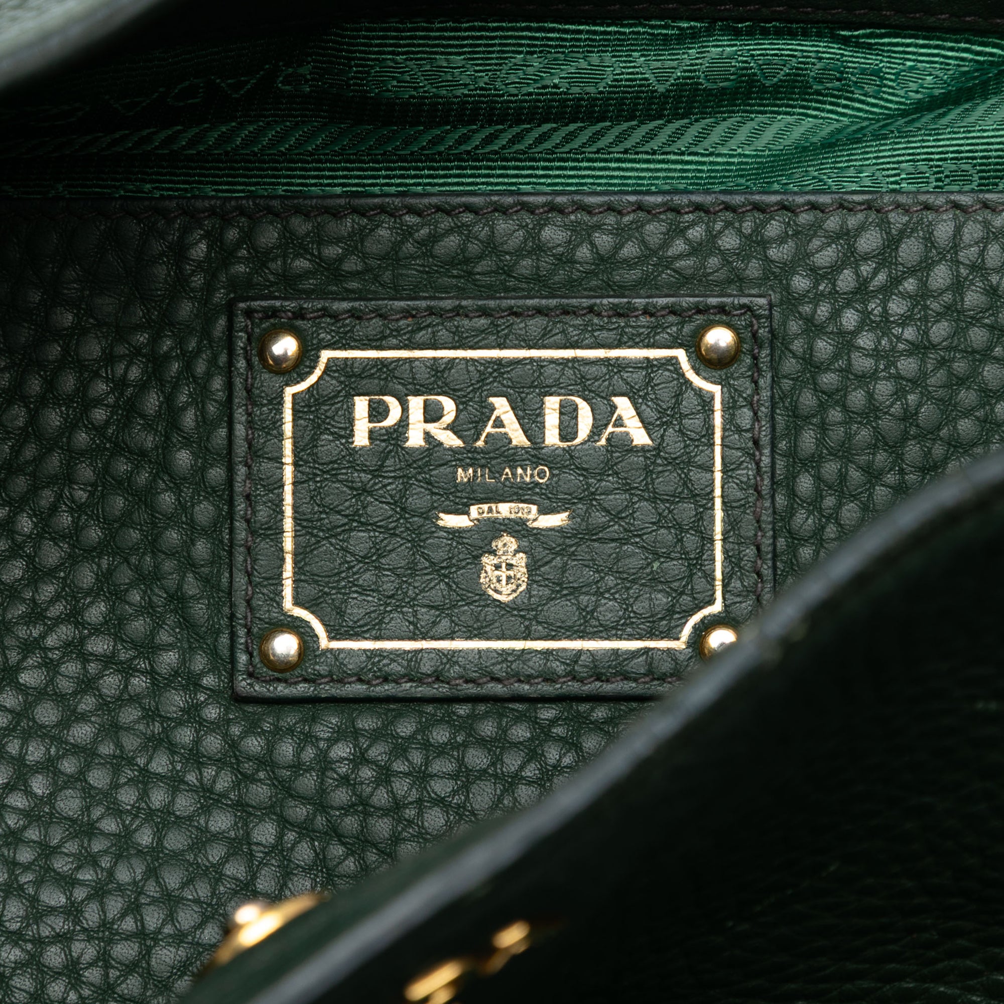 Please note this is a pre-owned item that may display signs of wear consistent with the condition listed above and shown in photos. Designer Revival guarantees this is an authentic Green Prada Vitello Daino Double Pocket Tote or 100% of your money back. Learn more about our authentication process.