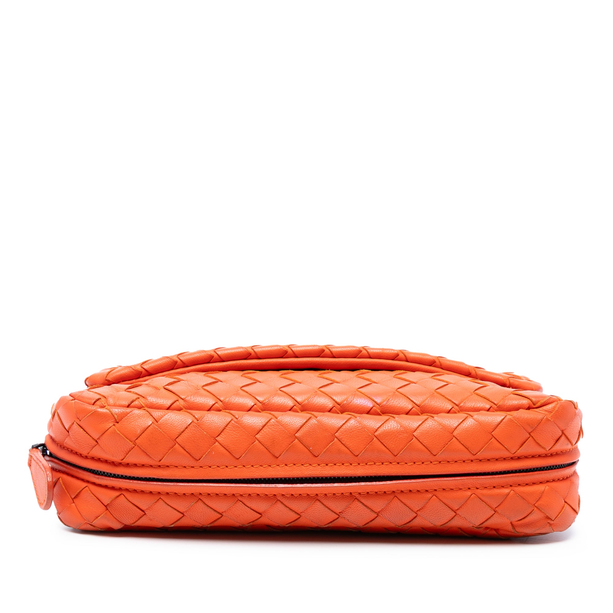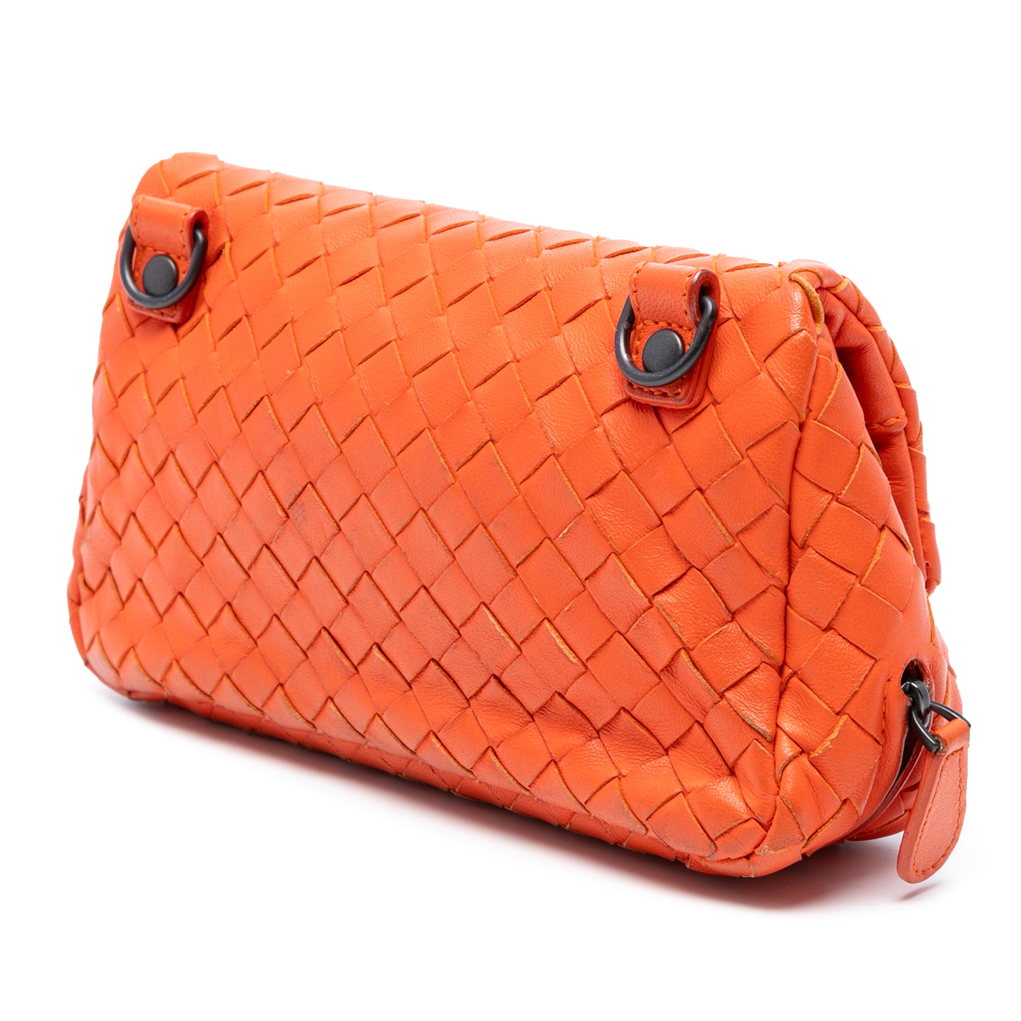 Please note this is a pre-owned item that may display signs of wear consistent with the condition listed above and shown in photos. Designer Revival guarantees this is an authentic Orange Bottega Veneta Mini Nappa Intrecciato Expandable Chain Flap Crossbody or 100% of your money back. Learn more about our authentication process.