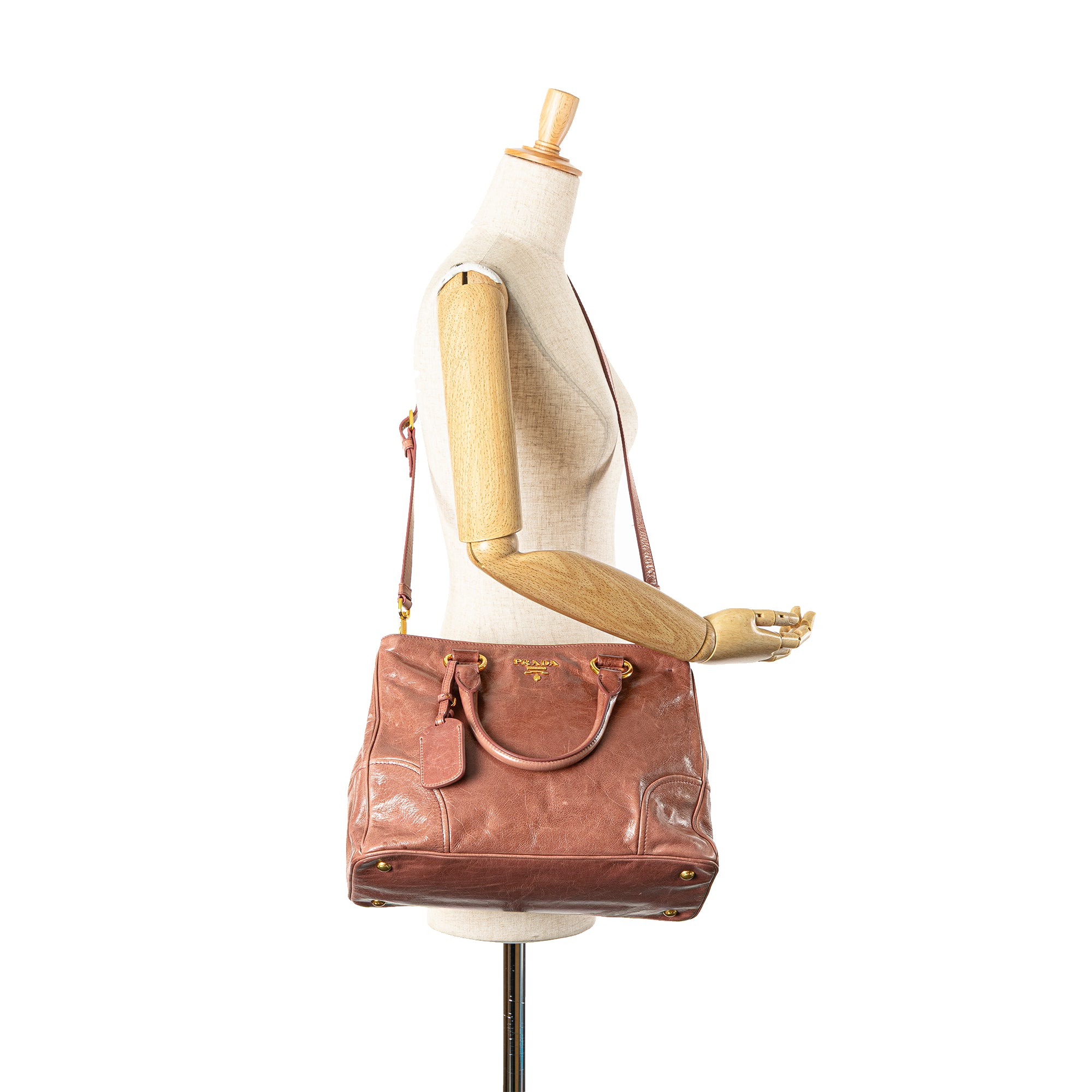 Please note this is a pre-owned item that may display signs of wear consistent with the condition listed above and shown in photos. Designer Revival guarantees this is an authentic Pink Prada Vitello Shine Satchel or 100% of your money back. Learn more about our authentication process.