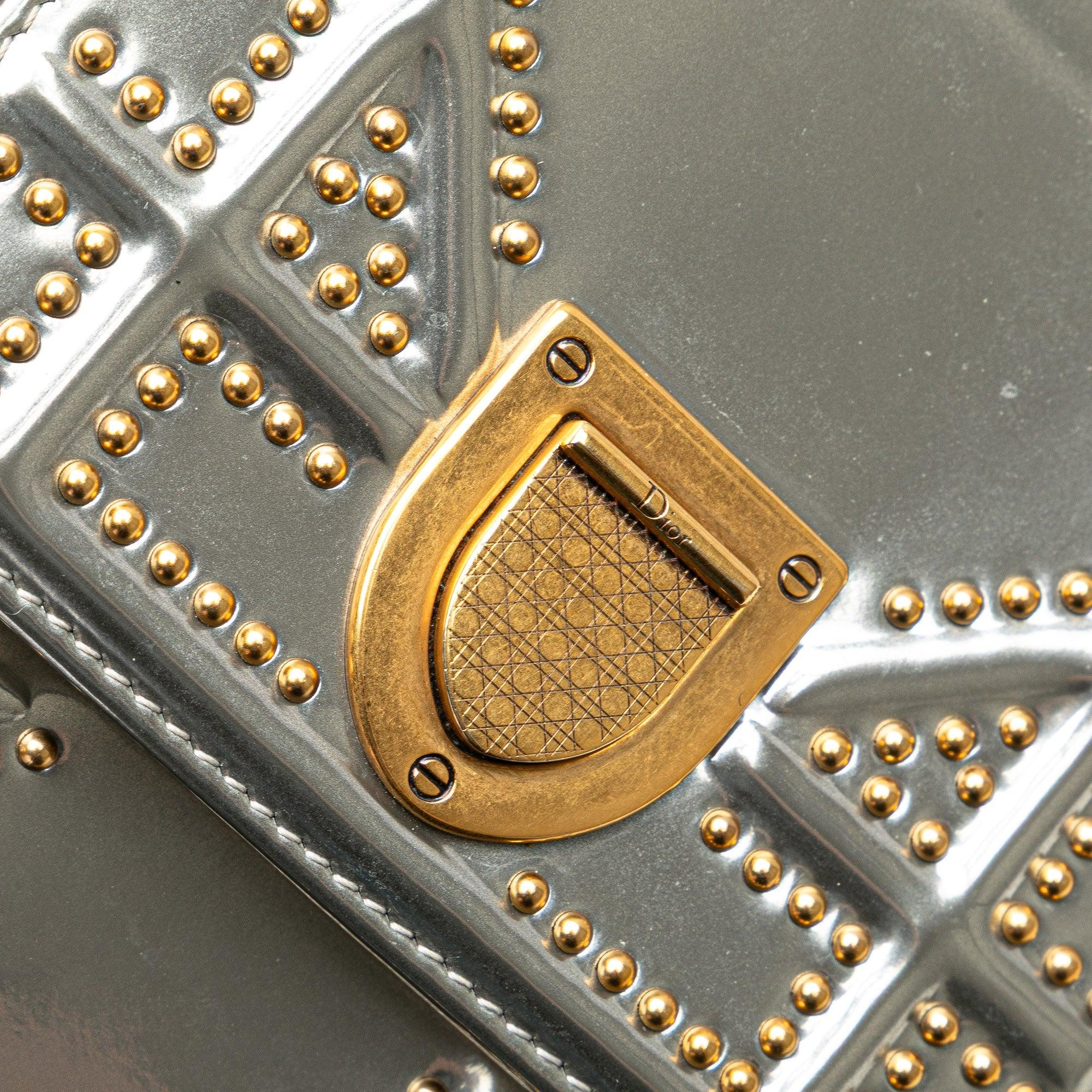 Silver Dior Metallic Studded Calfskin Vertical Diorama Crossbody Bag - Designer Revival Silver Dior Metallic Studded Calfskin Vertical Diorama Crossbody Bag - Designer Revival