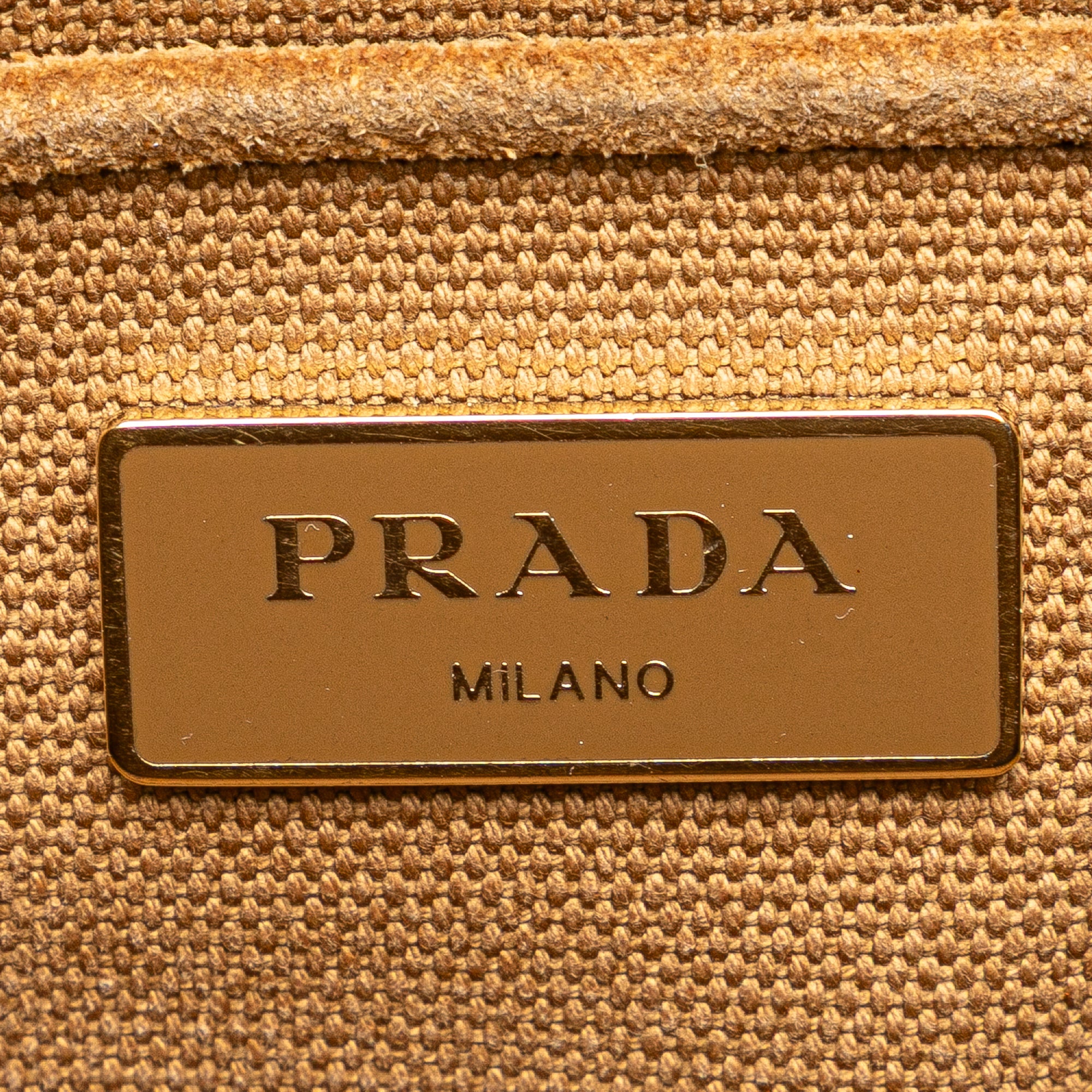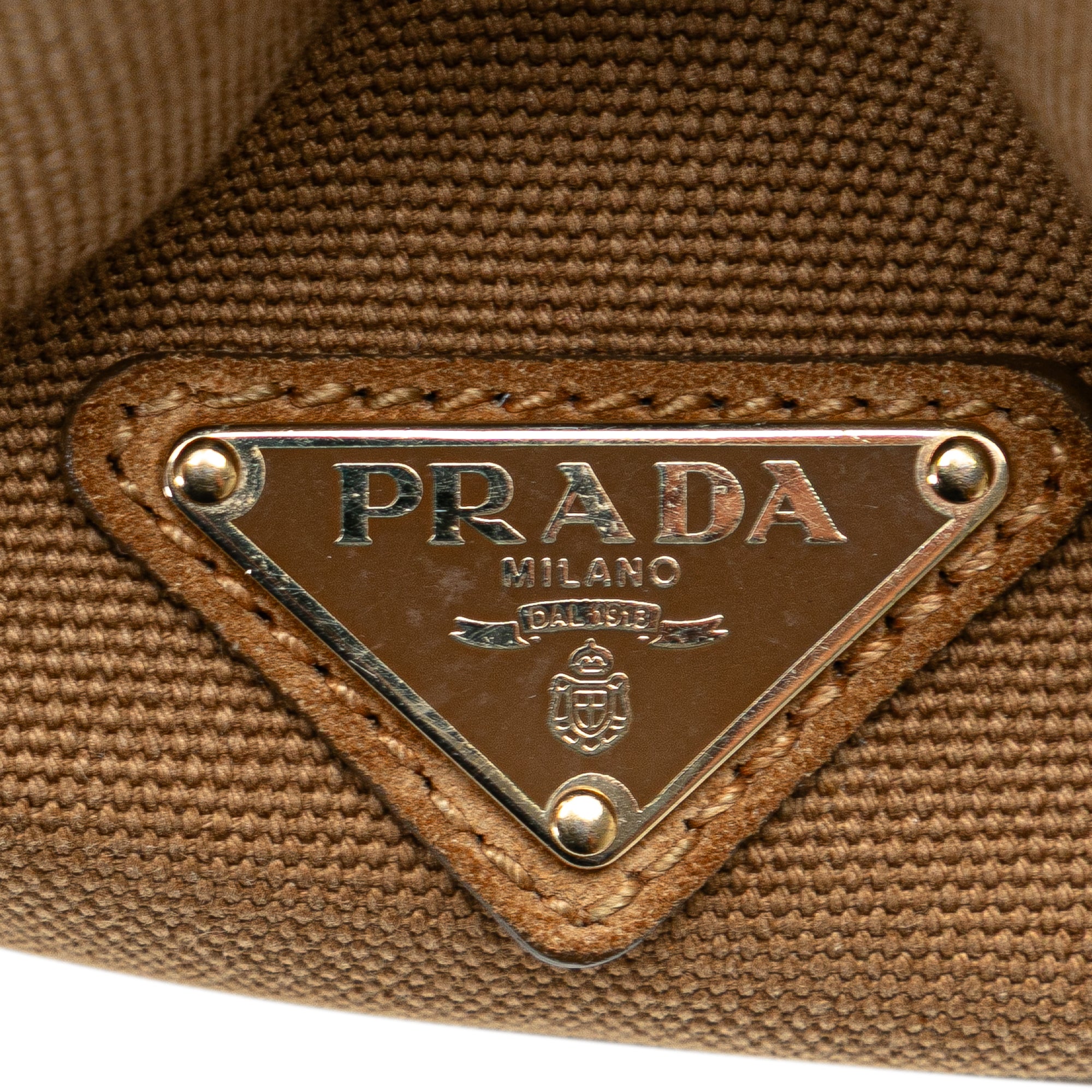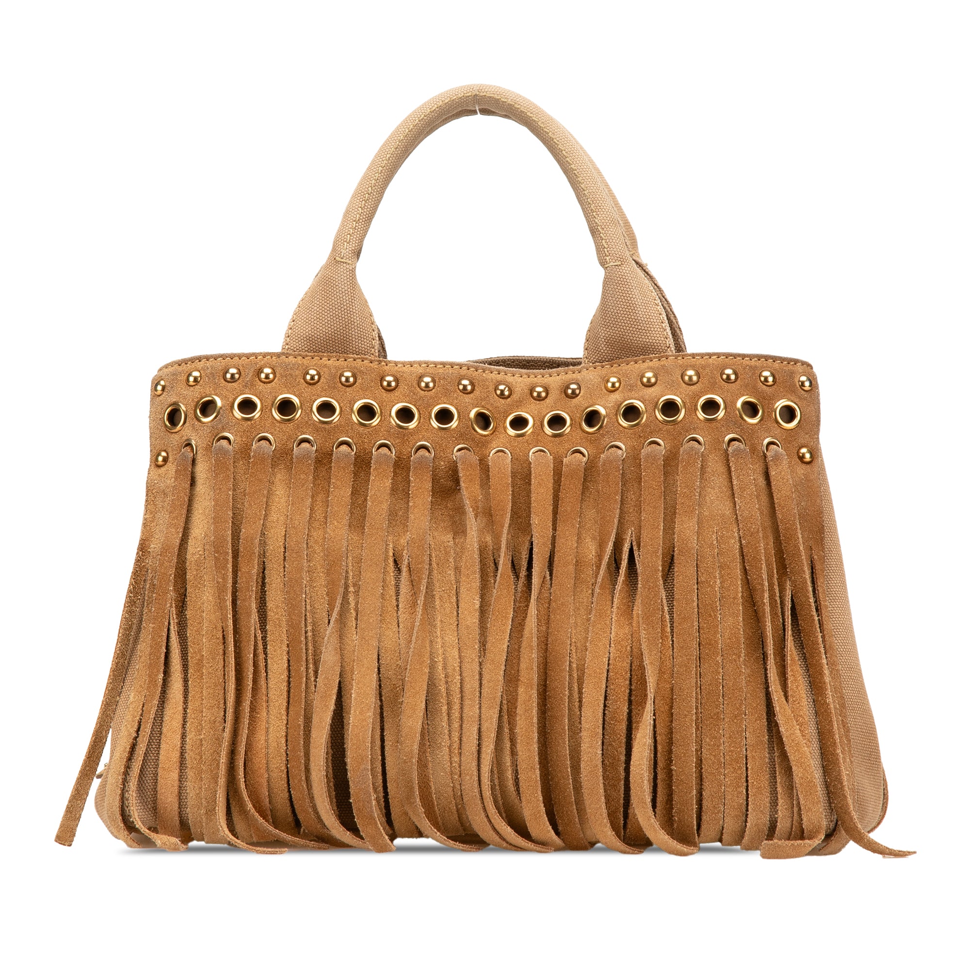 Tan Prada Canvas and Suede Fringed Canapa Handbag
