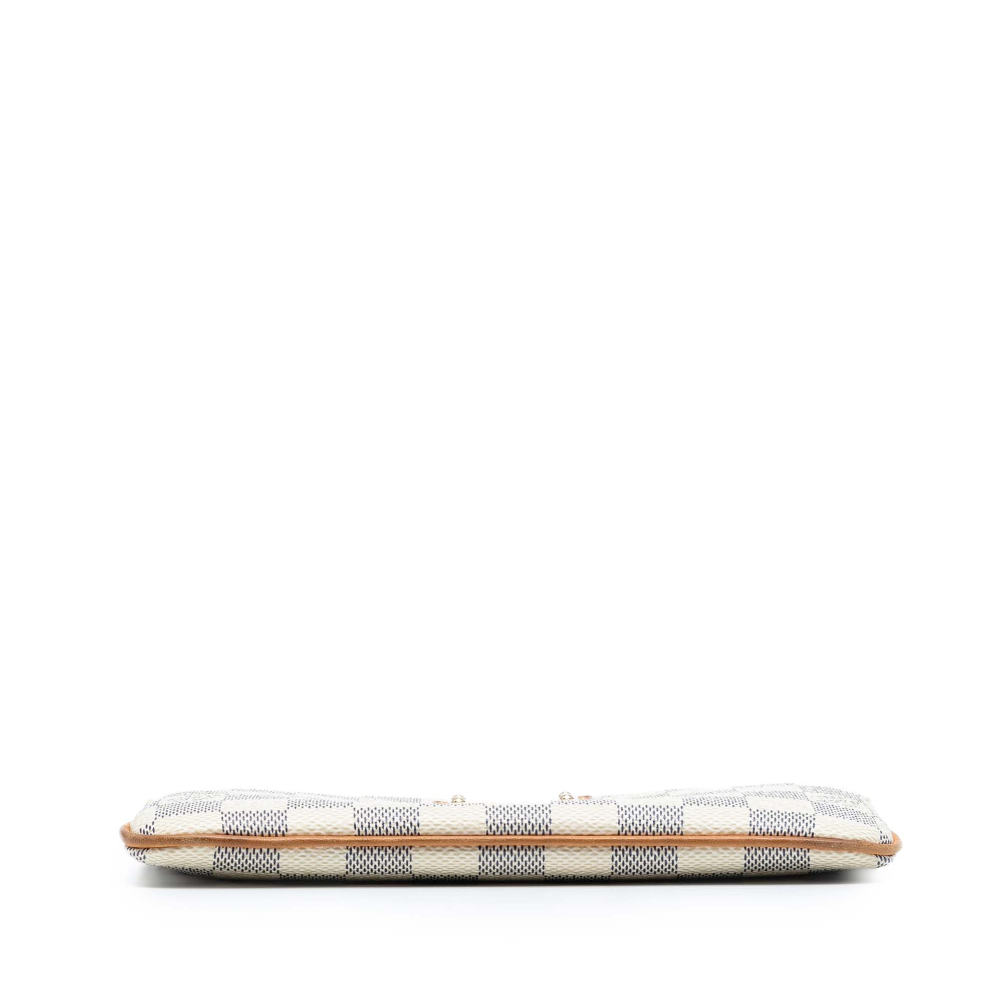 Please note this is a pre-owned item that may display signs of wear consistent with the condition listed above and shown in photos. Designer Revival guarantees this is an authentic White Louis Vuitton Damier Azur Pochette Milla MM Handbag or 100% of your money back. Learn more about our authentication process.