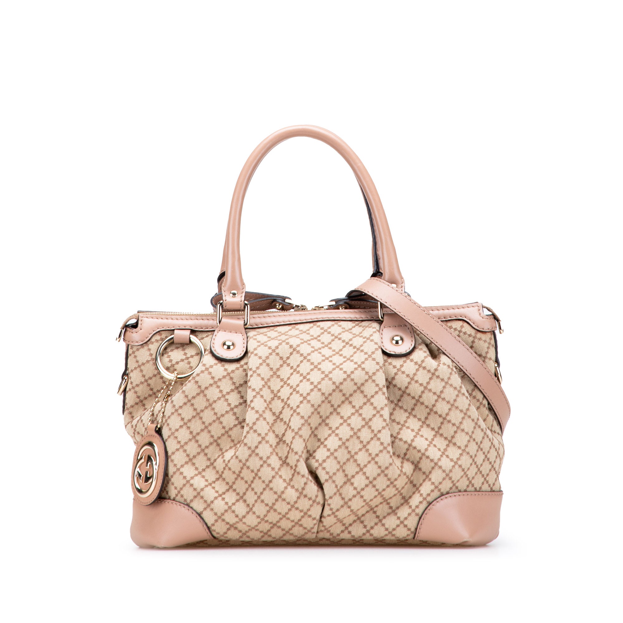 Brown Gucci Diamante Canvas Sukey Satchel - Designer Revival Brown Gucci Diamante Canvas Sukey Satchel - Designer Revival