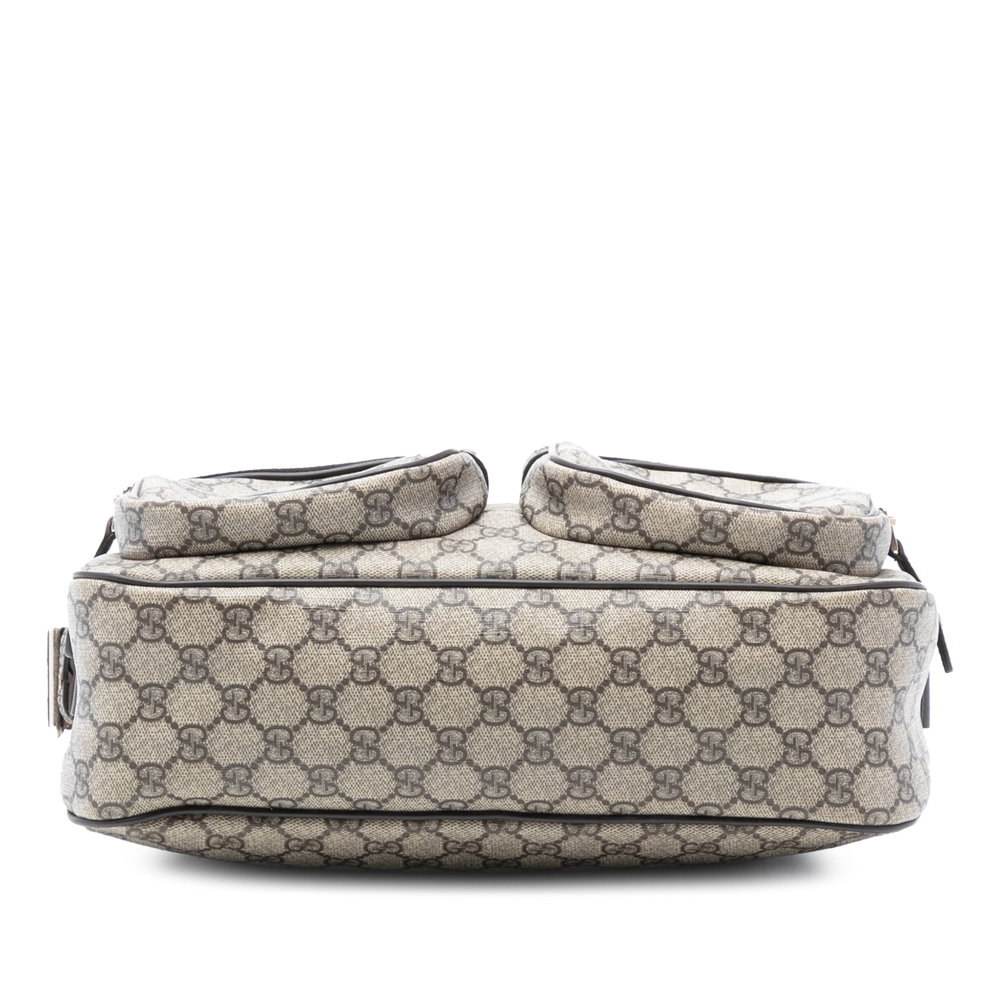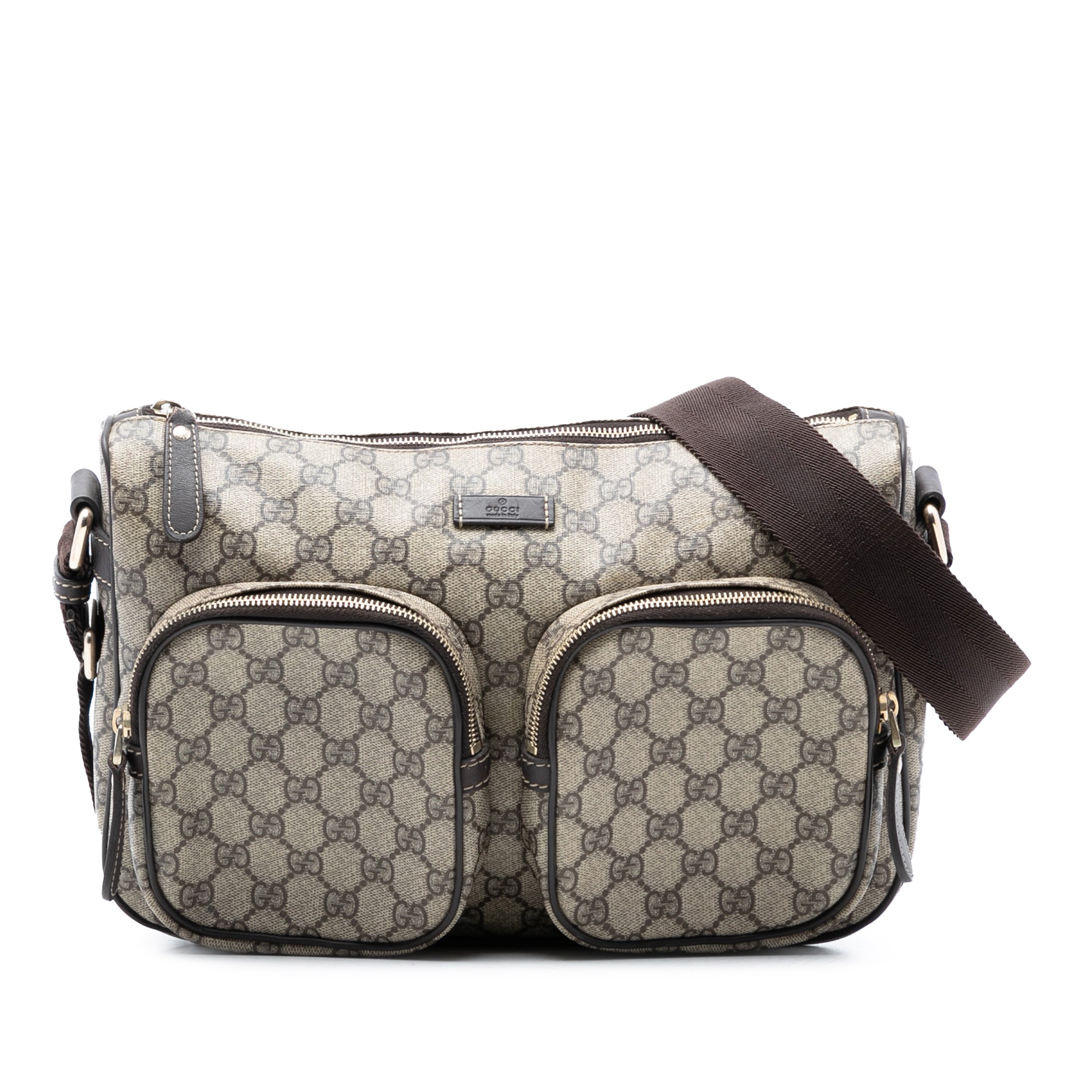Brown Gucci GG Supreme Double Pocket Crossbody