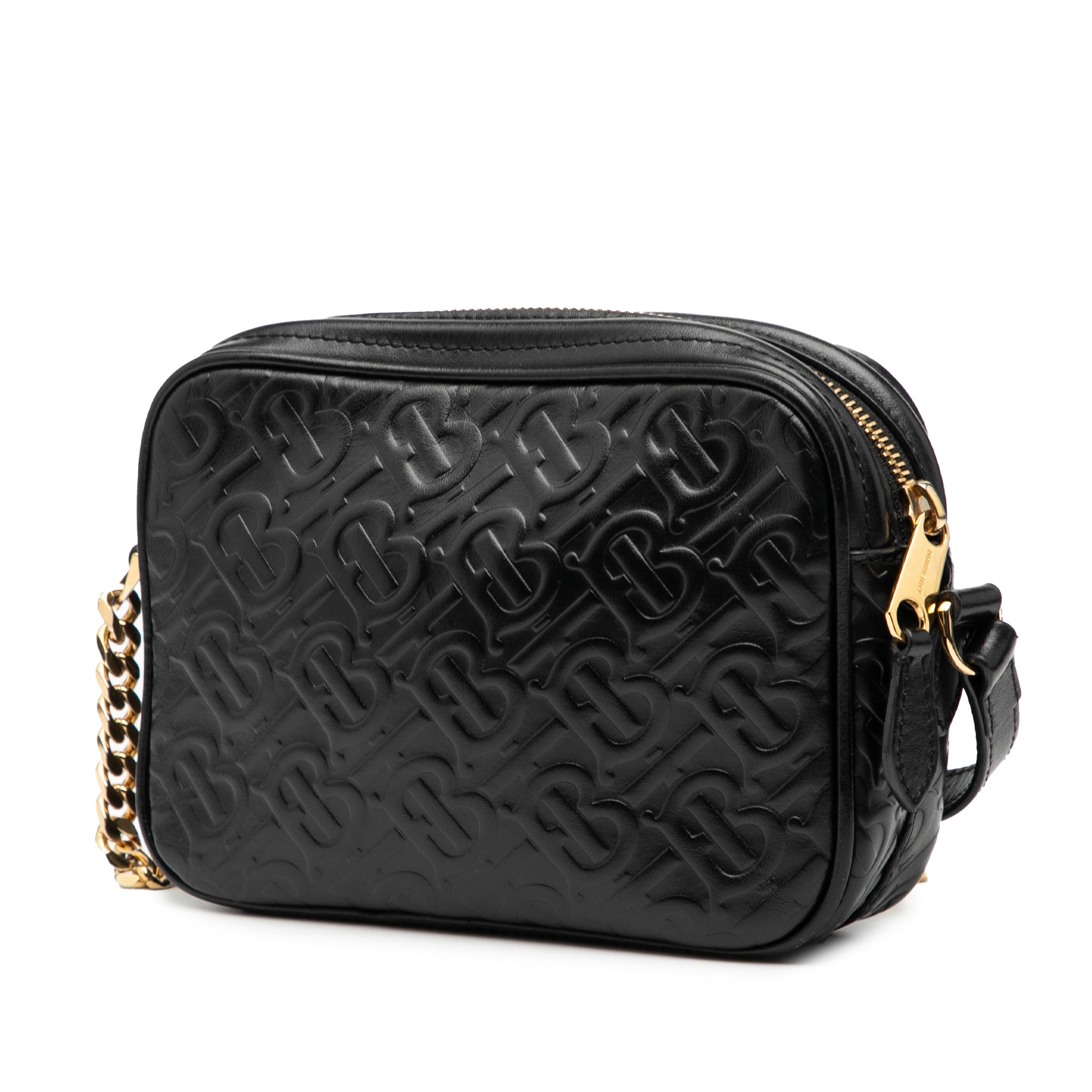 Black Burberry Embossed Calfskin TB Monogram Camera Chain Crossbody