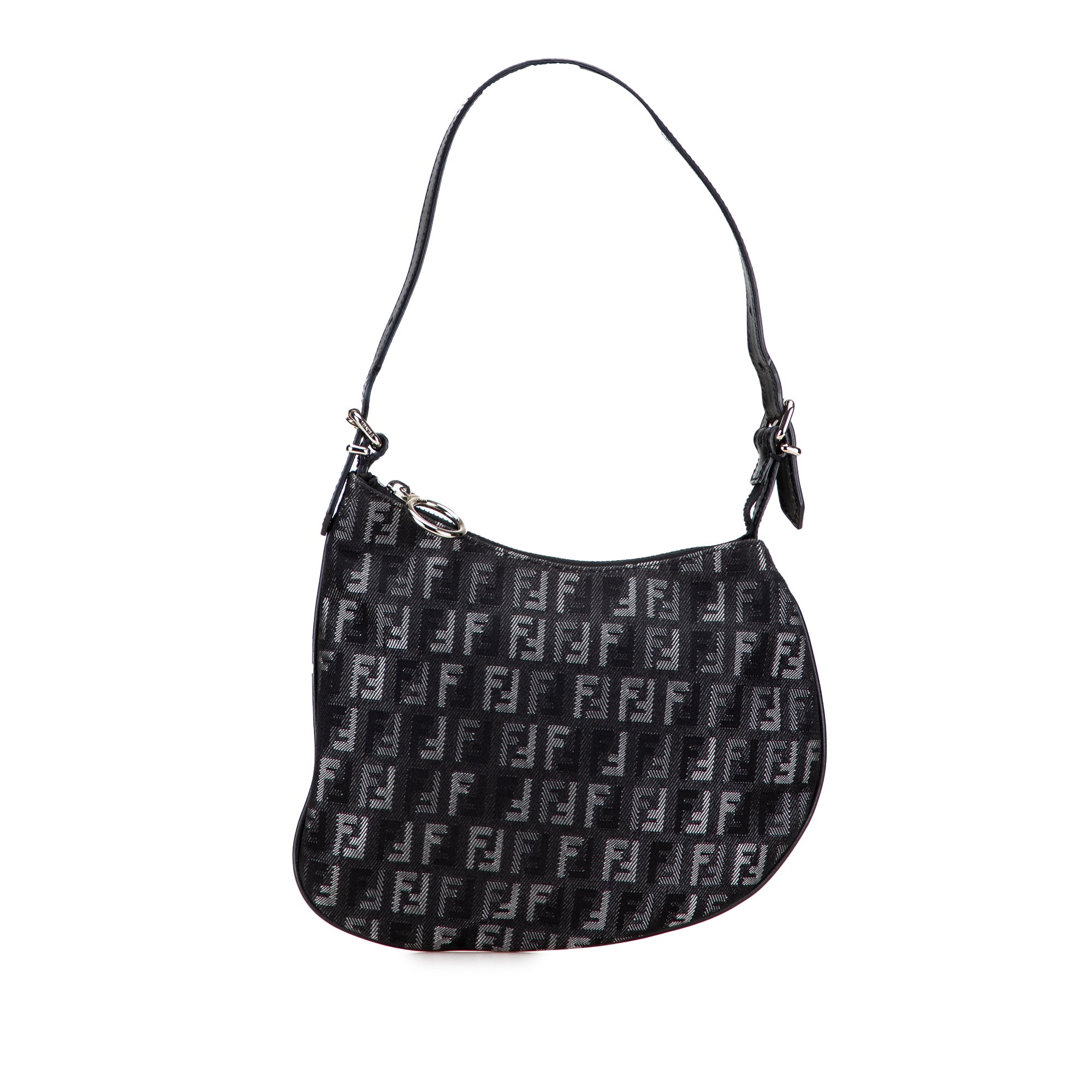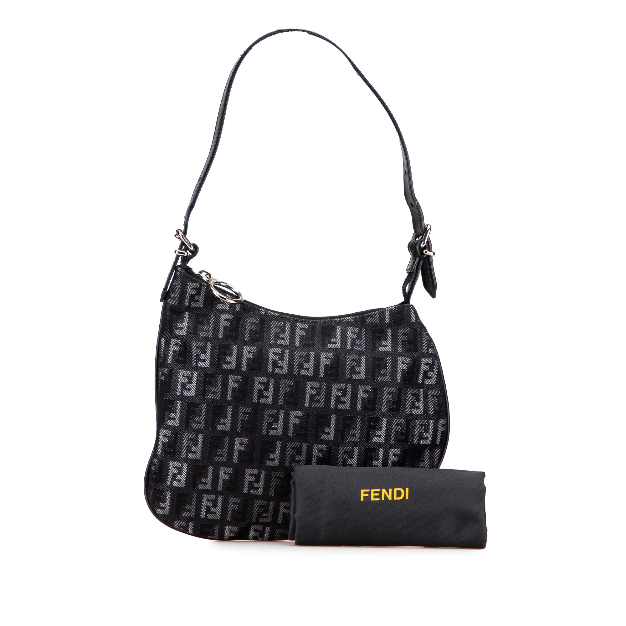 Black Fendi Zucchino Denim Oyster Shoulder Bag