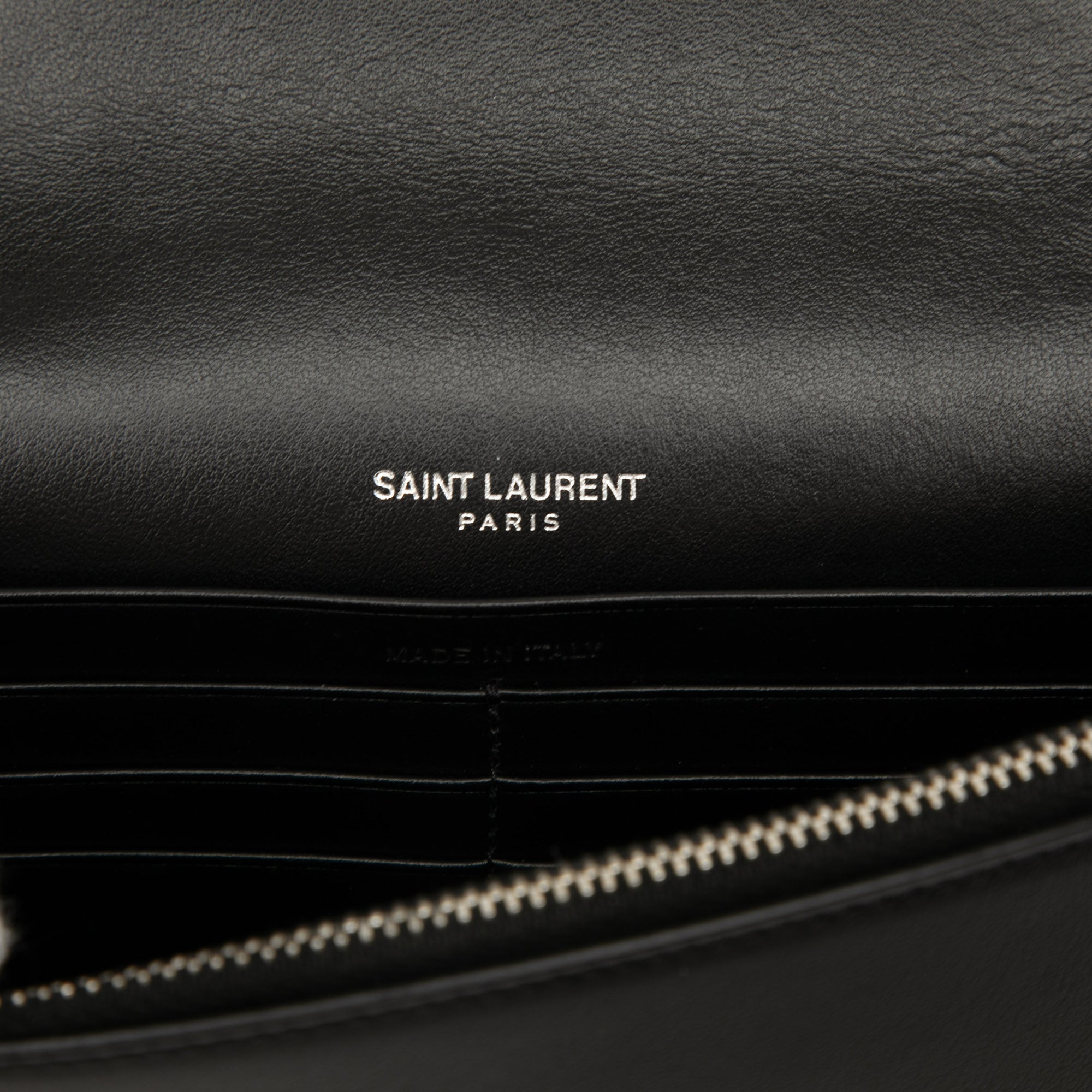 Black Saint Laurent Calfskin Star Print Classic Monogram Kate Tassel Wallet on Chain Crossbody Bag