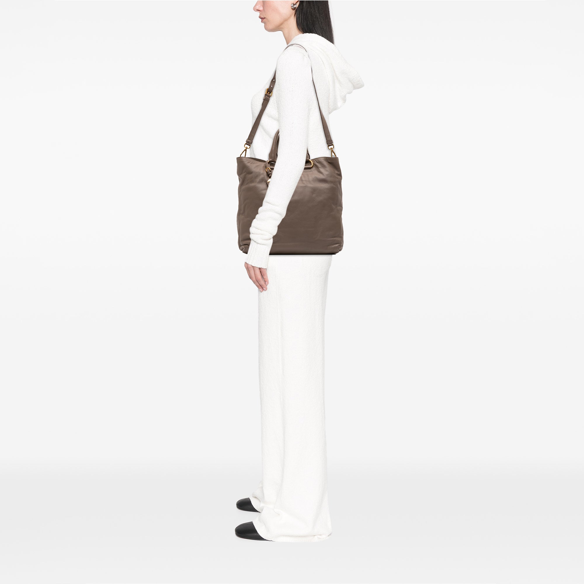 Gray Prada Soft Calf Open Convertible Tote Satchel