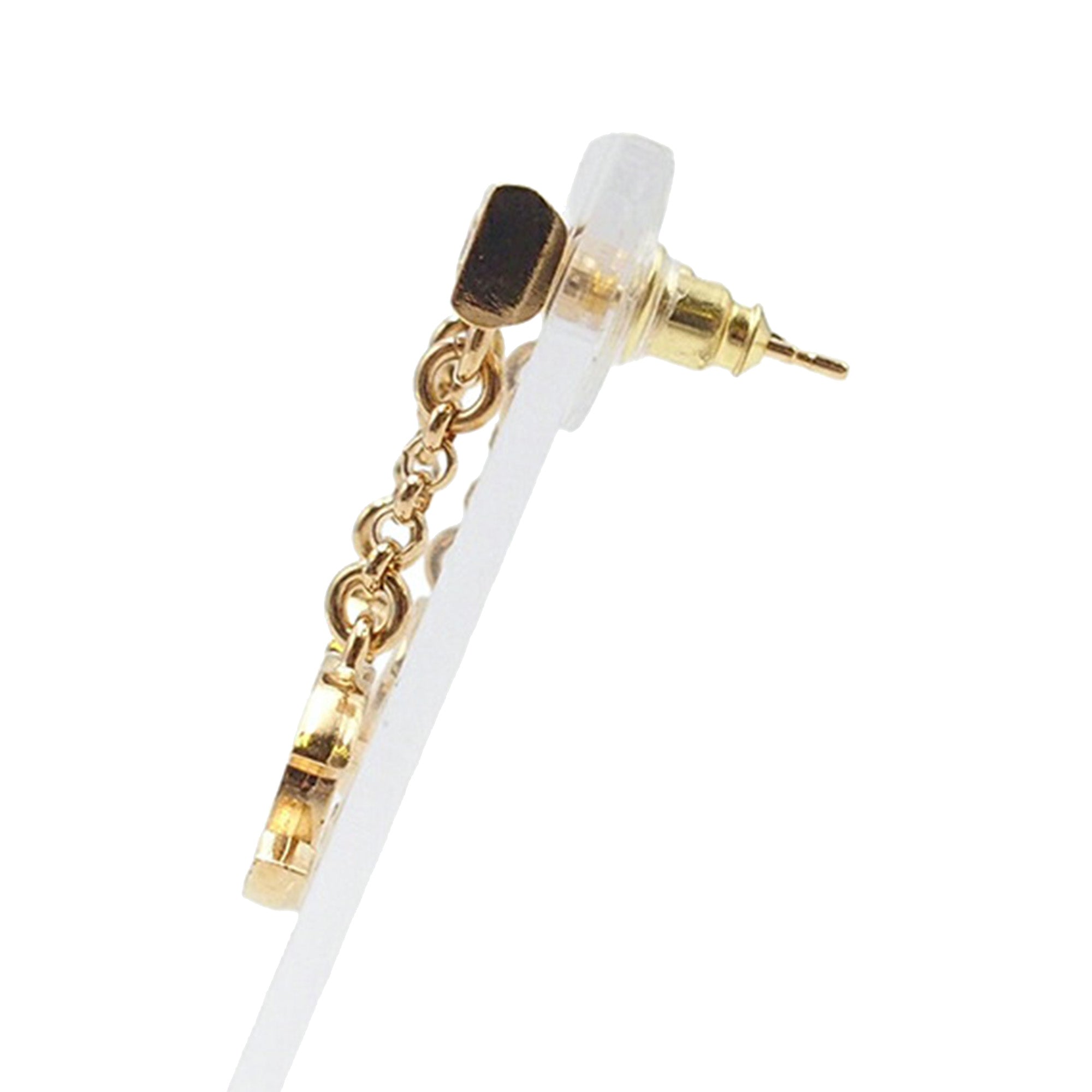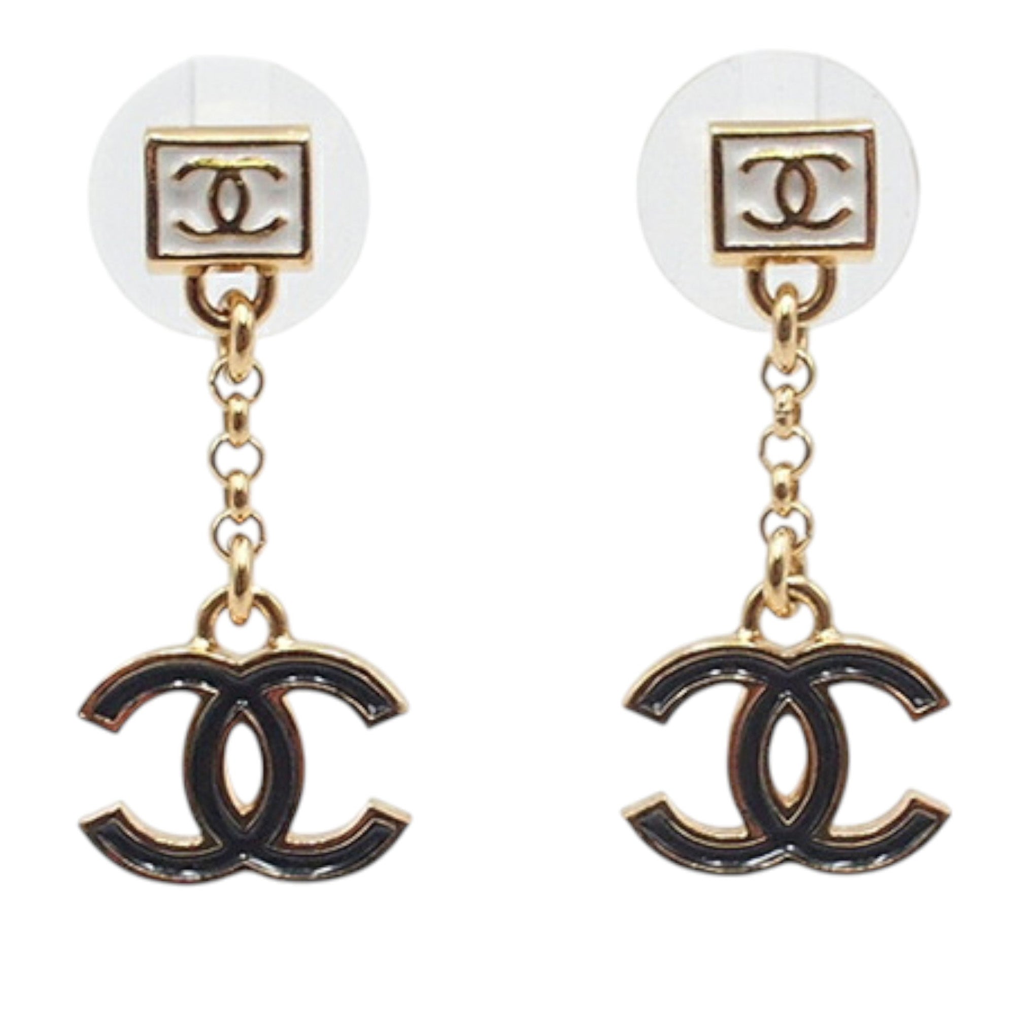 Gold Chanel CC Gold Plated Enamel Drop Push Back Earrings