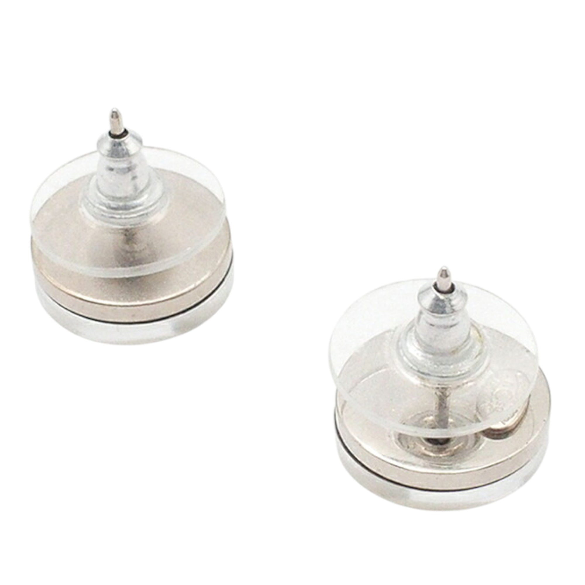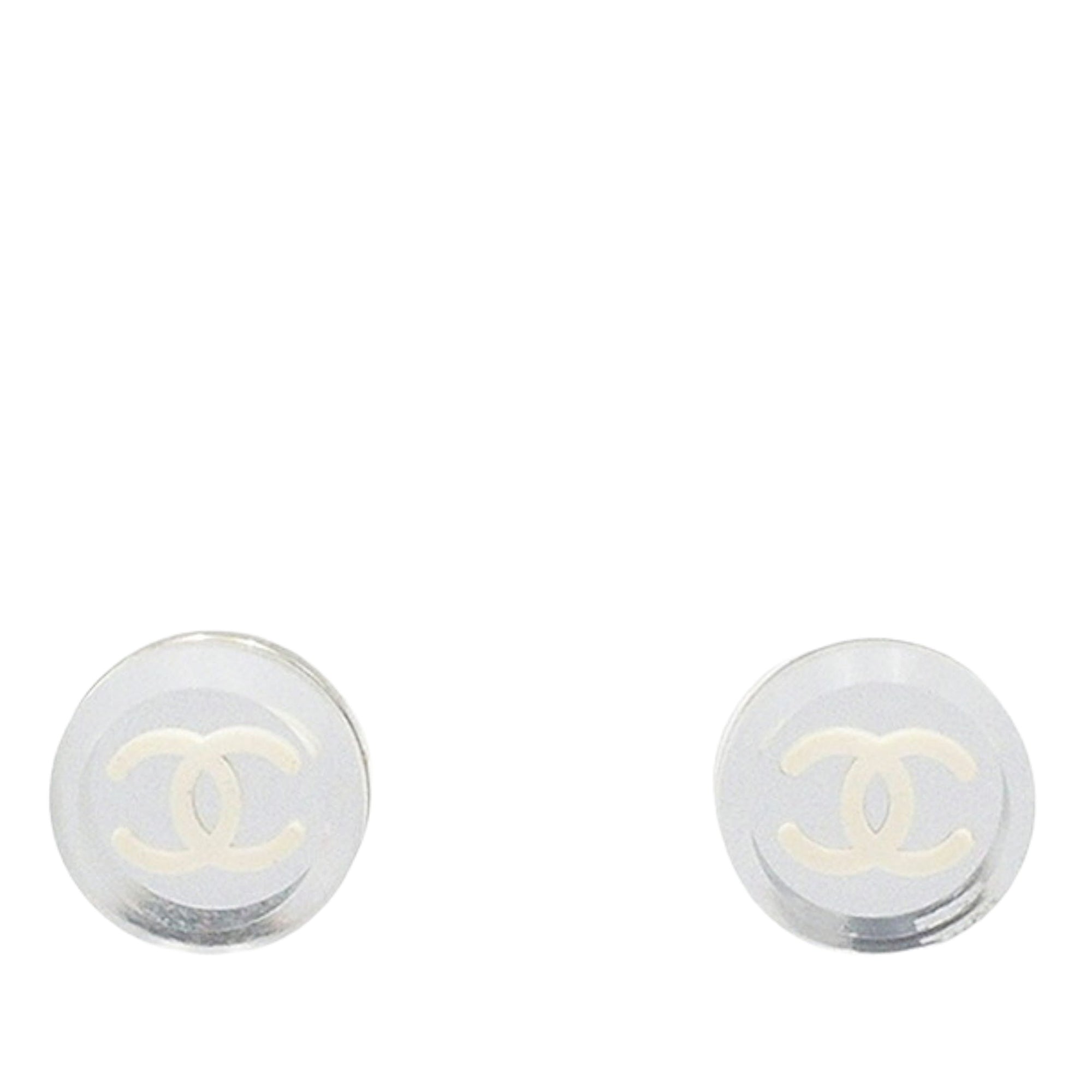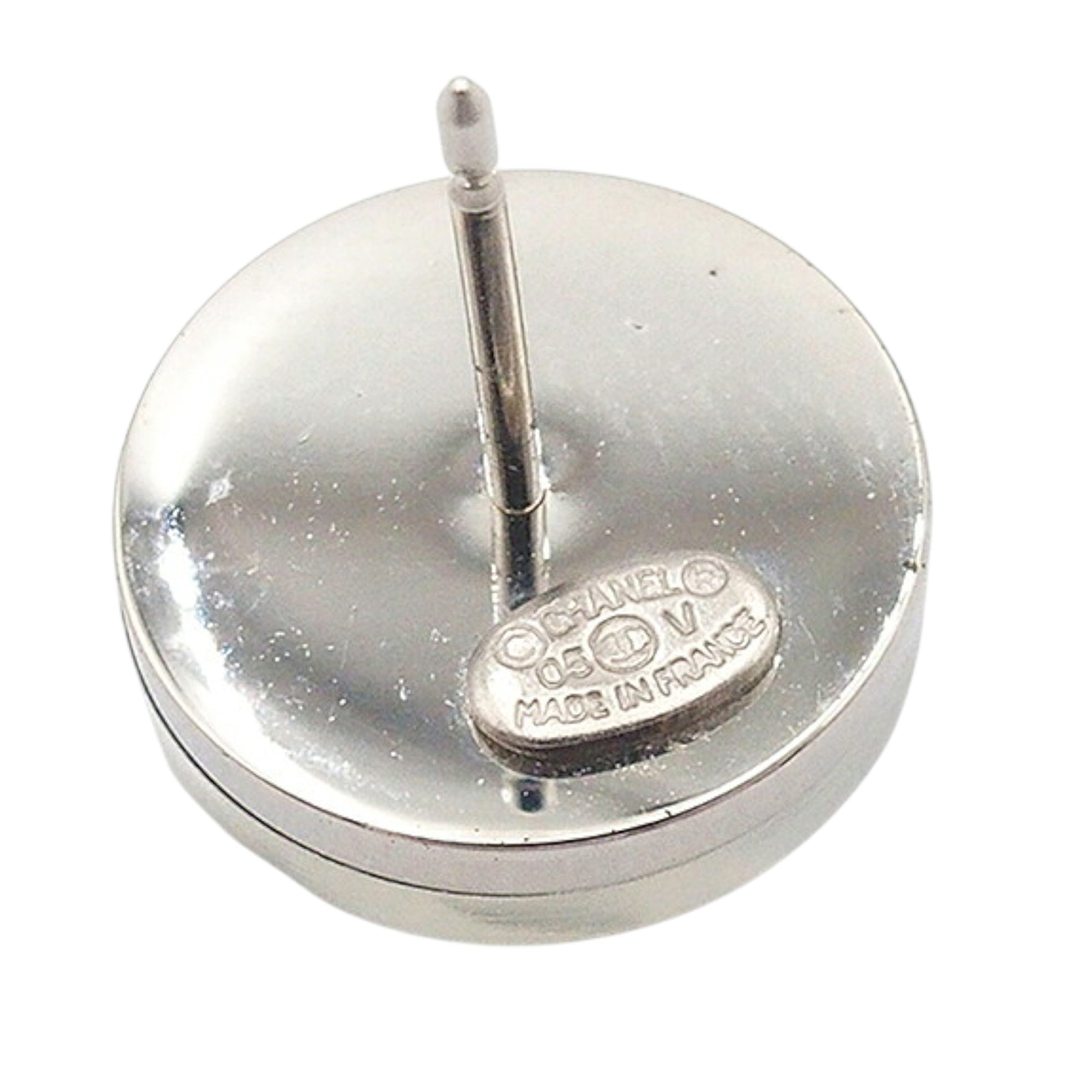 Silver Chanel Resin and Silver Plated CC Round Push Back Earrings