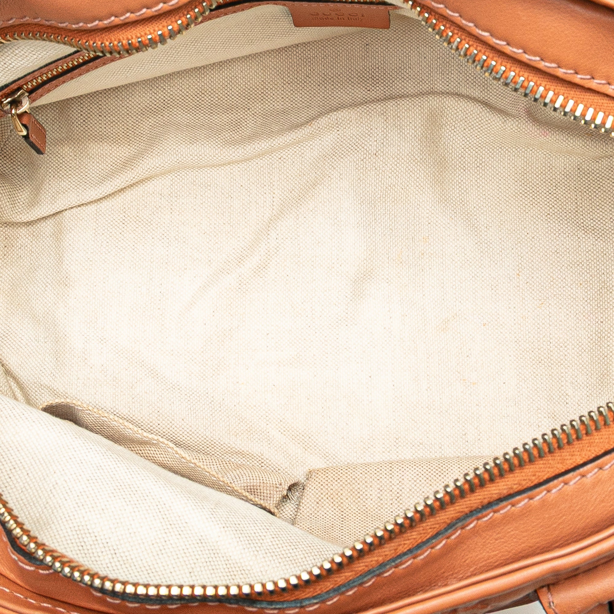 Please note this is a pre-owned item that may display signs of wear consistent with the condition listed above and shown in photos. Designer Revival guarantees this is an authentic Orange Gucci Guccissima Heart Bit Satchel or 100% of your money back. Learn more about our authentication process.