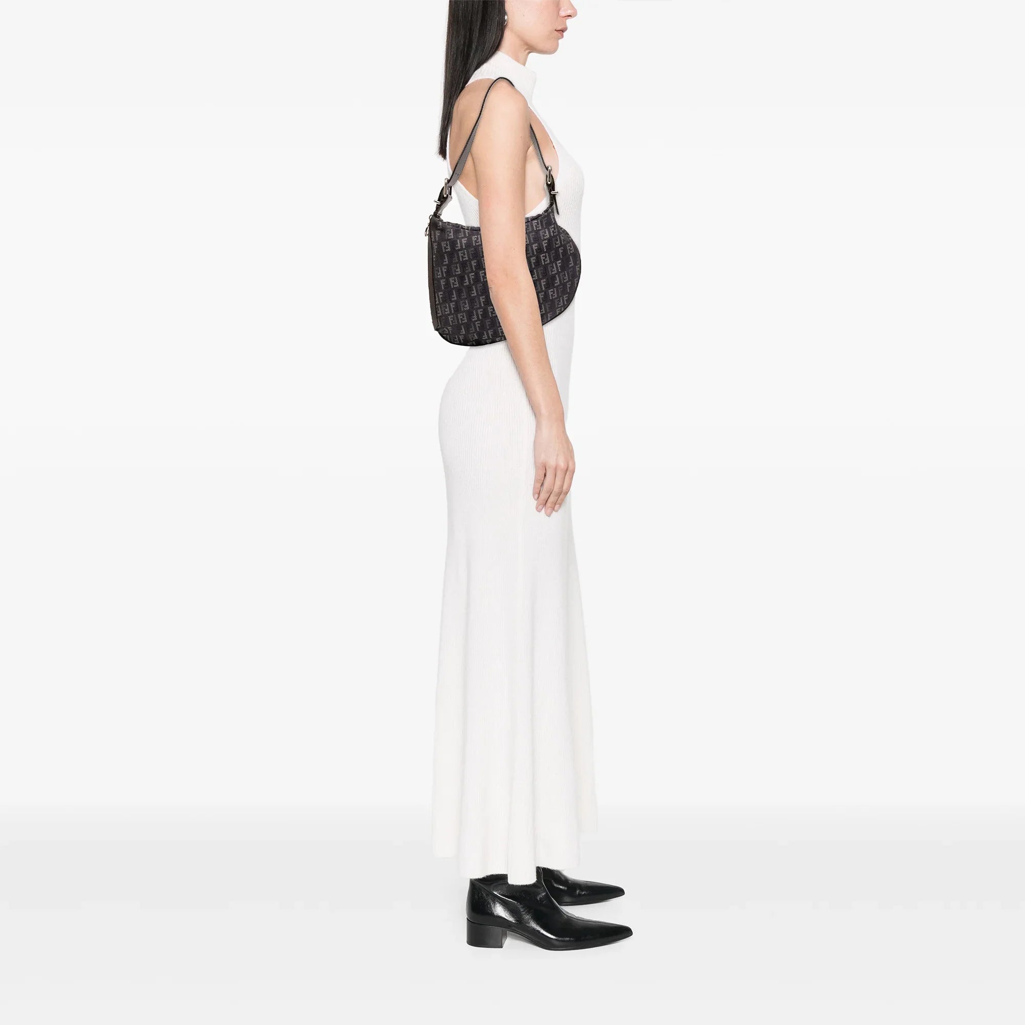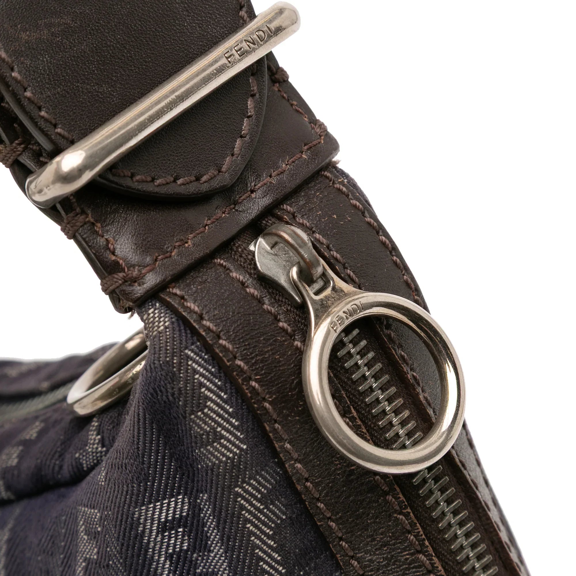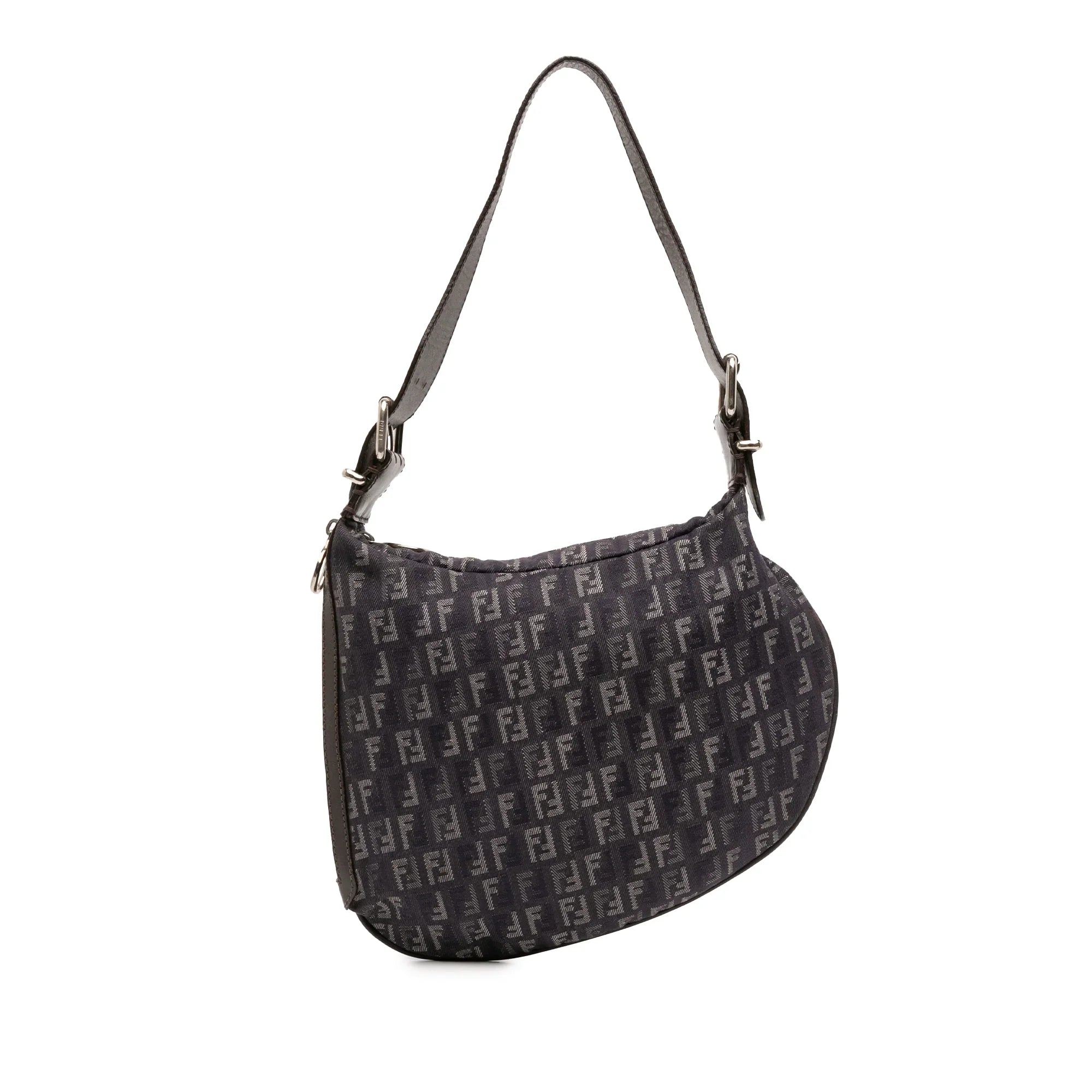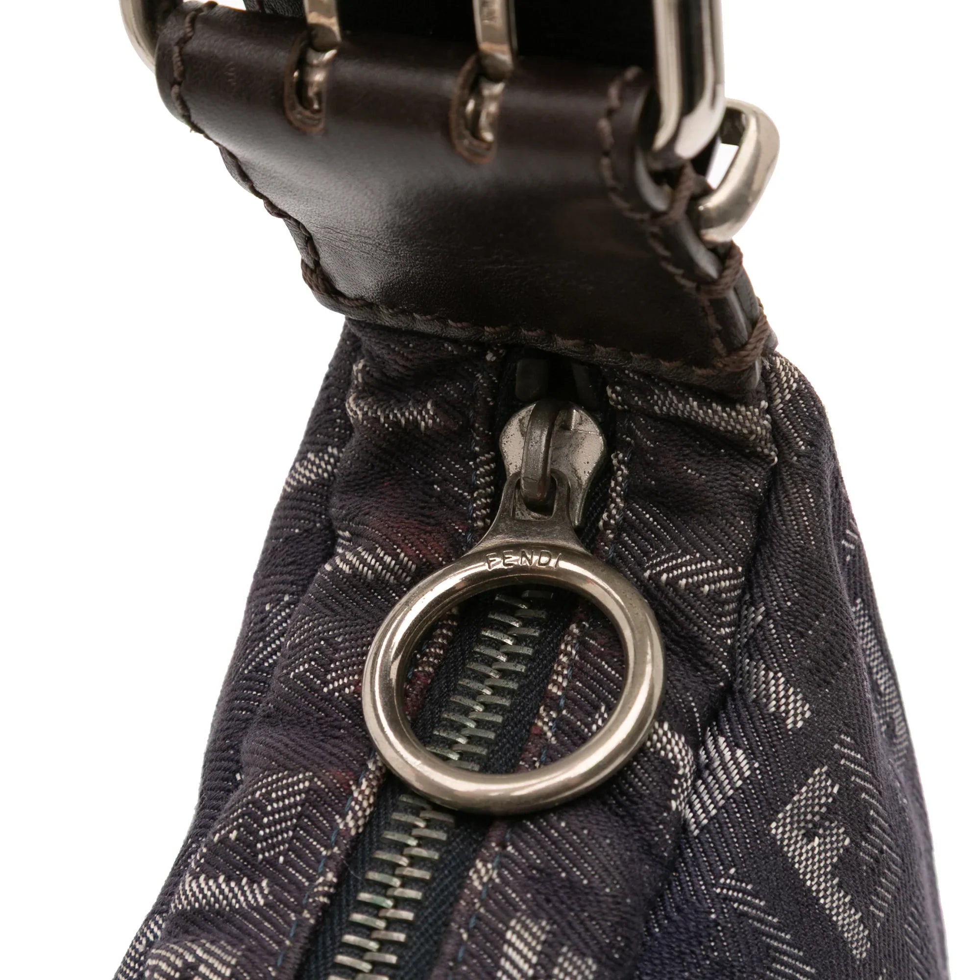 Black Fendi Zucchino Denim Oyster Shoulder Bag