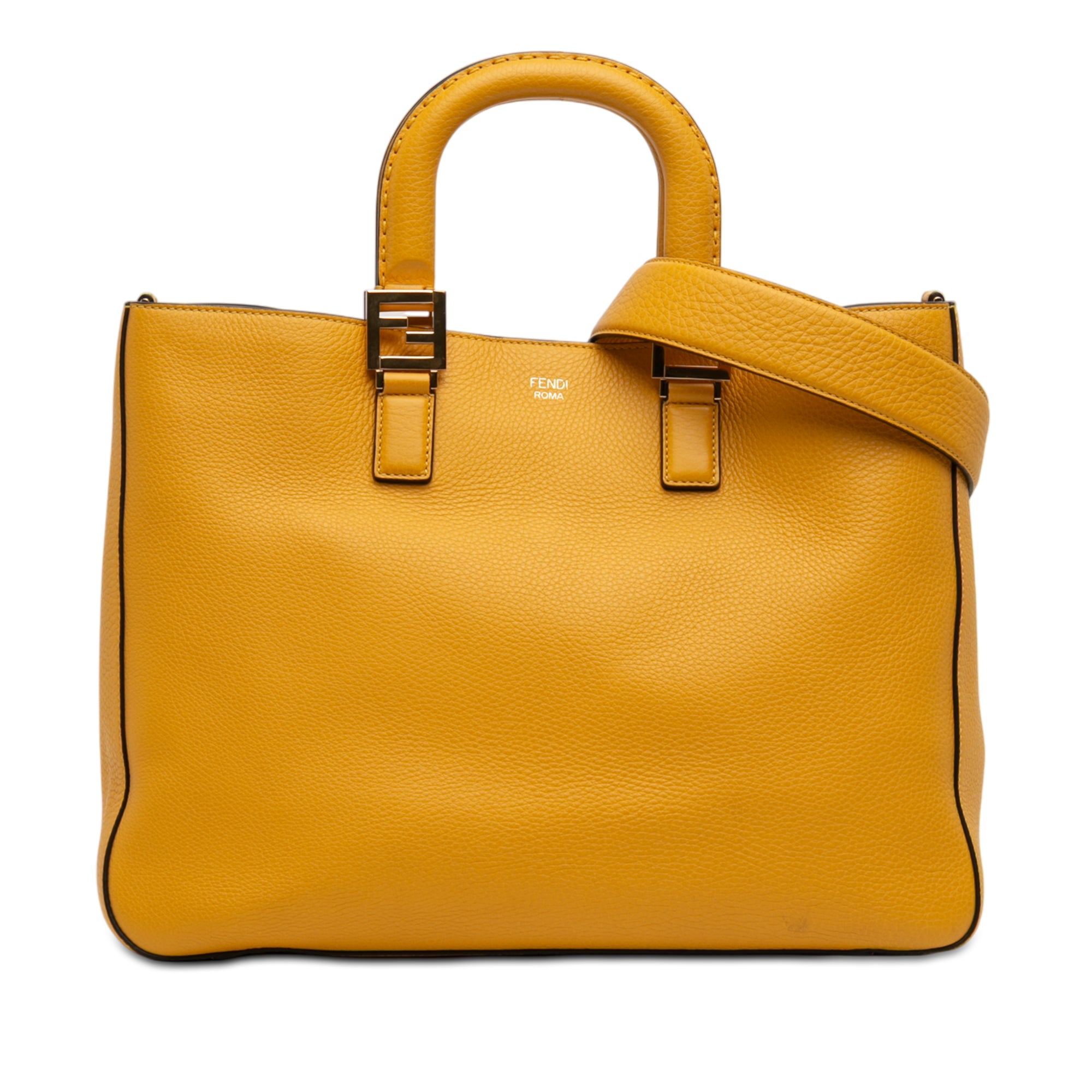 Yellow Fendi Medium Leather Selleria FF Tote Satchel