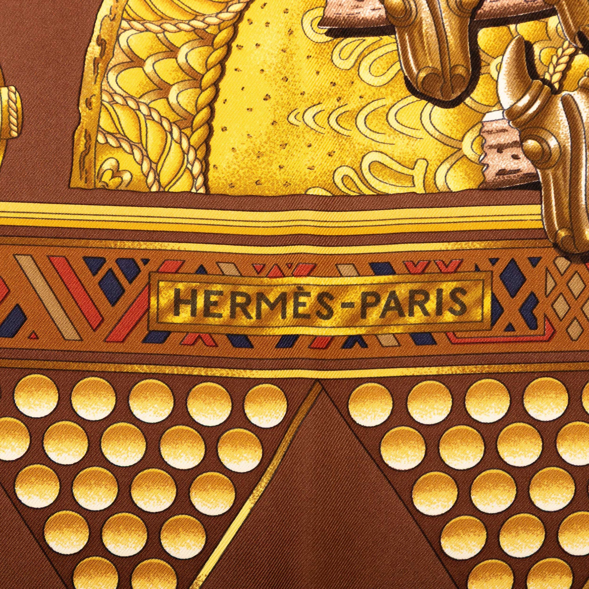 Brown Hermès L'Or des Chefs Silk Scarf 90 Scarves