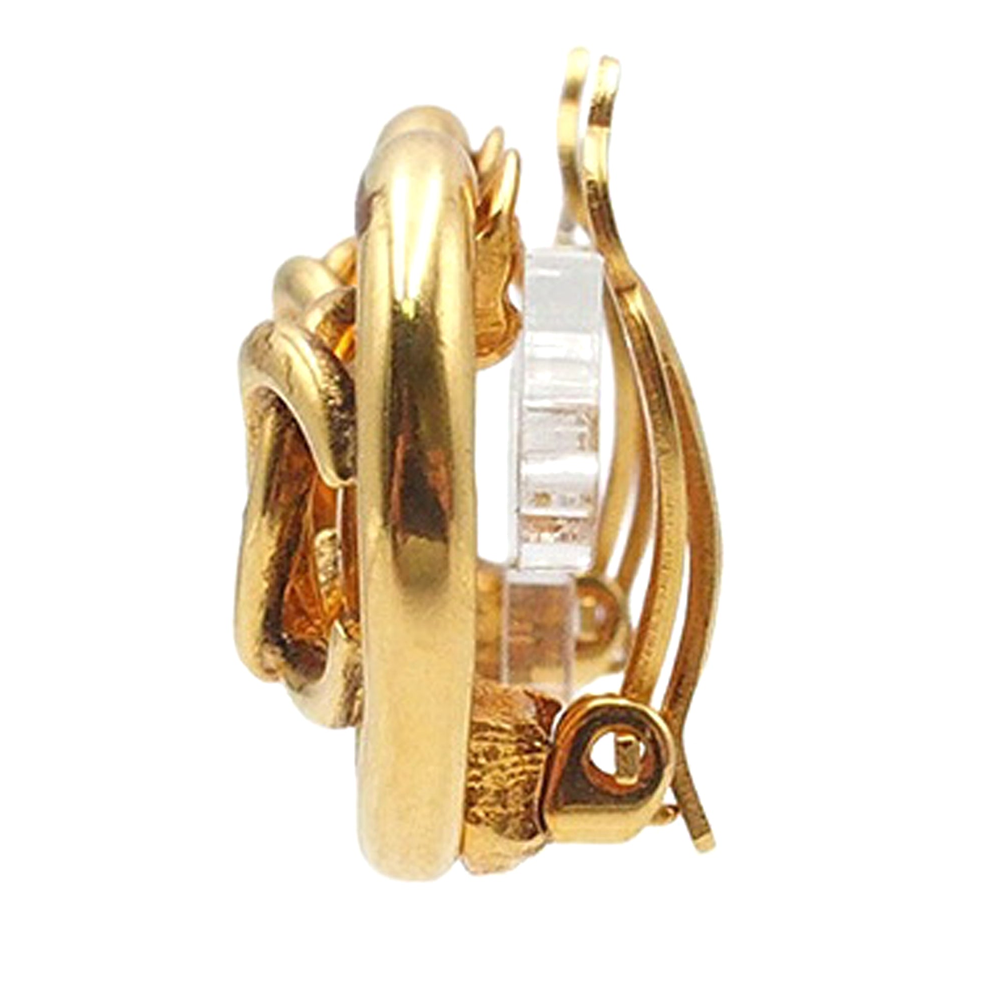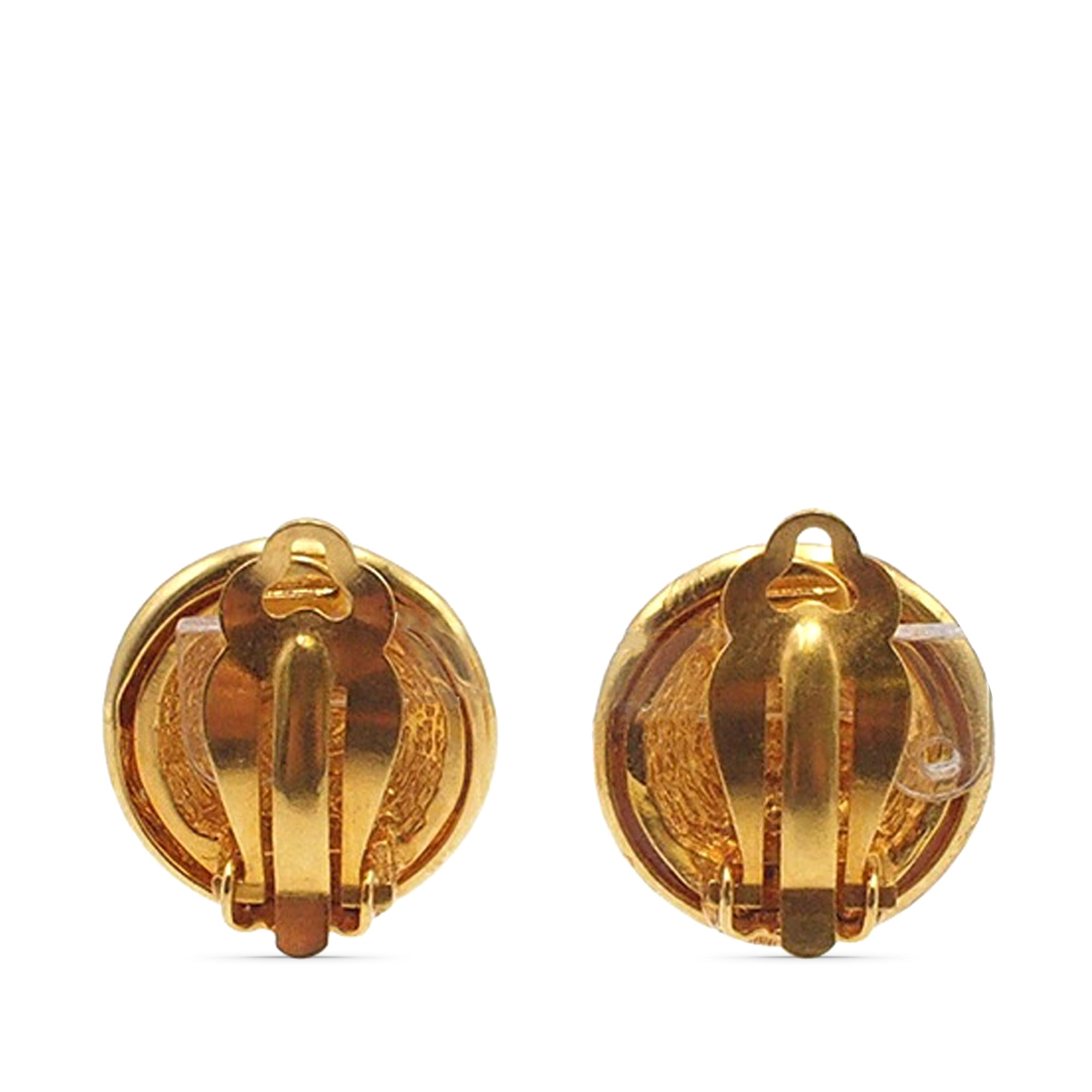 Gold Chanel CC Gold Plated Round Clip On Earrings