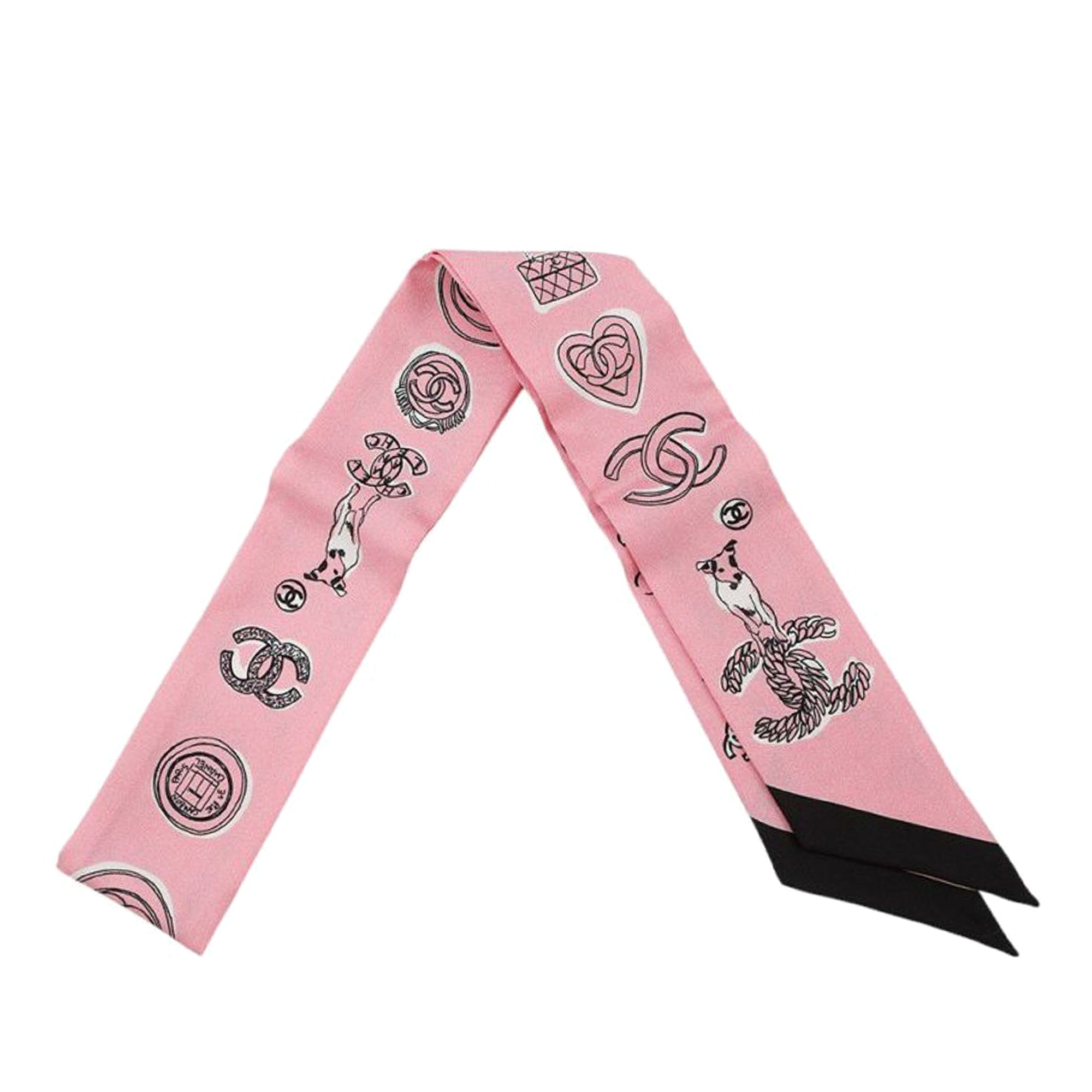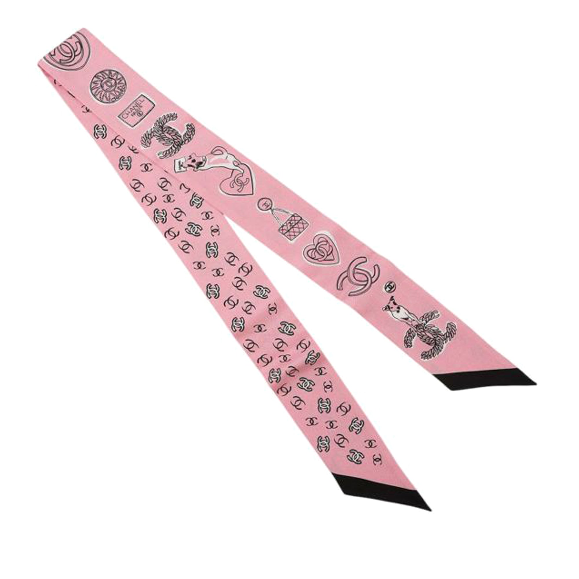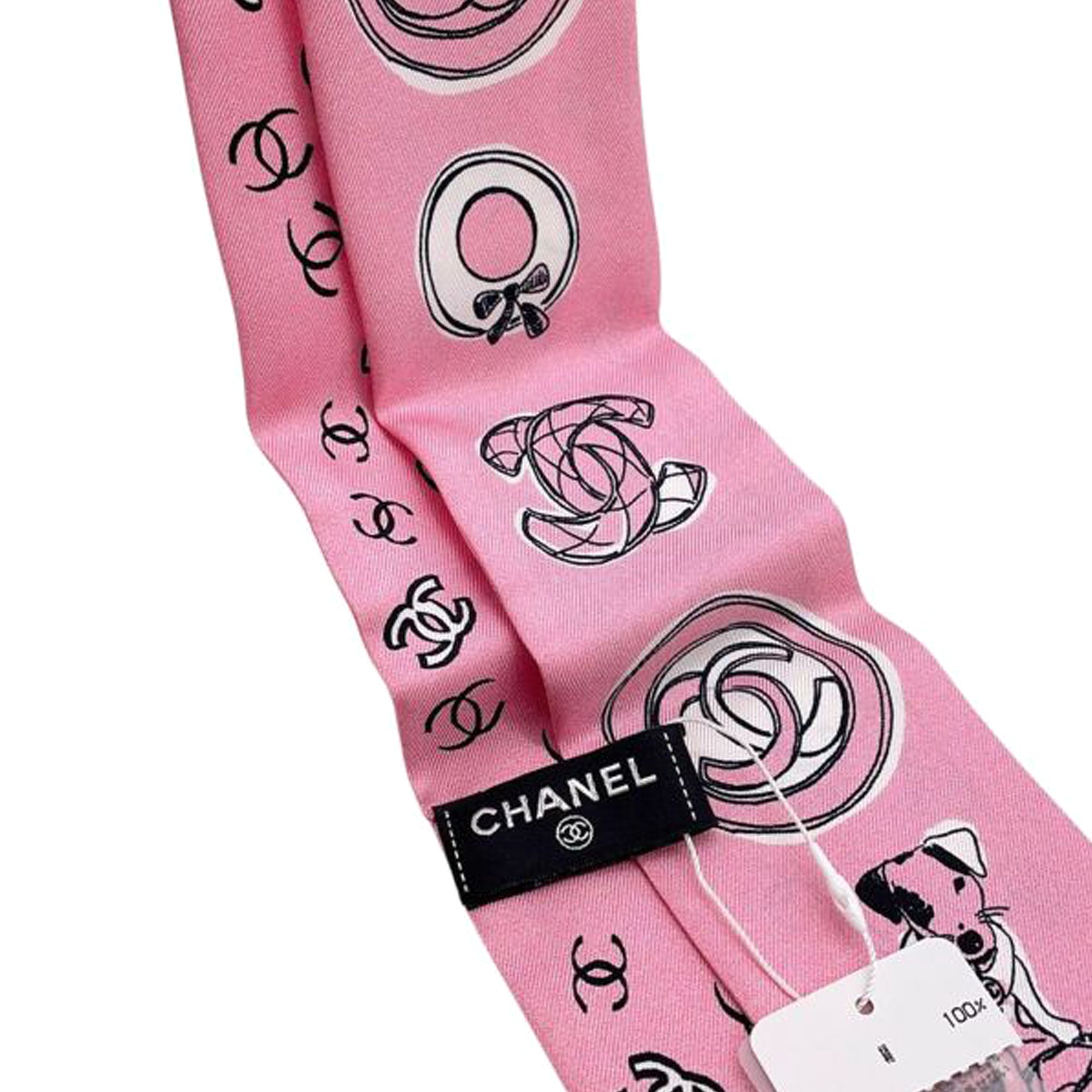 Pink Chanel CC Printed Silk Slim Bandeau Scarf Scarves