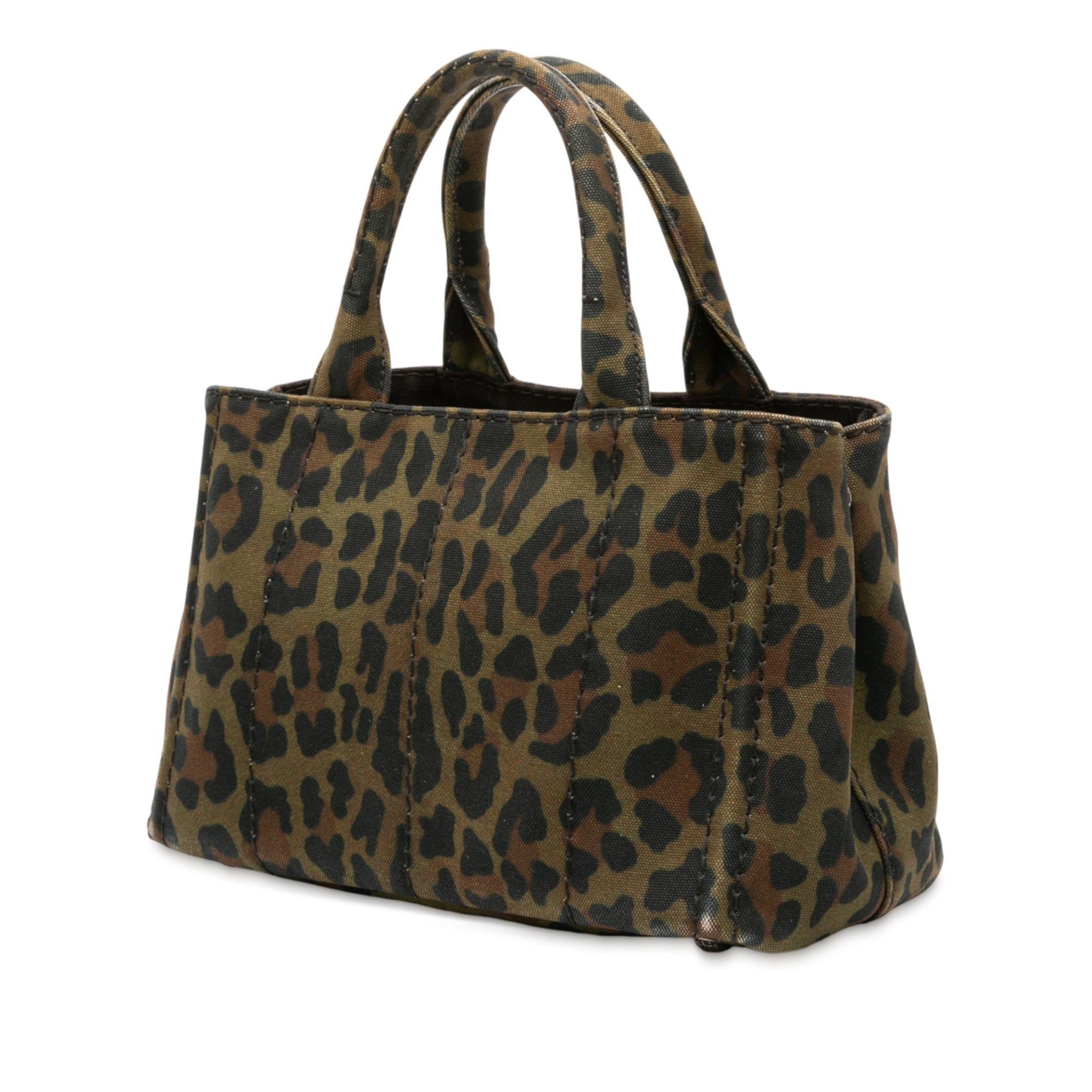 Brown Prada Small Leopard Print Canvas Canapa Satchel