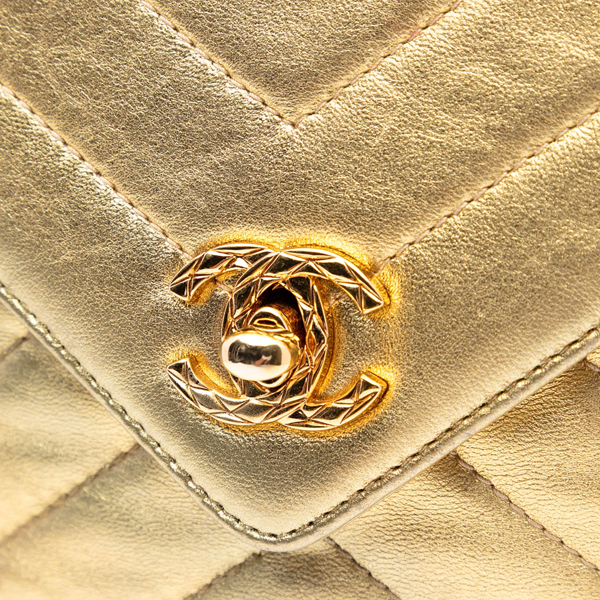 Please note this is a pre-owned item that may display signs of wear consistent with the condition listed above and shown in photos. Designer Revival guarantees this is an authentic Gold Chanel Chevron Metallic Lambskin Tassel Chain Camera Bag or 100% of your money back. Learn more about our authentication process.