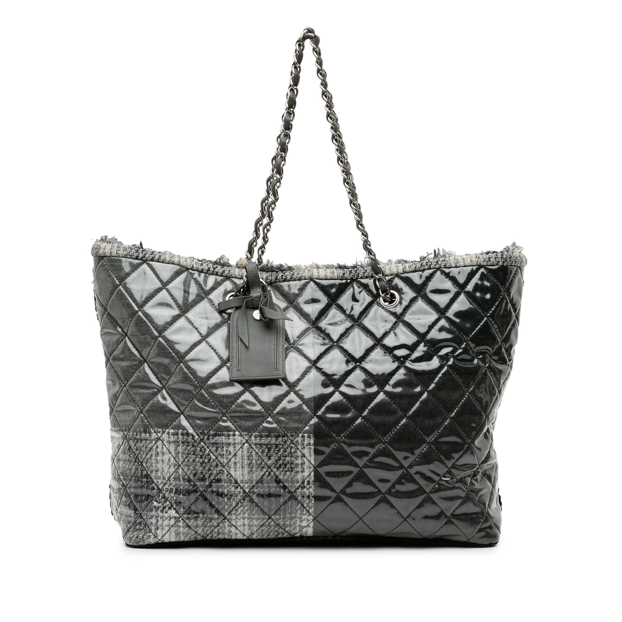 Gray Chanel Large Quilted Tweed and Vinyl Funny Patchwork Tote