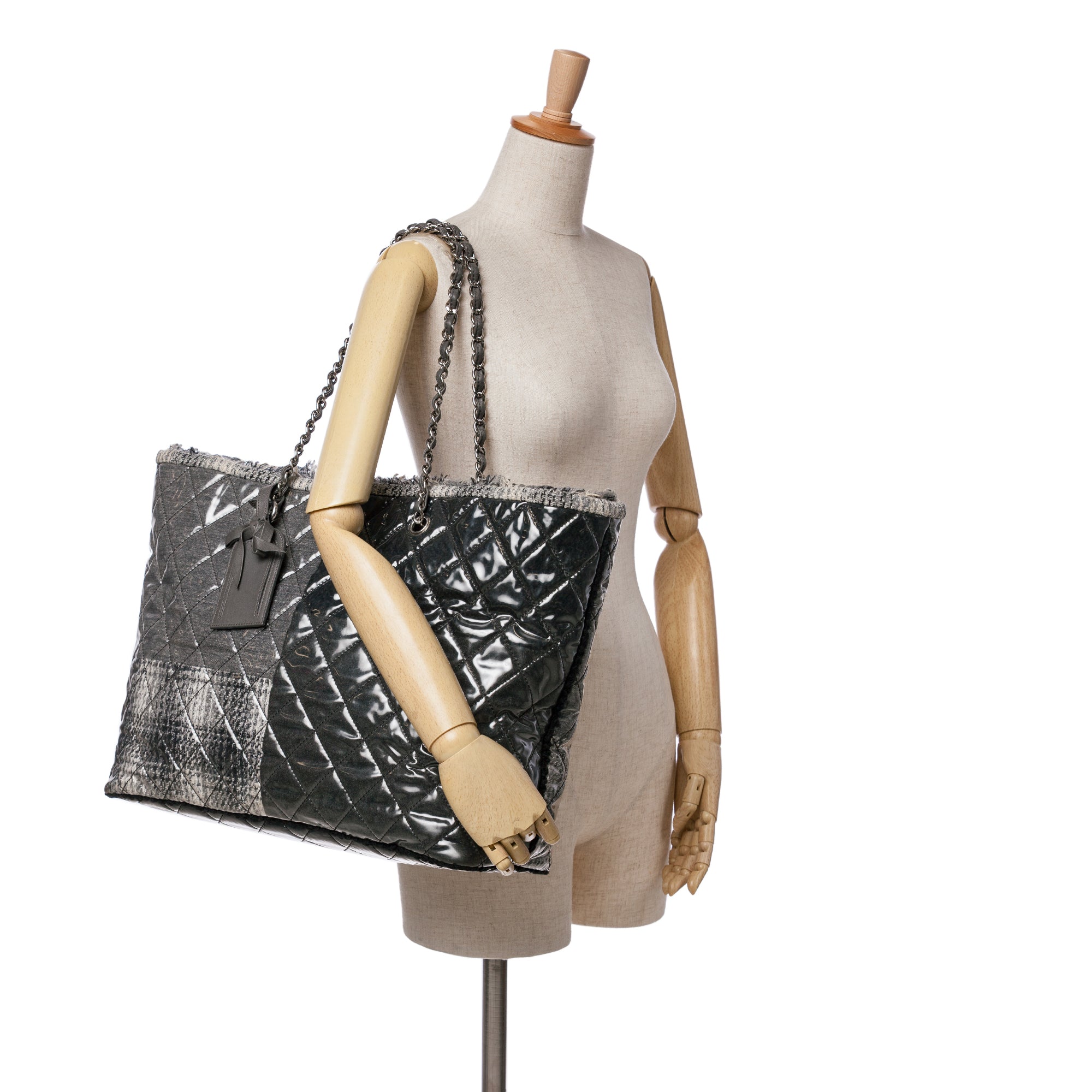 Please note this is a pre-owned item that may display signs of wear consistent with the condition listed above and shown in photos. Designer Revival guarantees this is an authentic Gray Chanel Large Quilted Tweed and Vinyl Funny Patchwork Tote or 100% of your money back. Learn more about our authentication process.