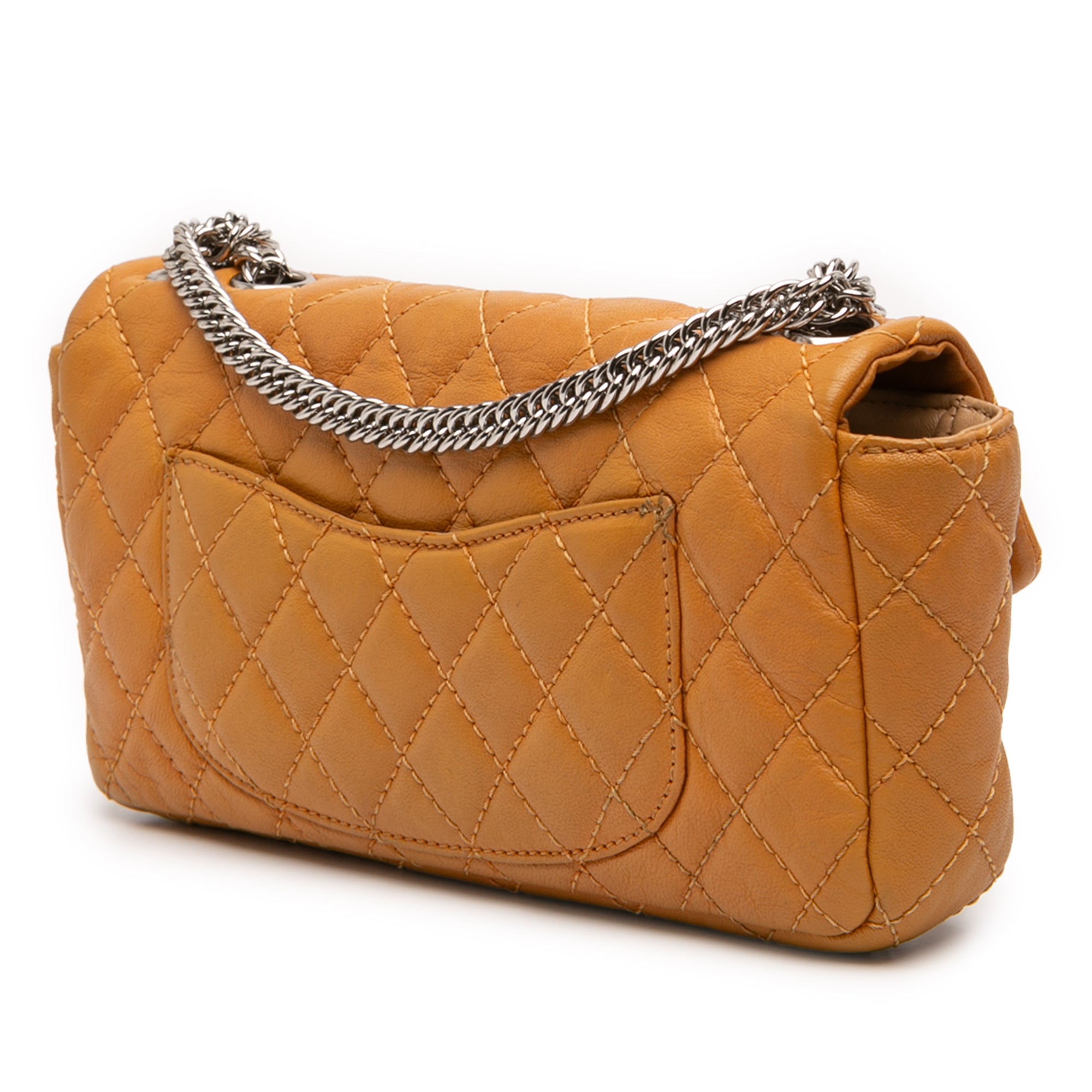 Orange Chanel CC Quilted Lambskin East West Single Flap Shoulder Bag
