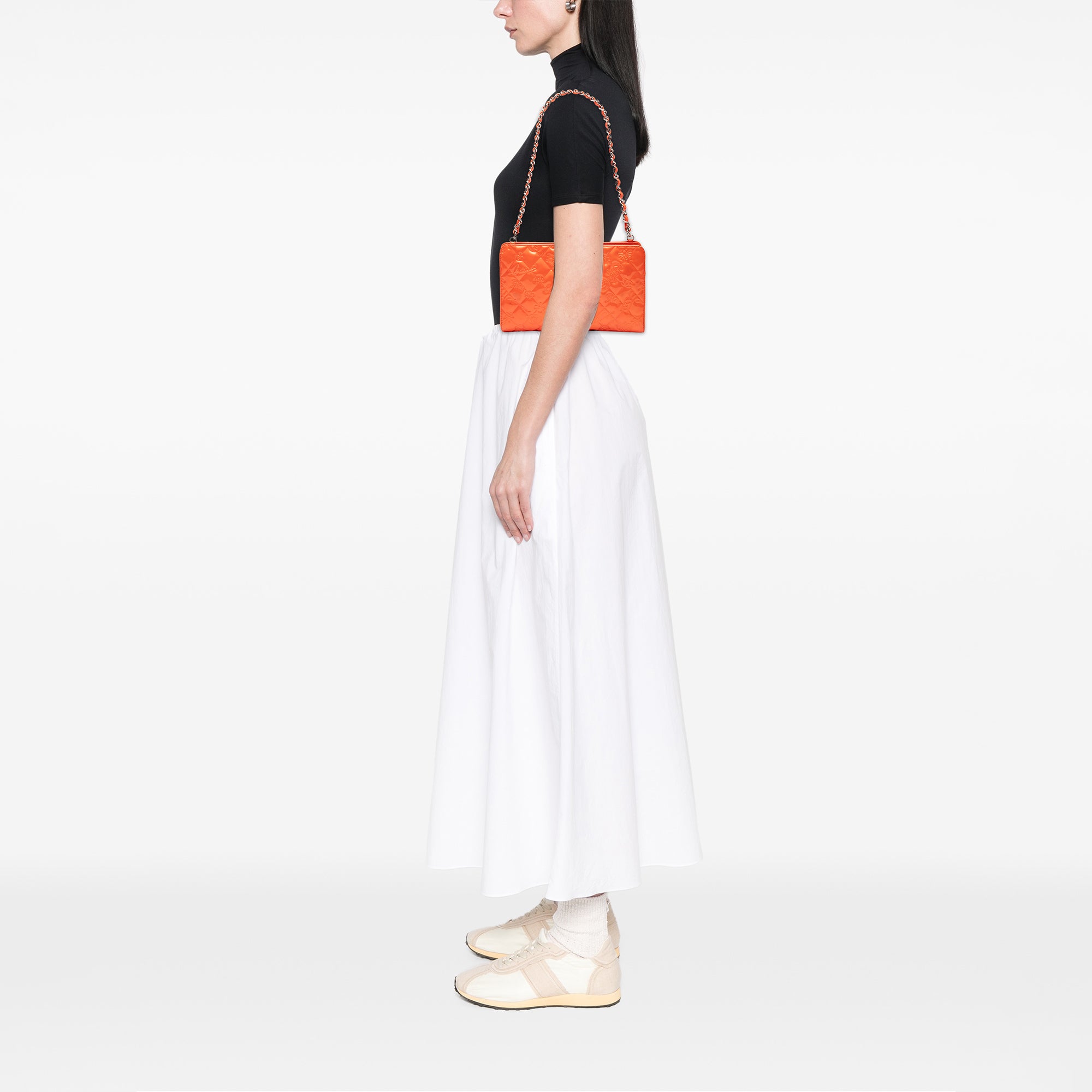 Orange Chanel Quilted Embossed Patent Lucky Symbols Pochette Shoulder Bag