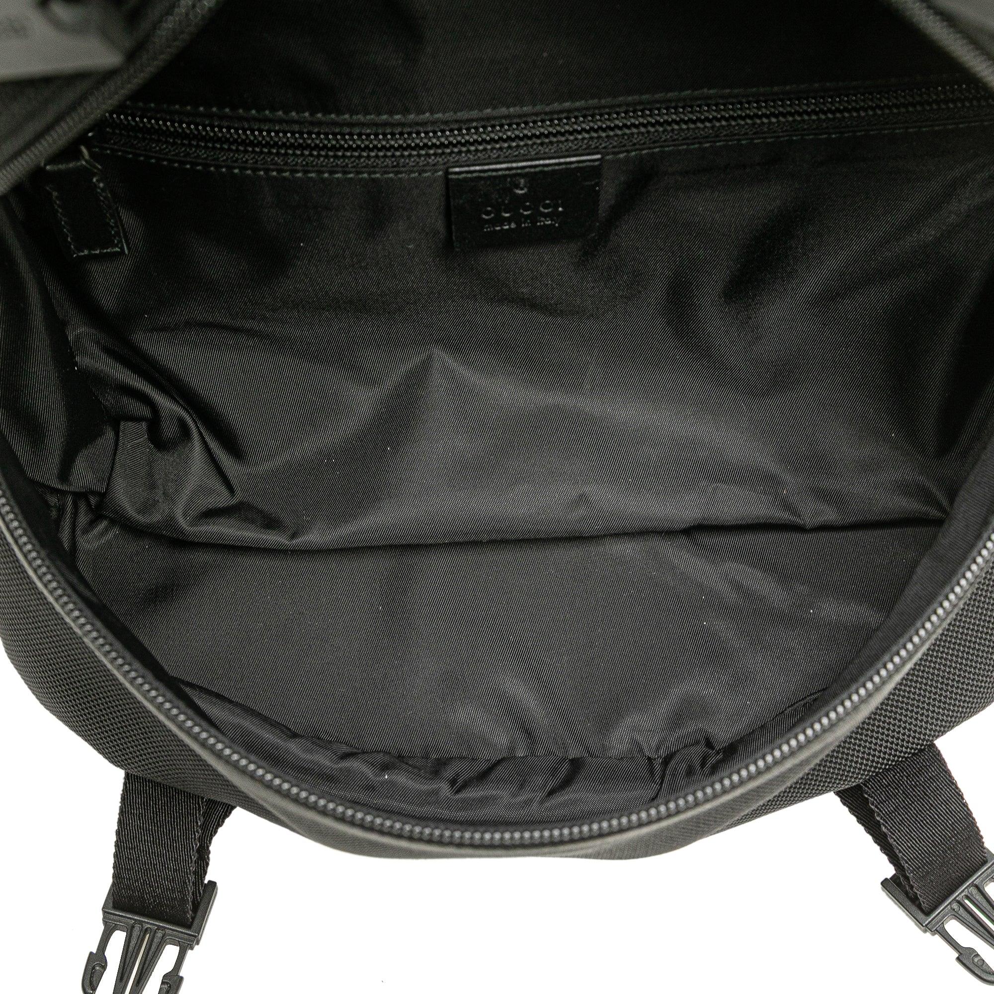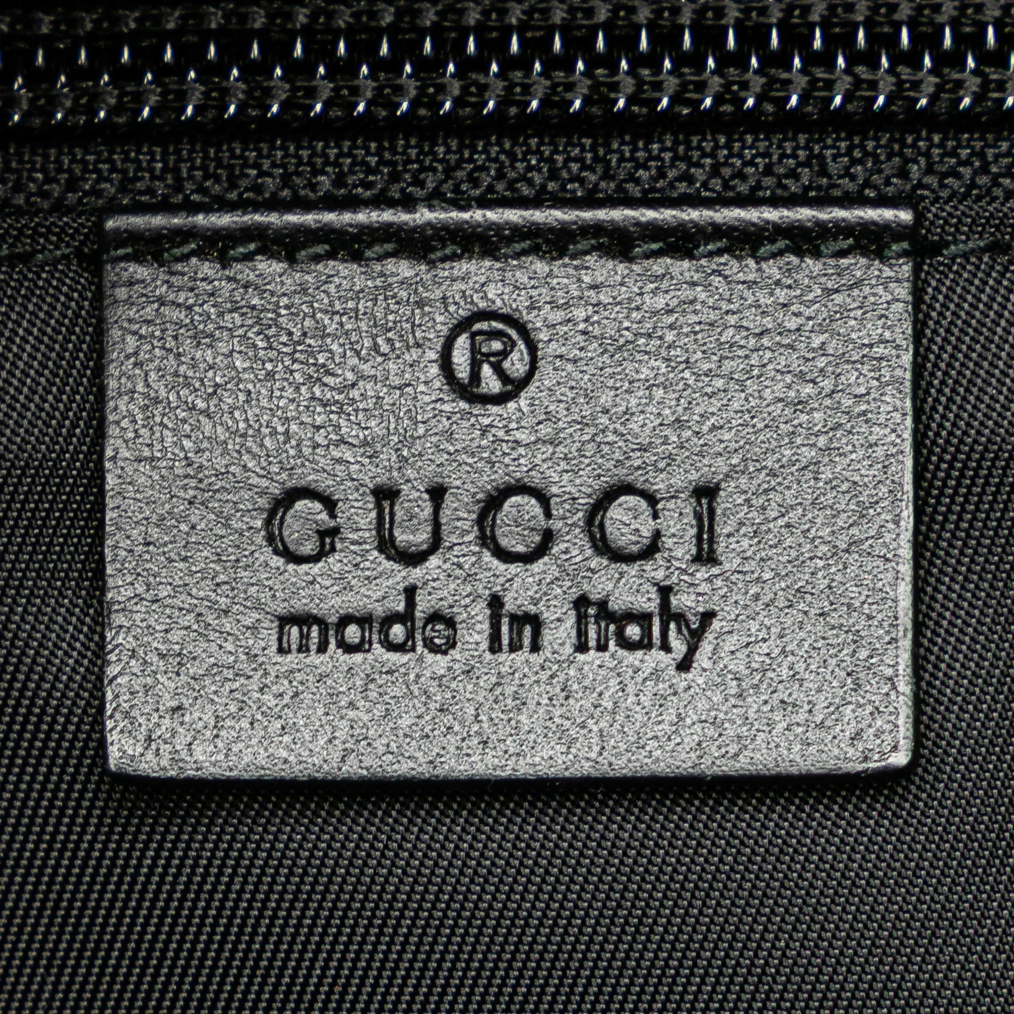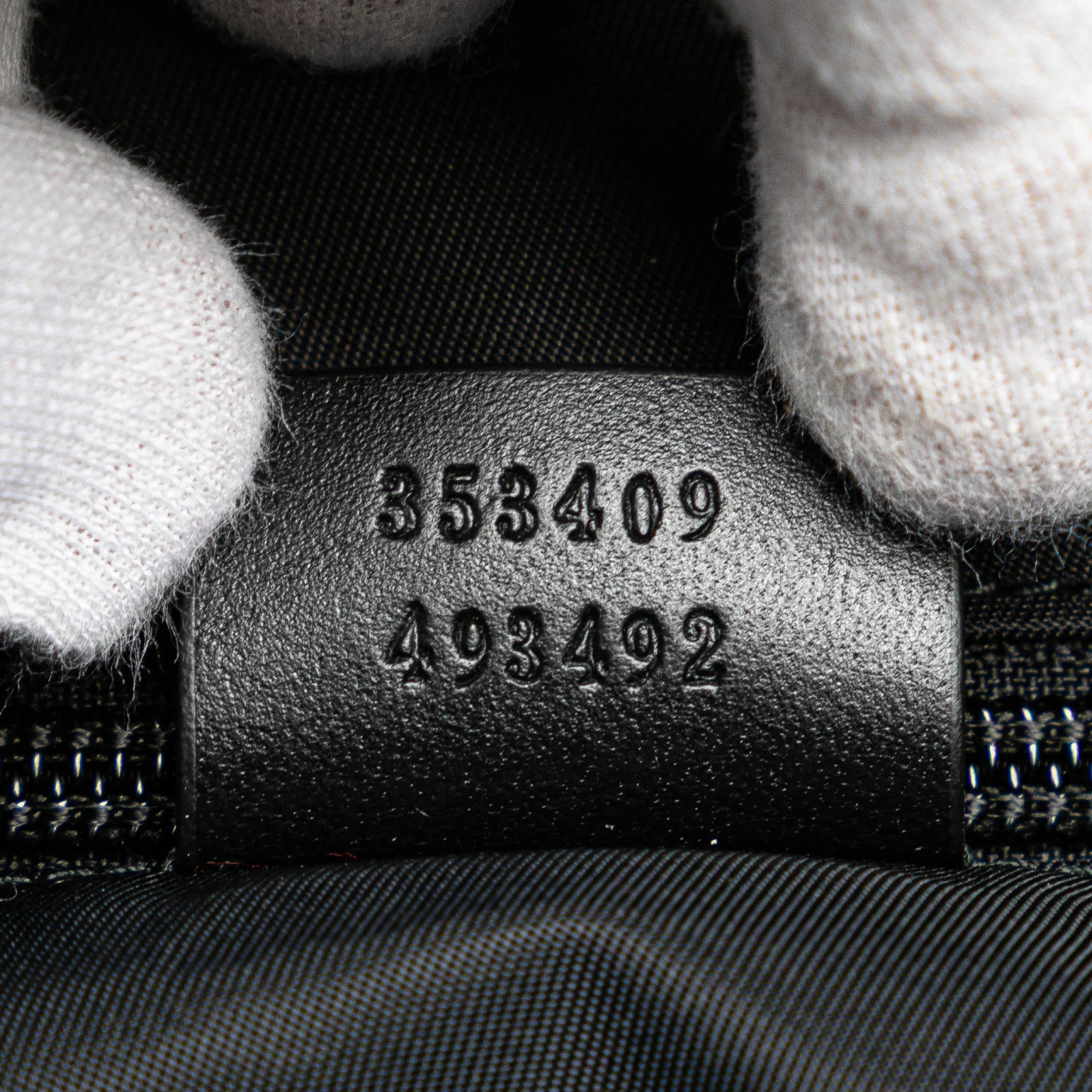 Product Details: Black Gucci Techno Canvas Web Belt Bag. This belt bag features a canvas body with leather trim, an adjustable flat web waist strap, a top flap with buckle closures, a zip closure, an exterior back zip pocket, and an interior zip pocket. 8.7" L x 9.8" W x 5.1" D. Serial number 353409 493492.