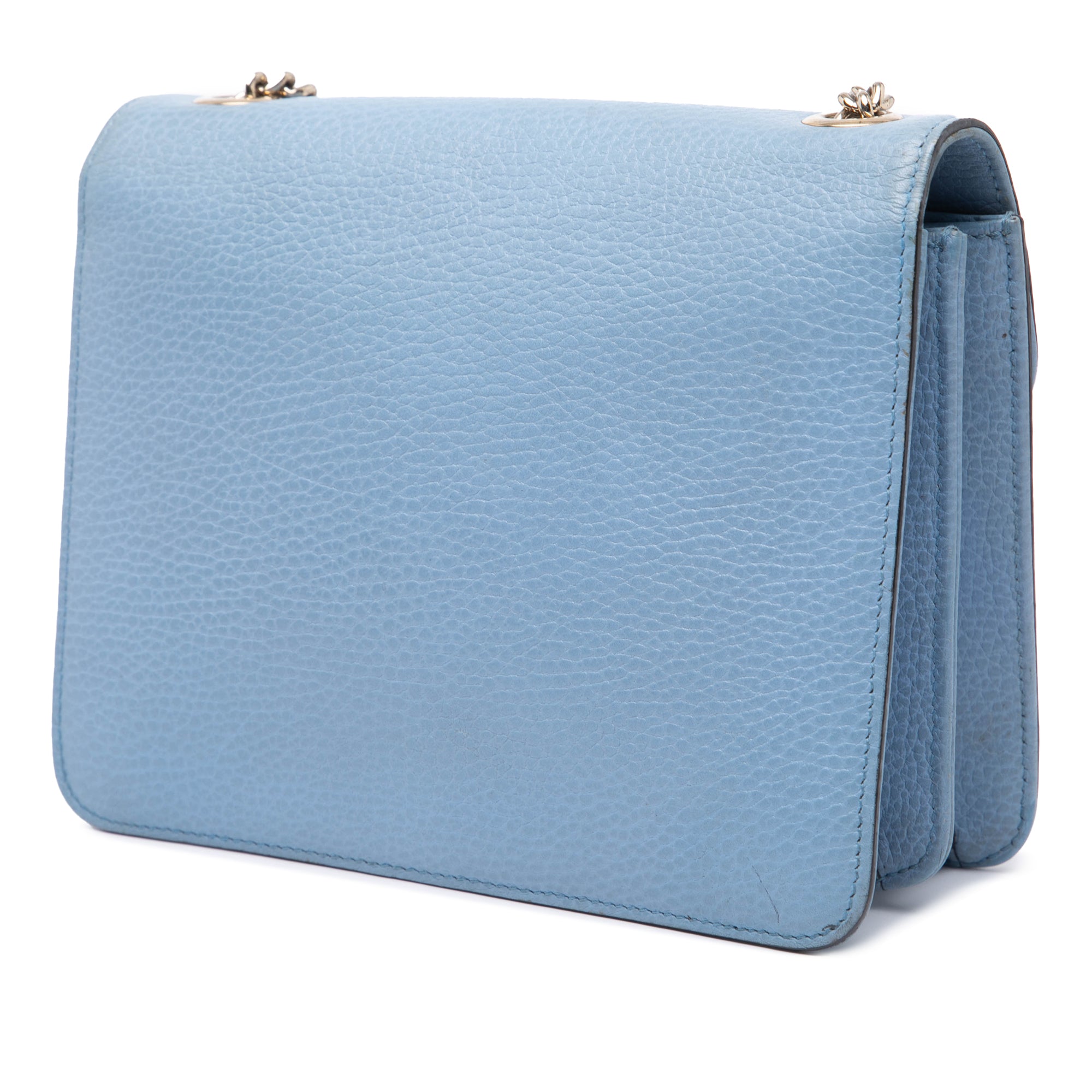 Please note this is a pre-owned item that may display signs of wear consistent with the condition listed above and shown in photos. Designer Revival guarantees this is an authentic Blue Gucci Small Dollar Calfskin Interlocking G Crossbody or 100% of your money back. Learn more about our authentication process.
